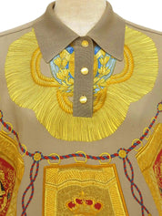 スカーフパターンセリエボタンポロシャツ ベージュ/マルチ
