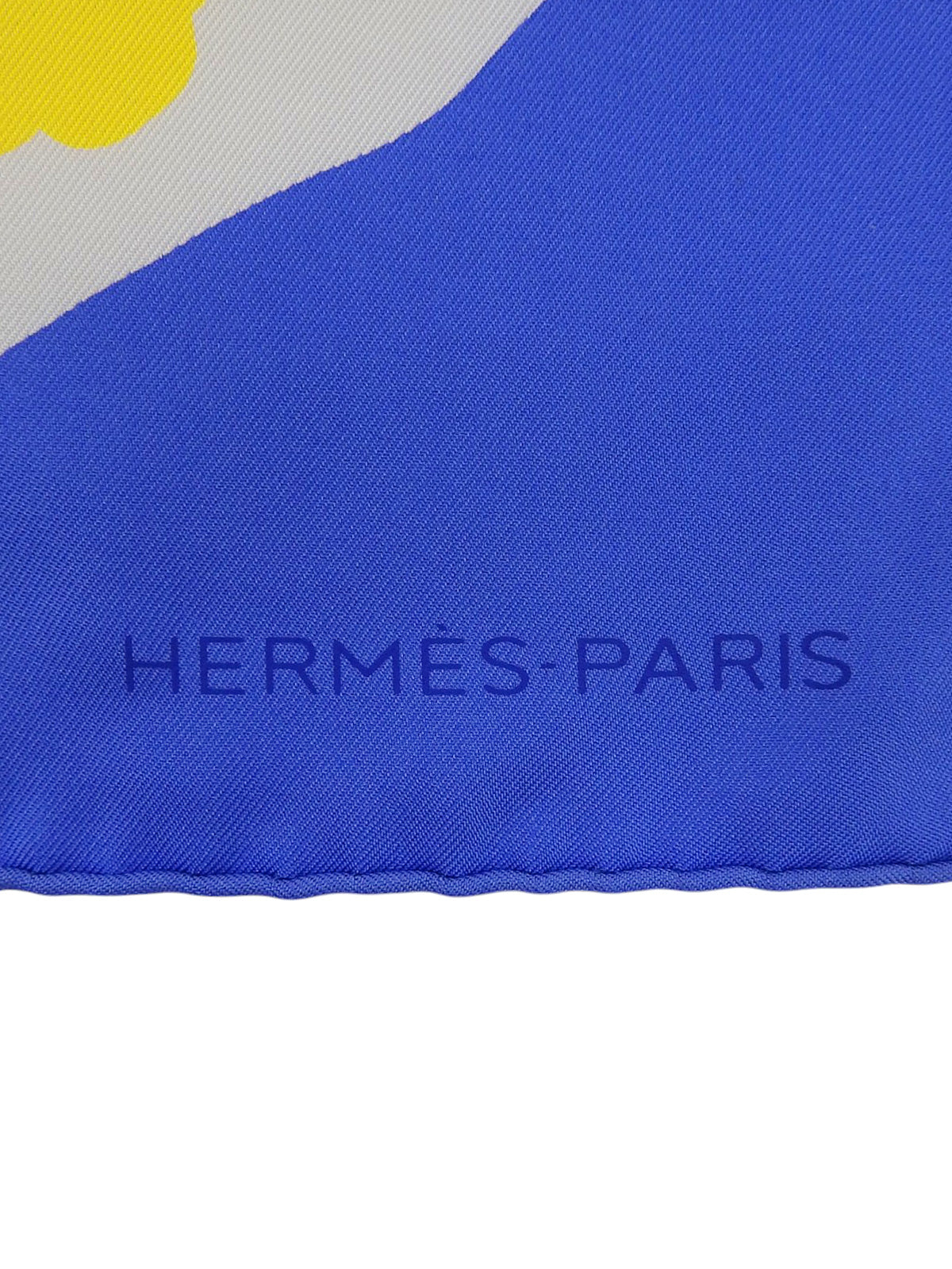 カレ90 Claude Viallatパターンスカーフ ブルー/イエロー