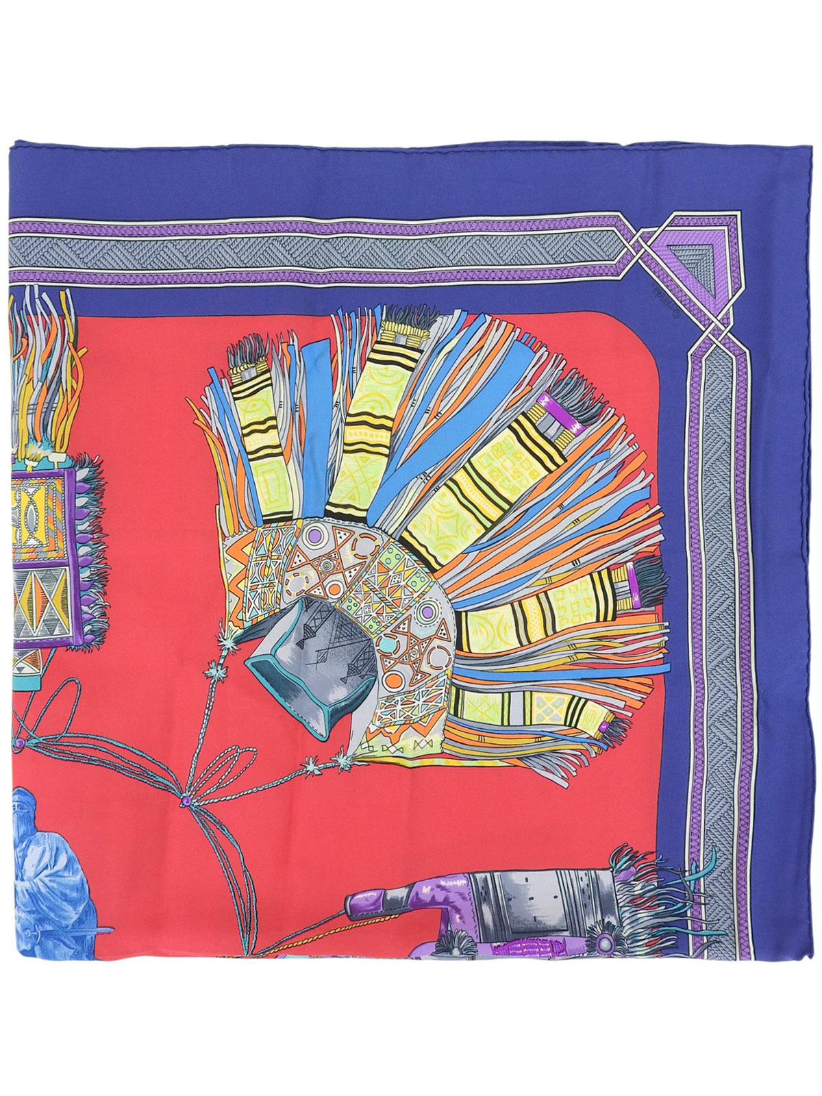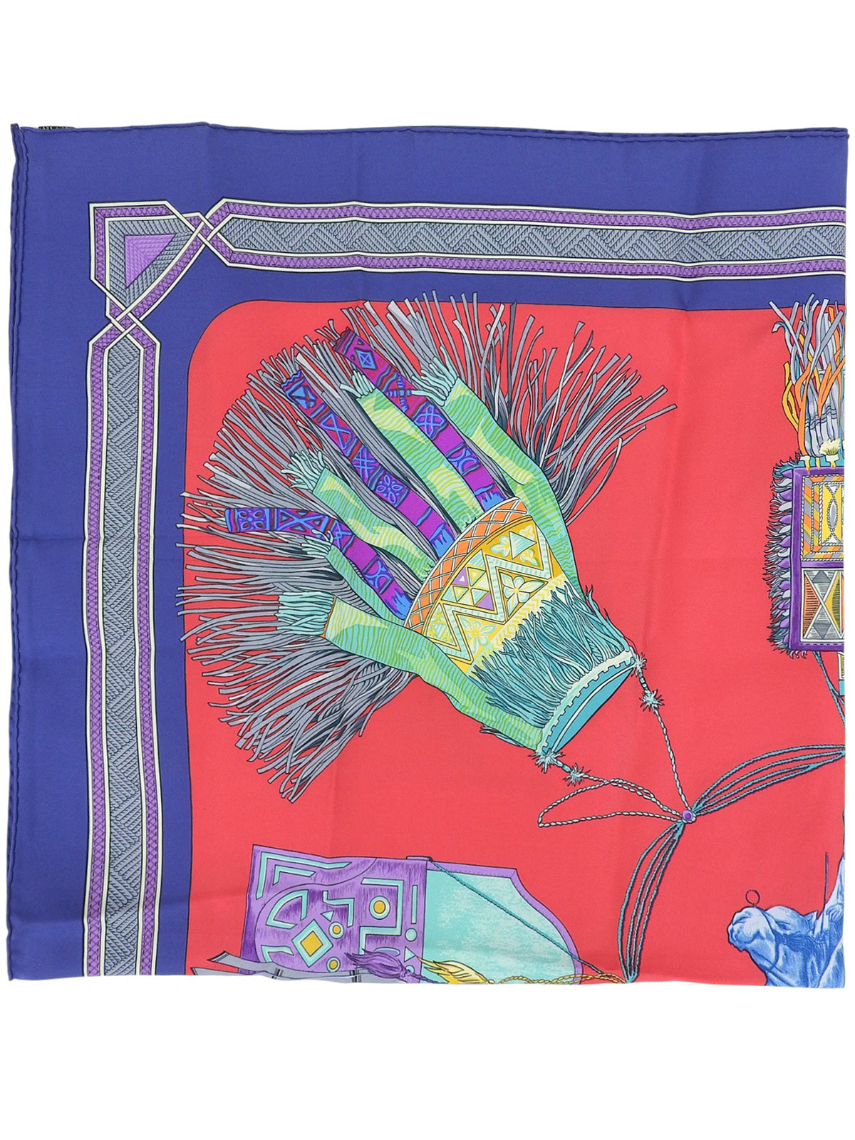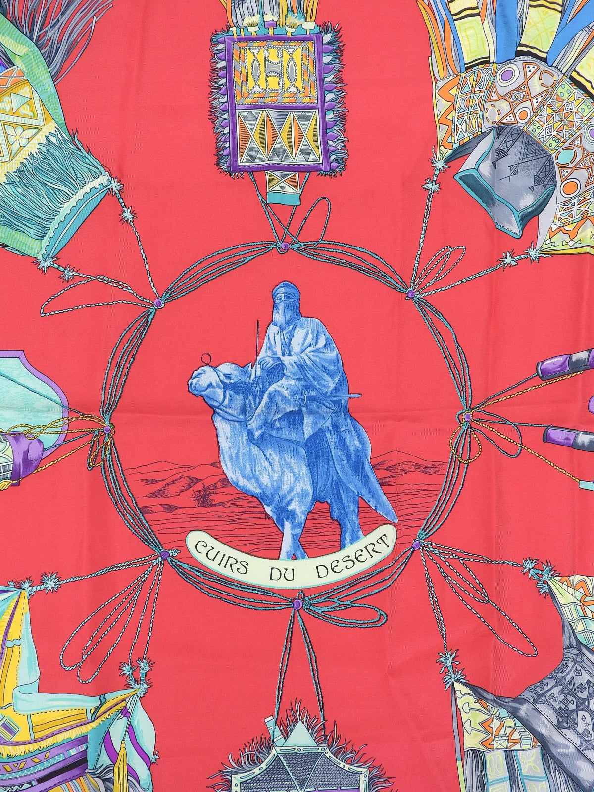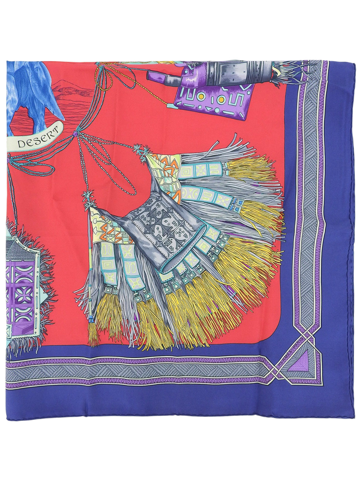 カレ90 cuirs du desertパターンスカーフ レッド/マルチ