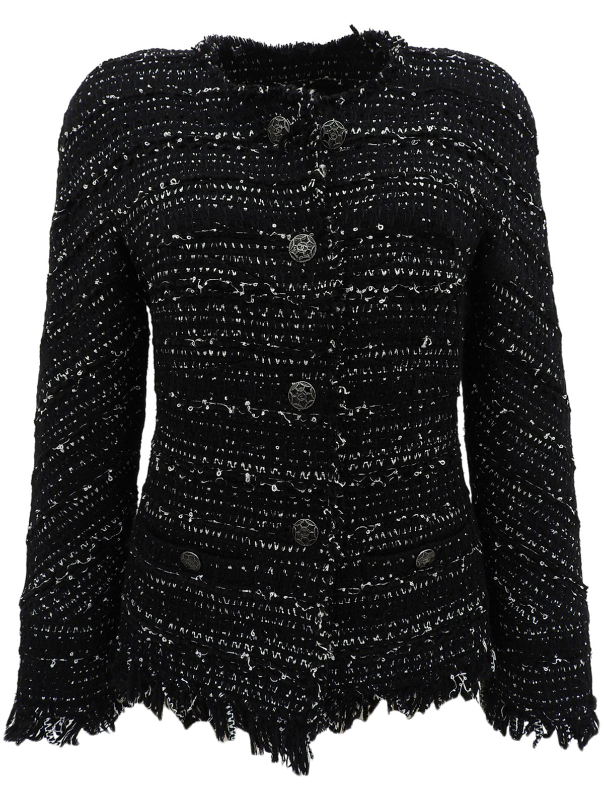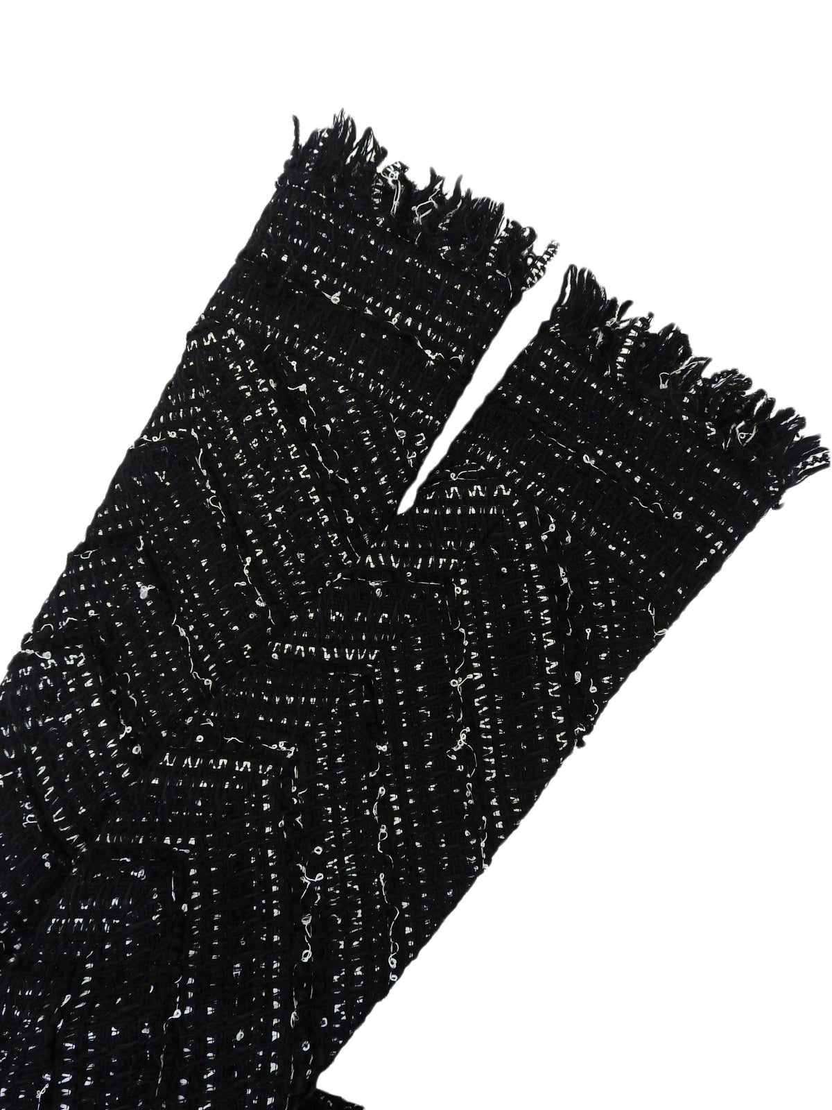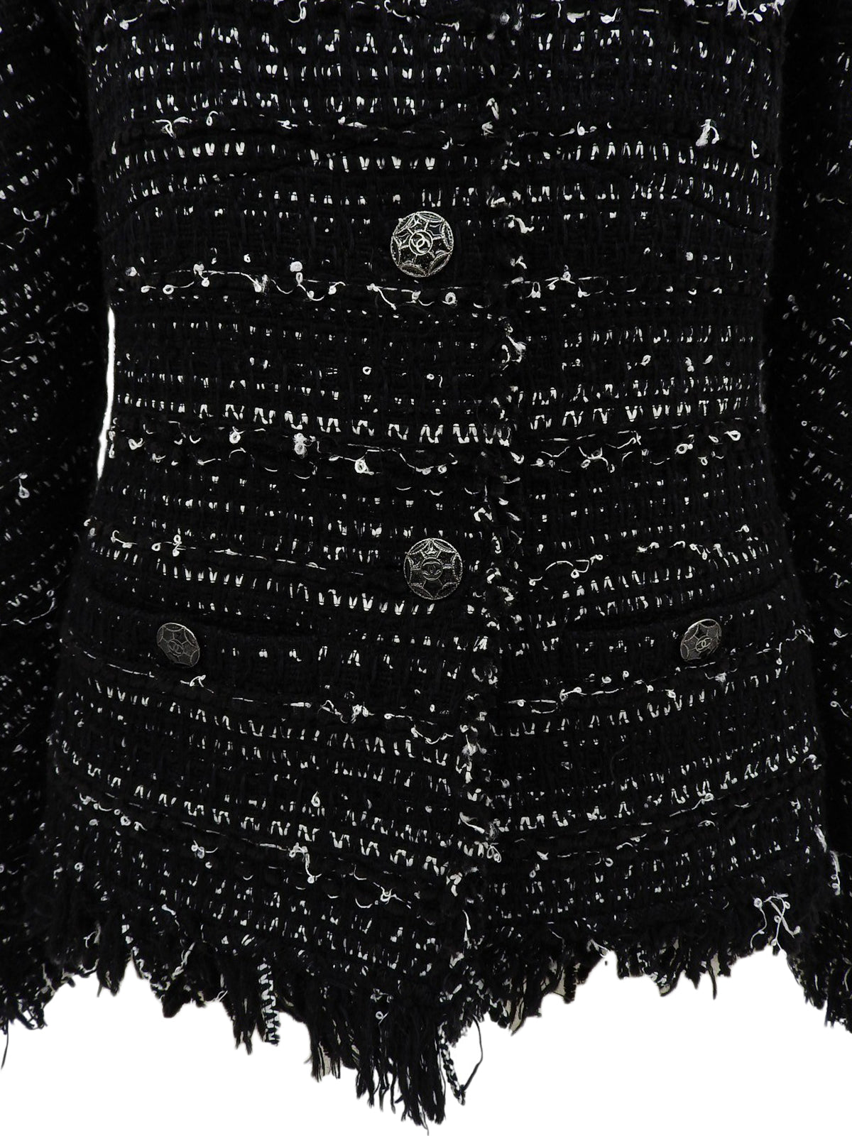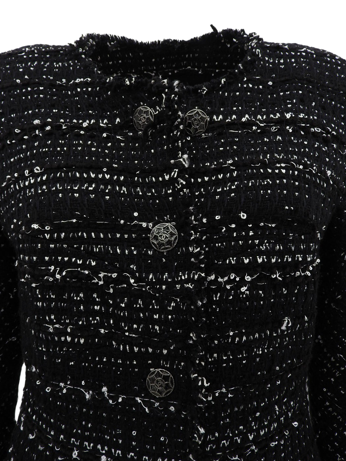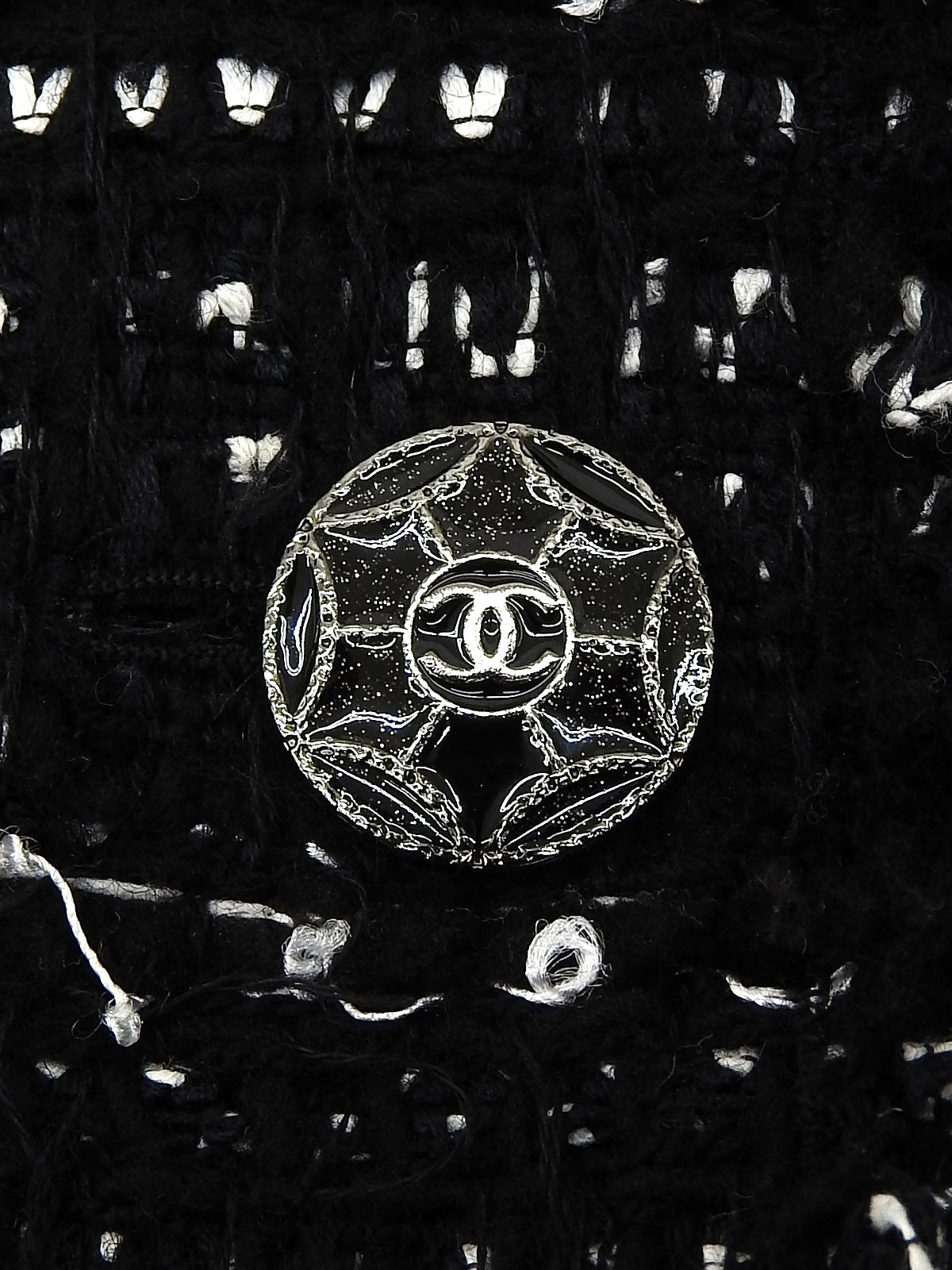 ツイードCCマークボタンノーカラージャケット ブラック/ホワイト
