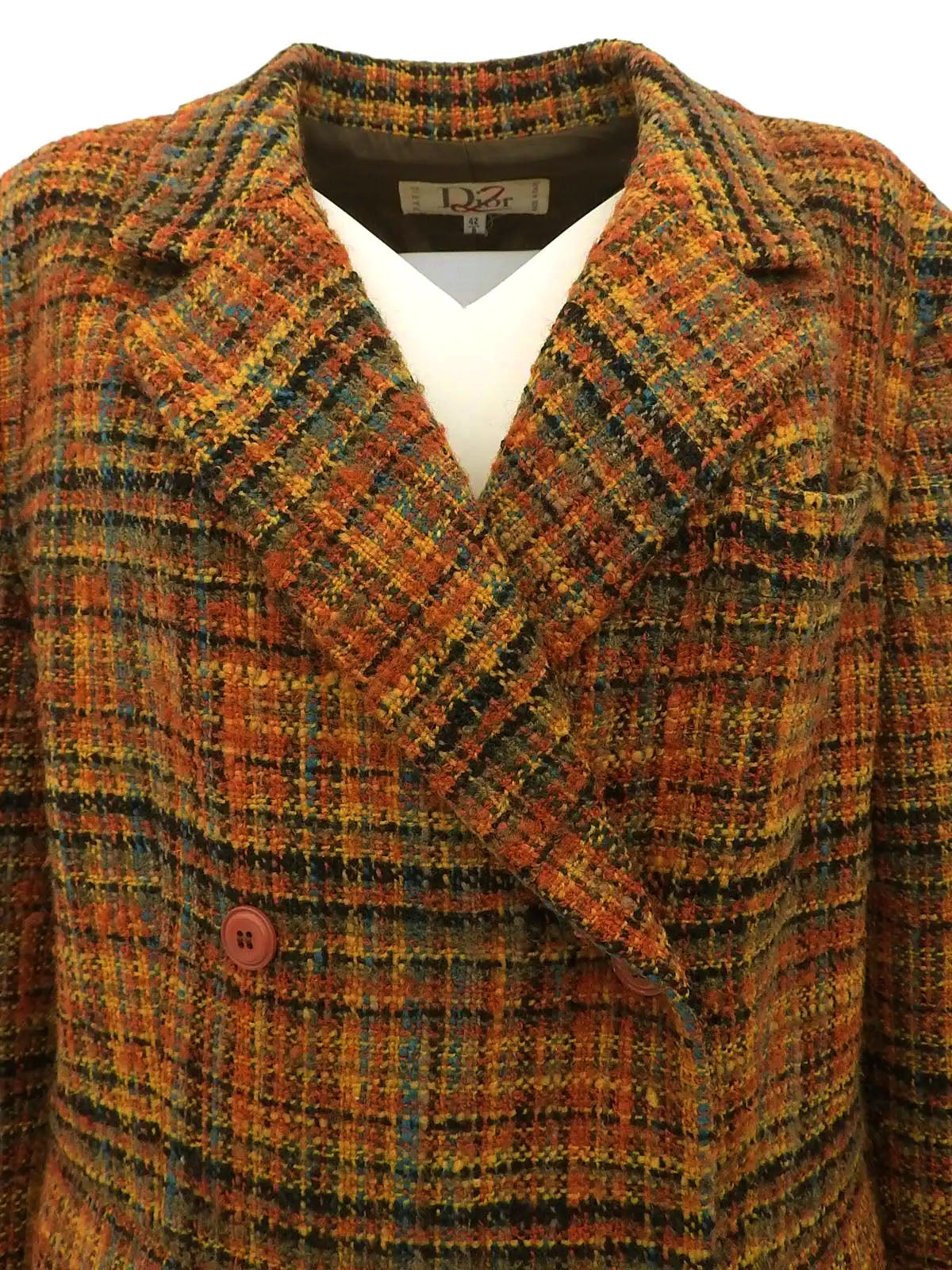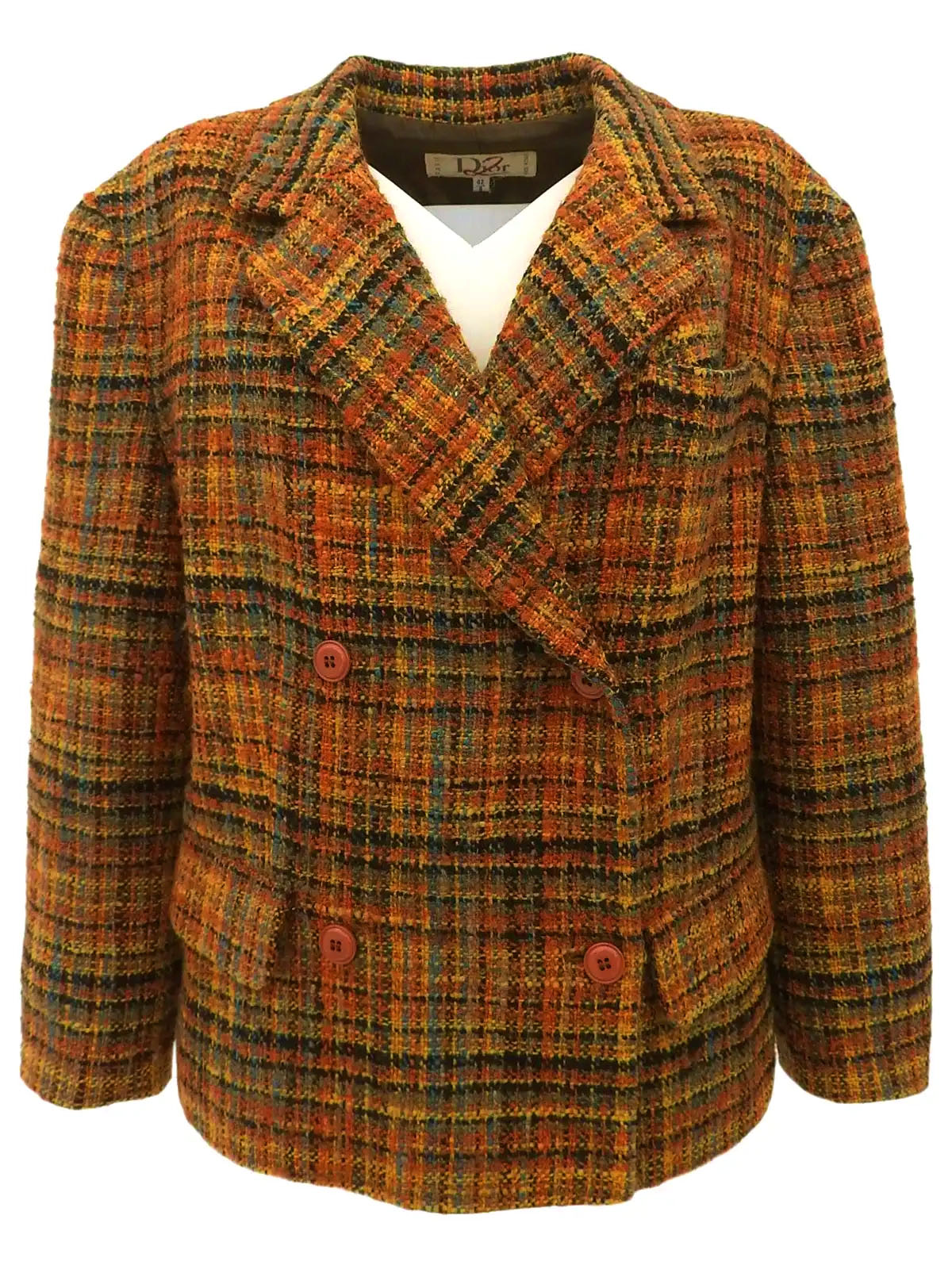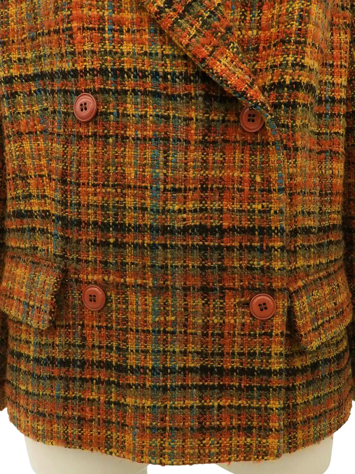 ツイードチェックパターンダブルブレストジャケット ブラウン/マルチ
