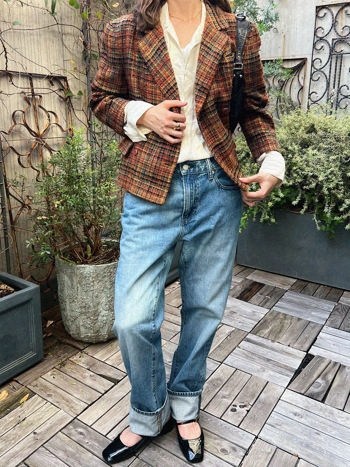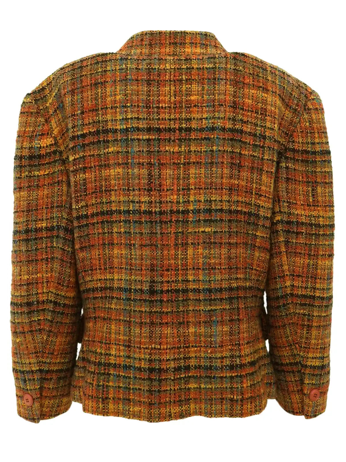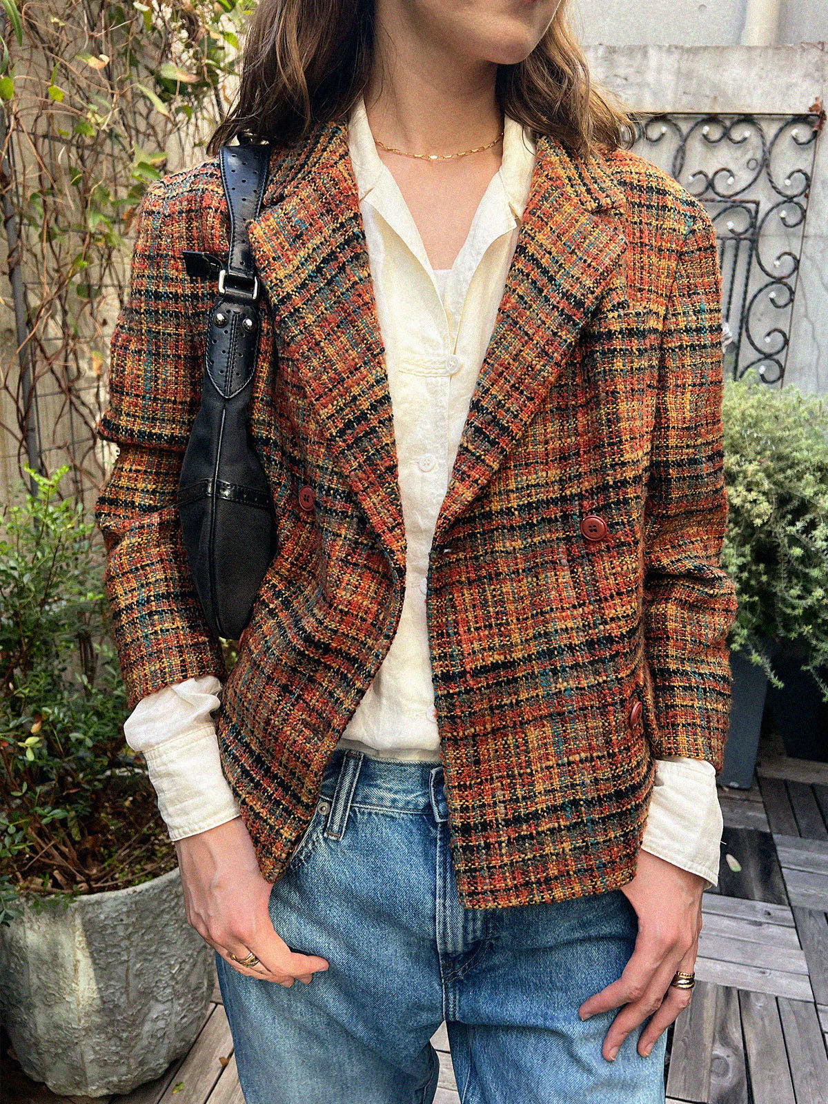 ツイードチェックパターンダブルブレストジャケット ブラウン/マルチ