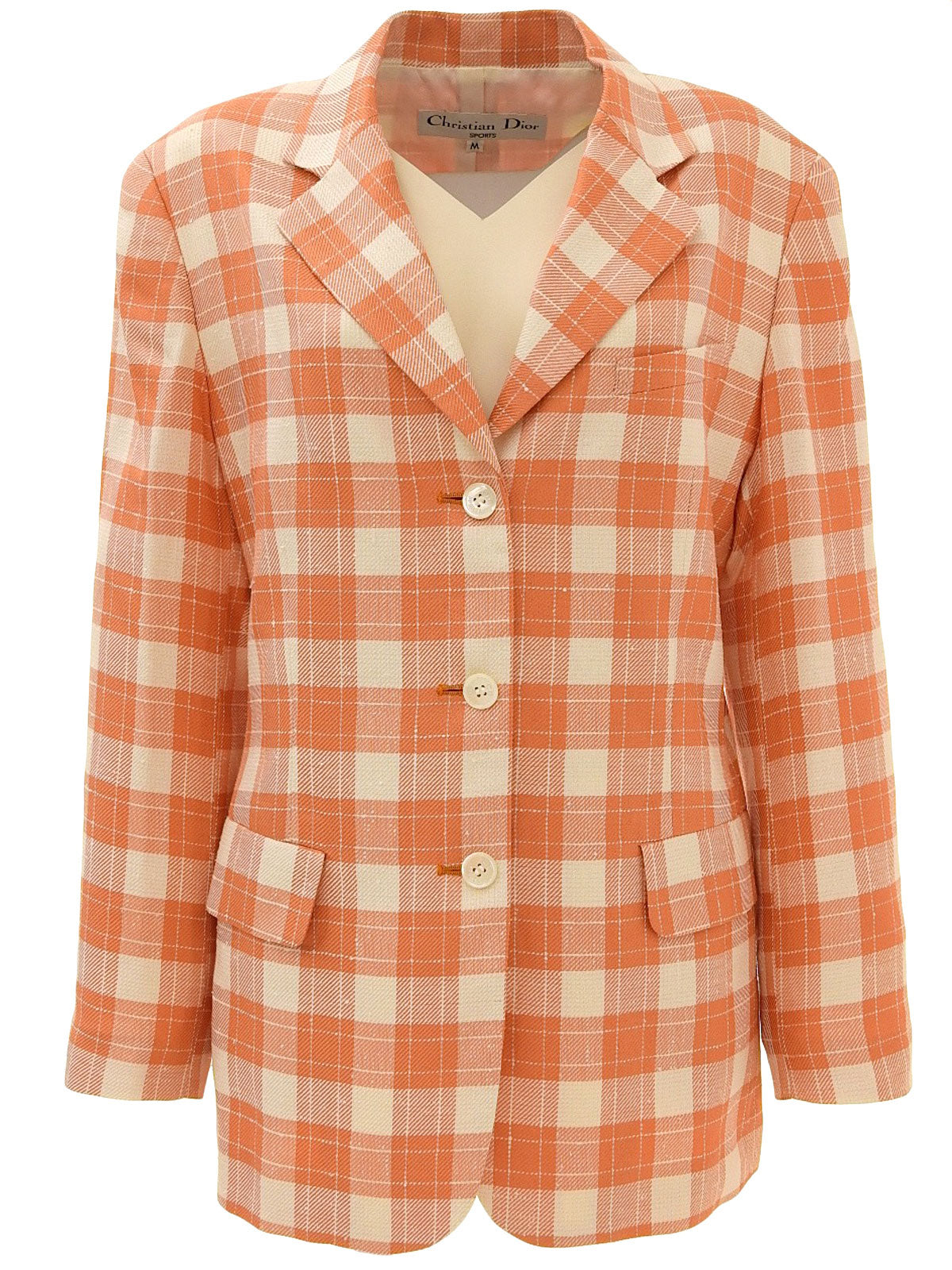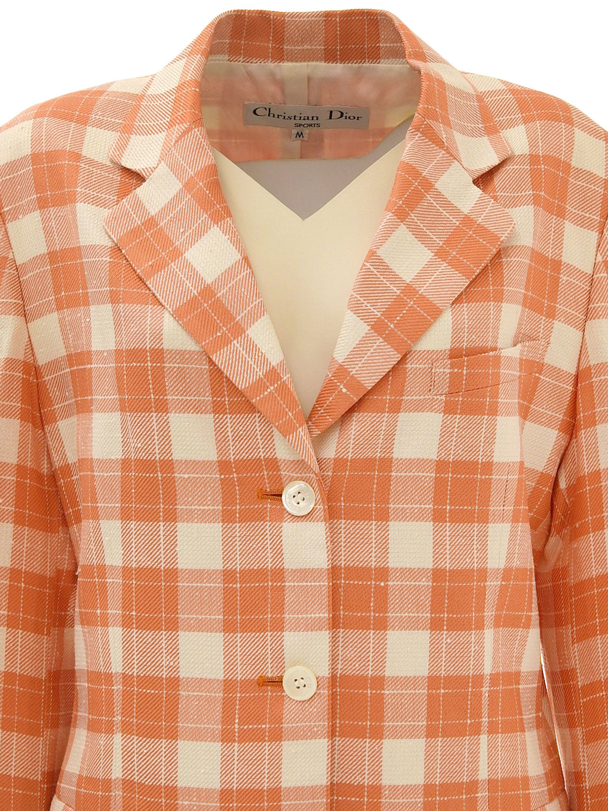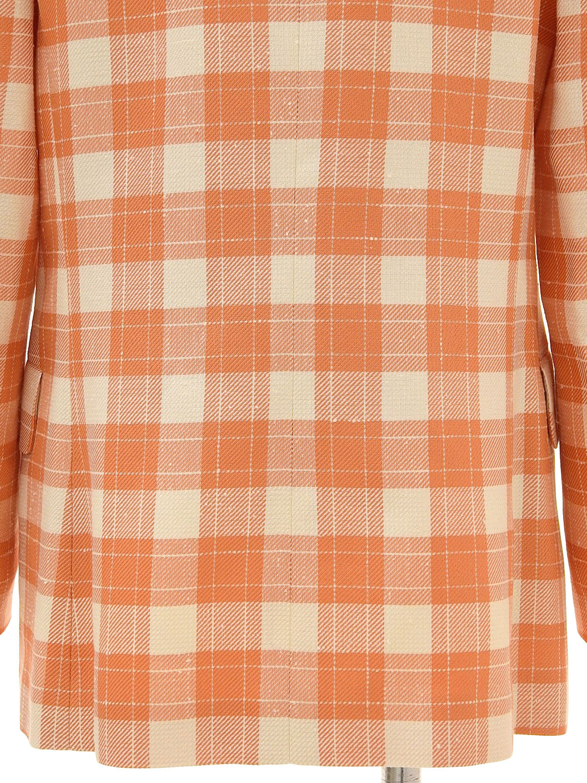 シルクチェックパターンテーラードジャケット オレンジ/アイボリー