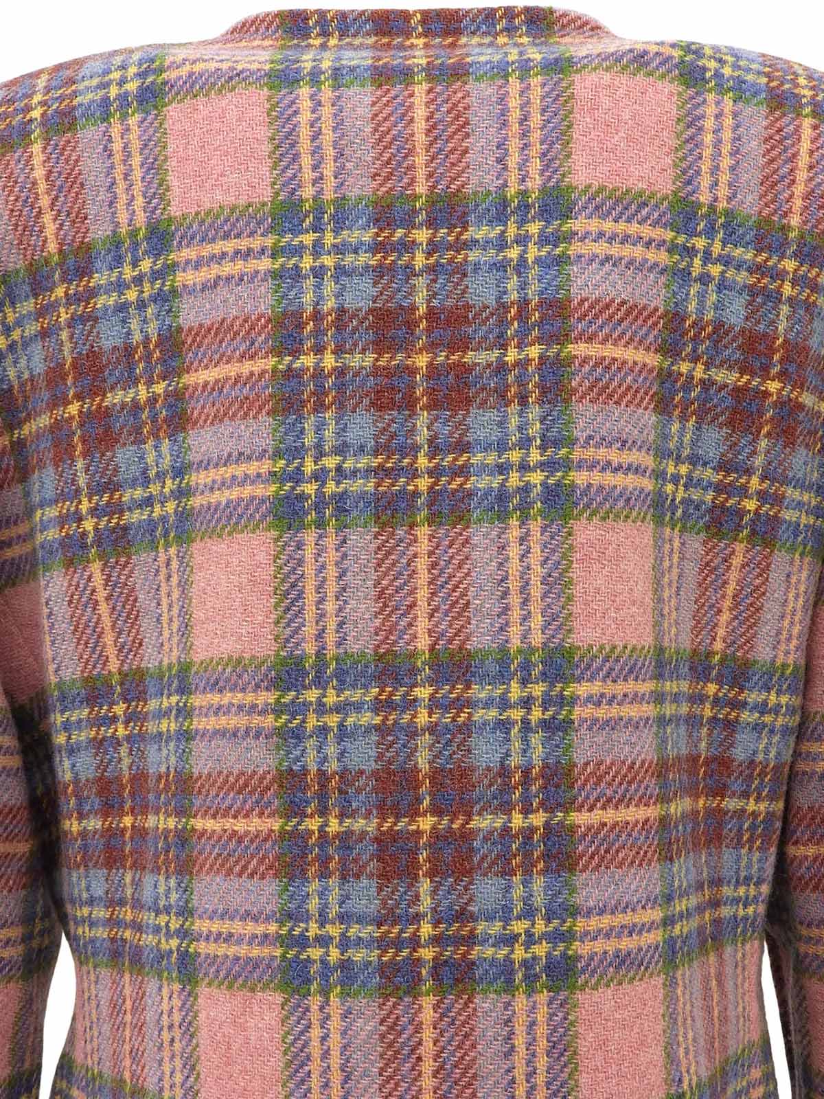 チェックパターンロゴボタンノーカラージャケット ピンク/マルチ