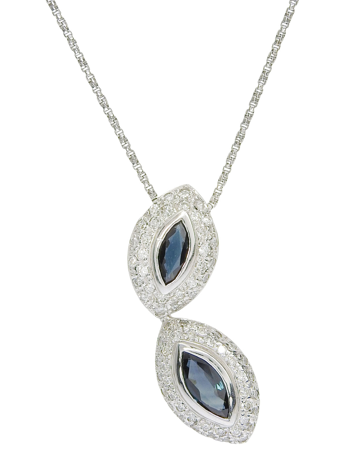 18Kダイヤモンドサファイアデザインネックレス シルバー/ブルー