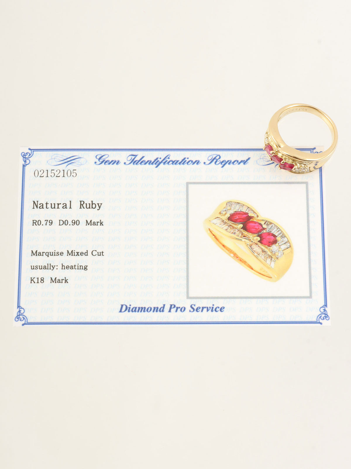 18Kルビーダイヤモンドリング ゴールド/レッド