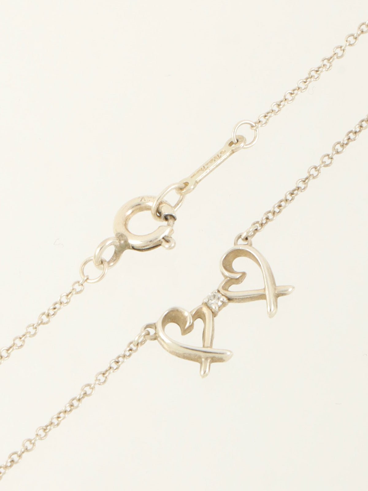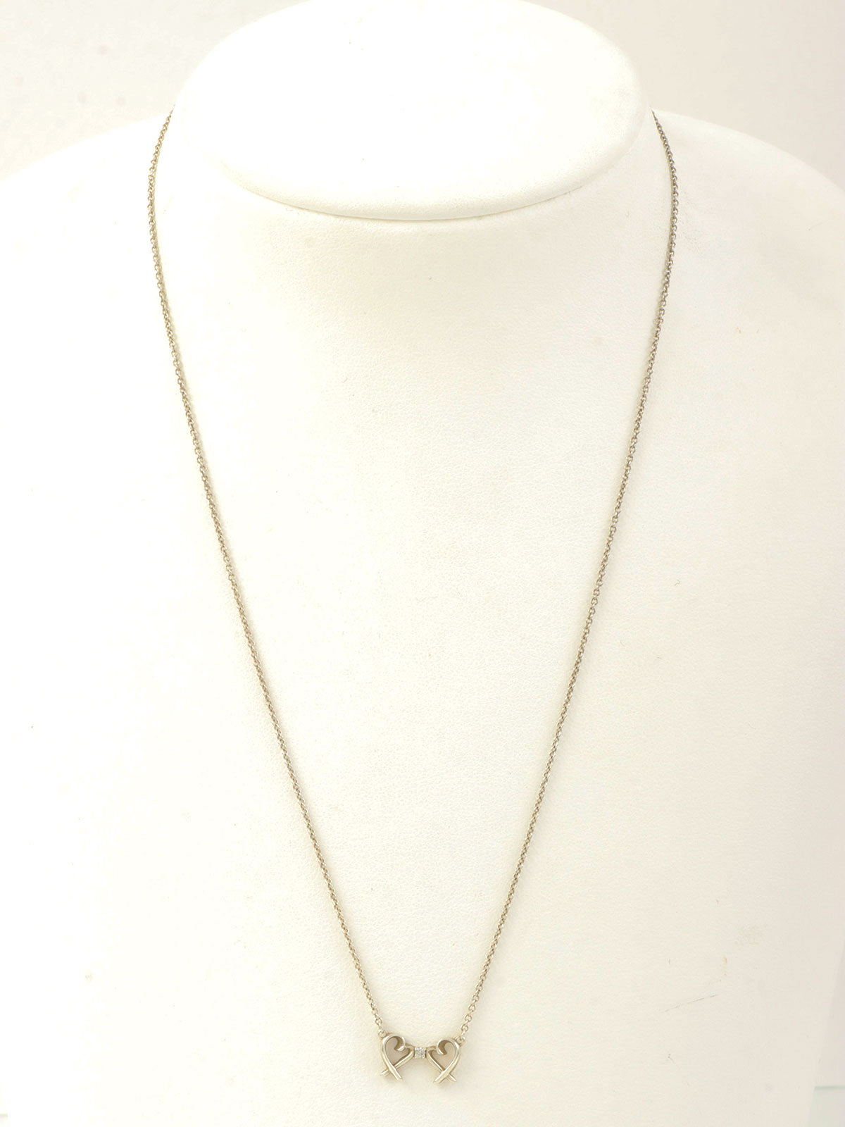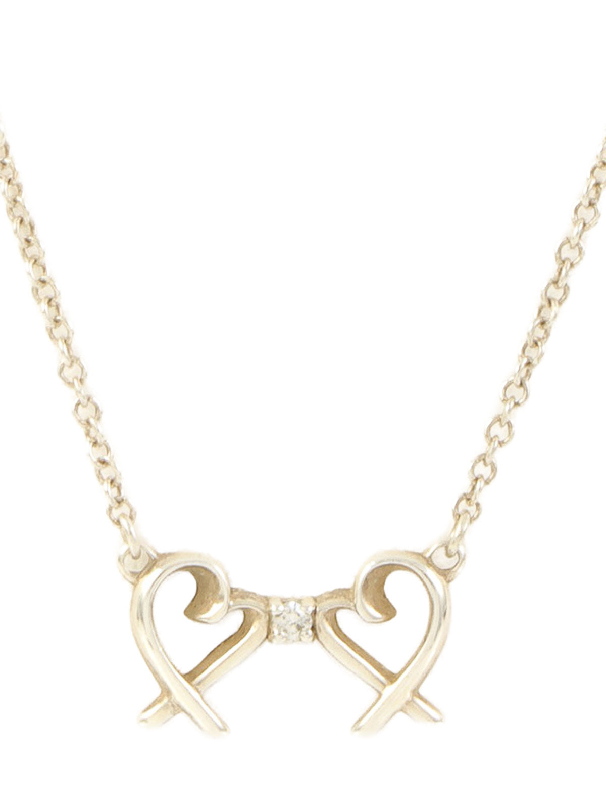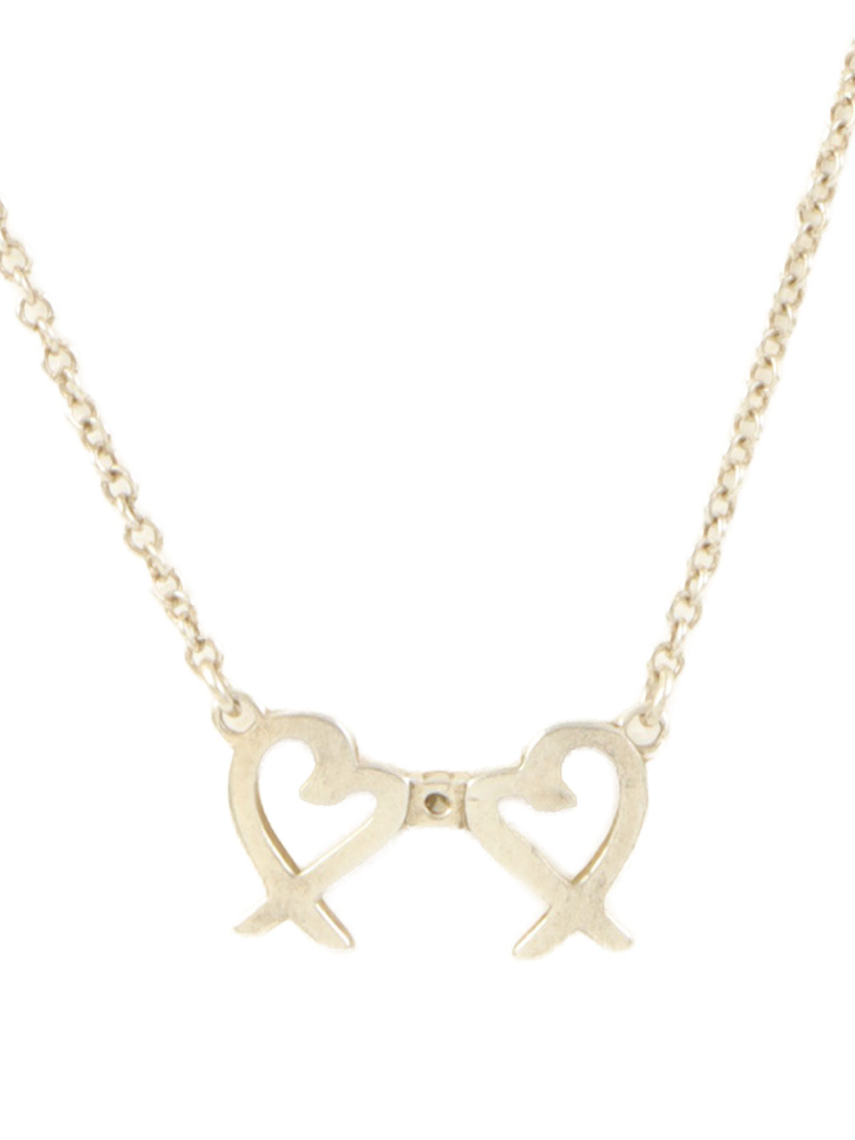 925ラインストーンダブルラビングハートネックレス シルバー