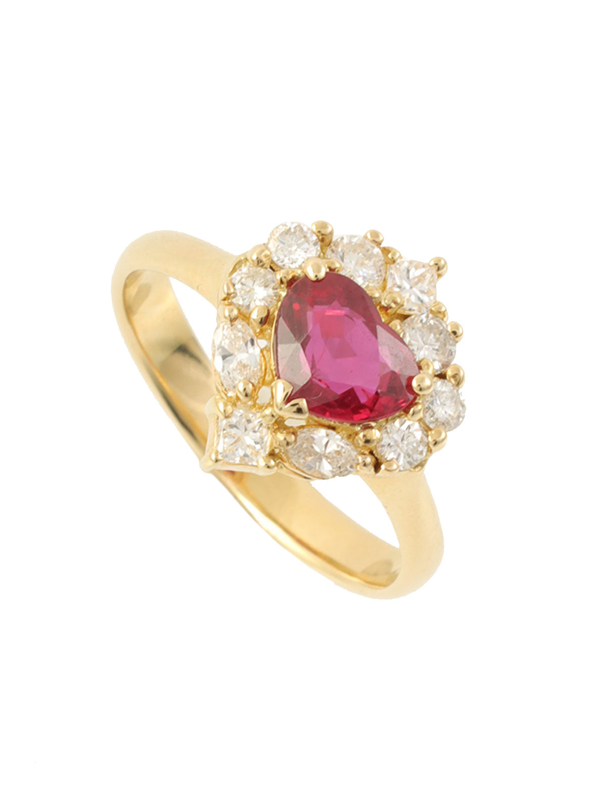 18Kルビーダイヤモンドハートリング ゴールド/レッド
