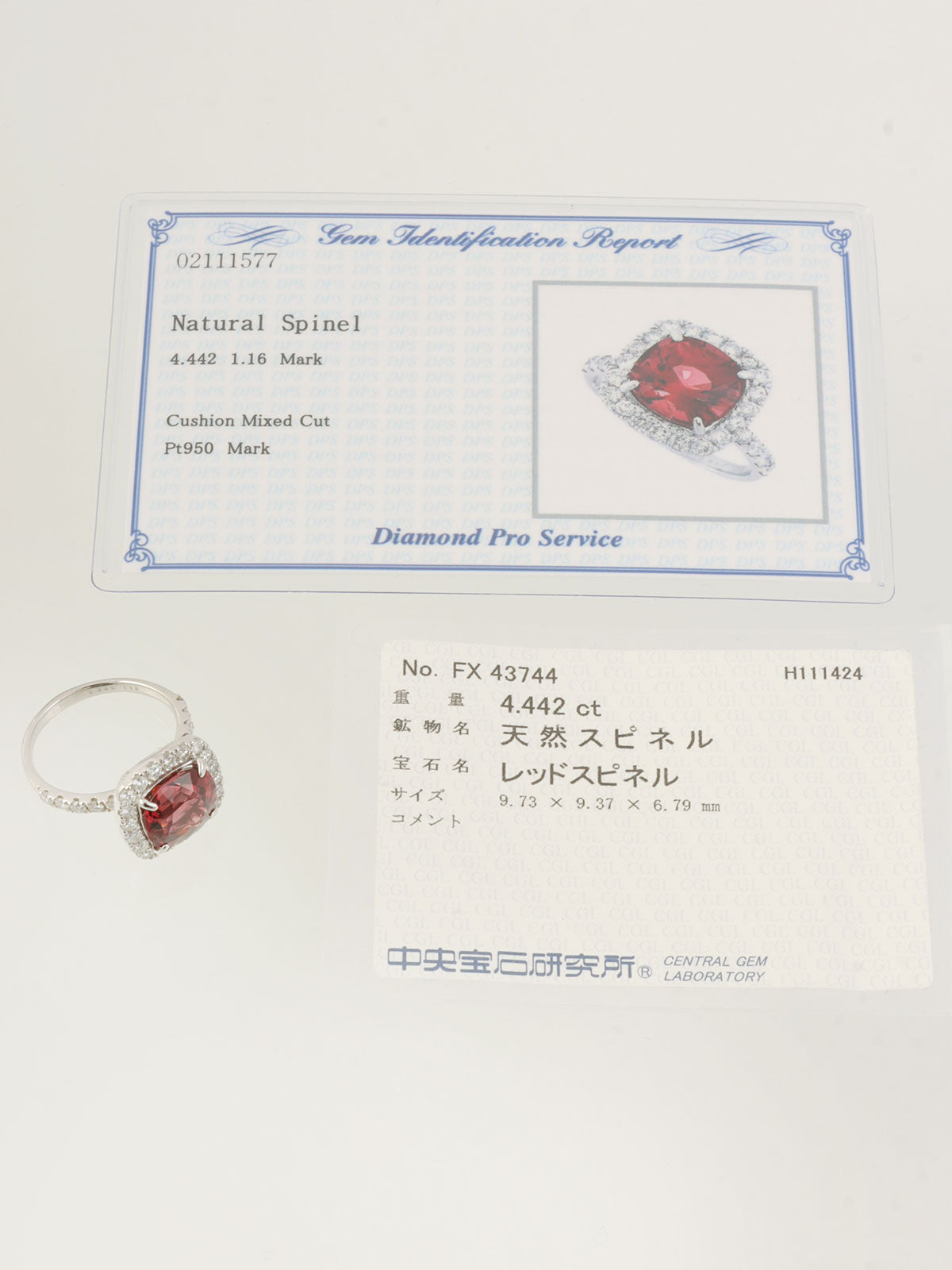 プラチナスピネルダイヤモンドリング レッド/シルバー
