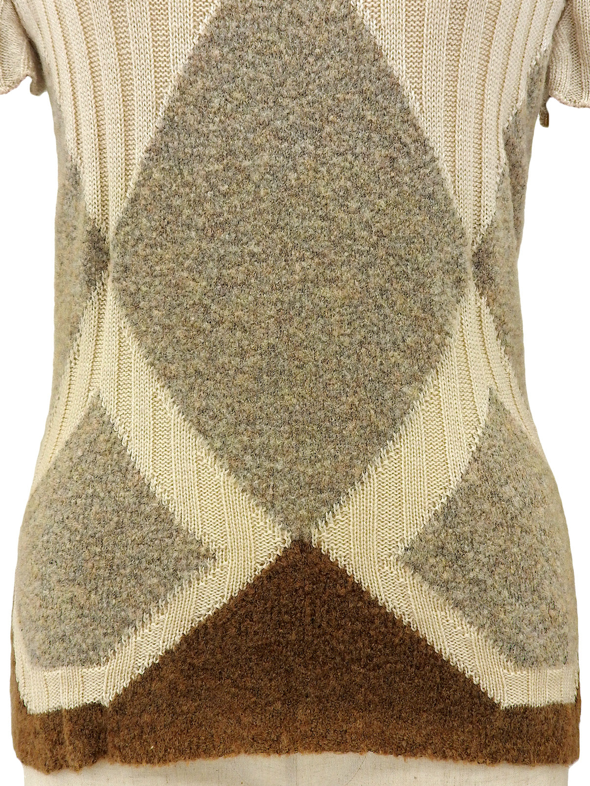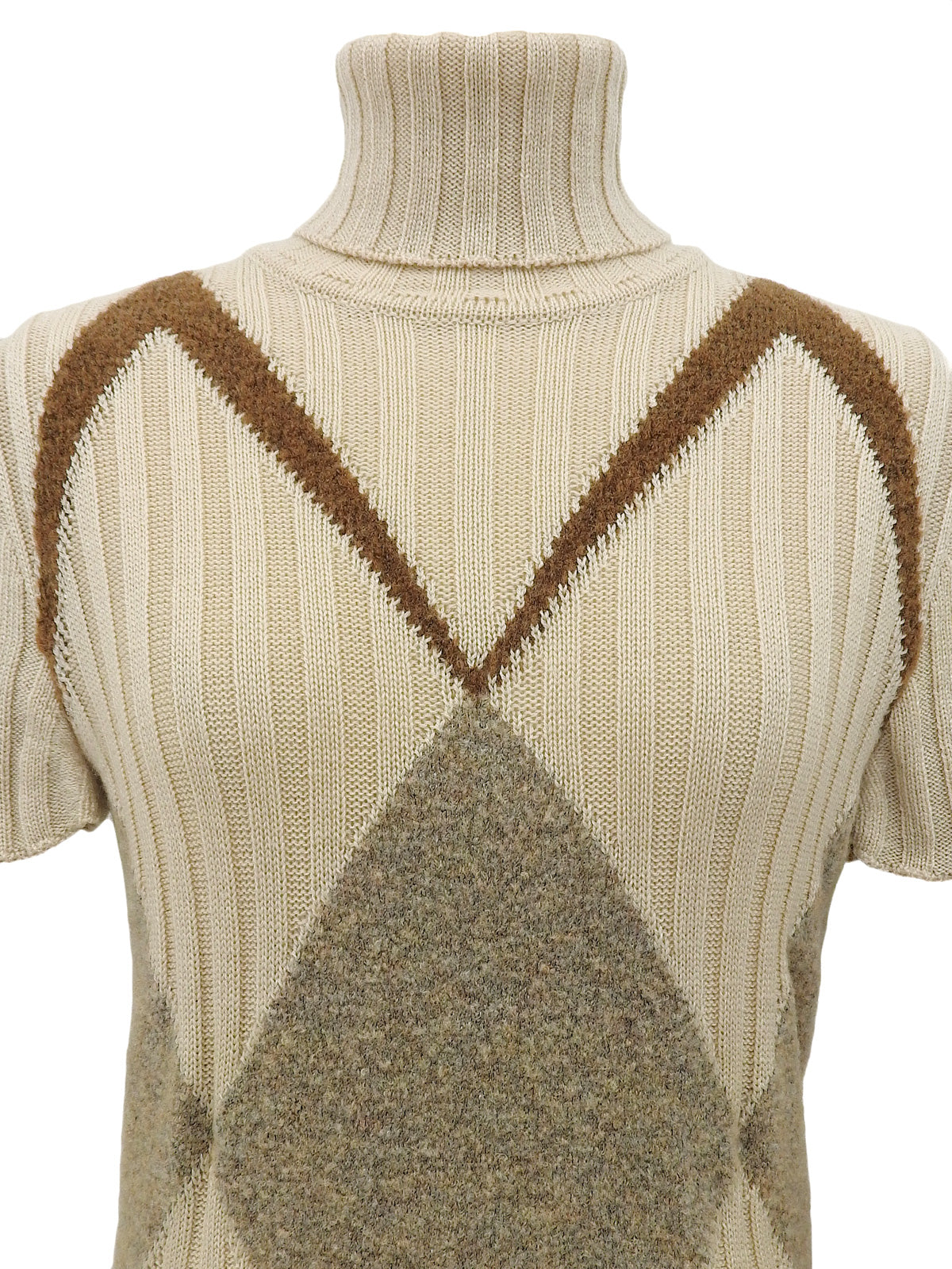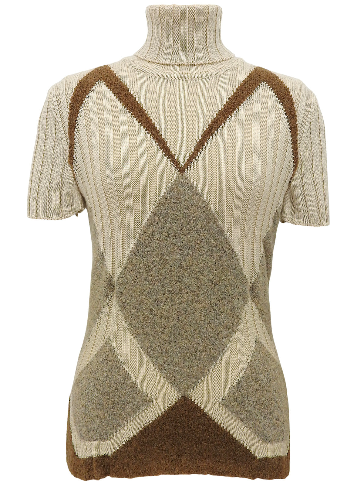 ウールダイヤパターン半袖タートルネックニットトップス ベージュ/ブラウン