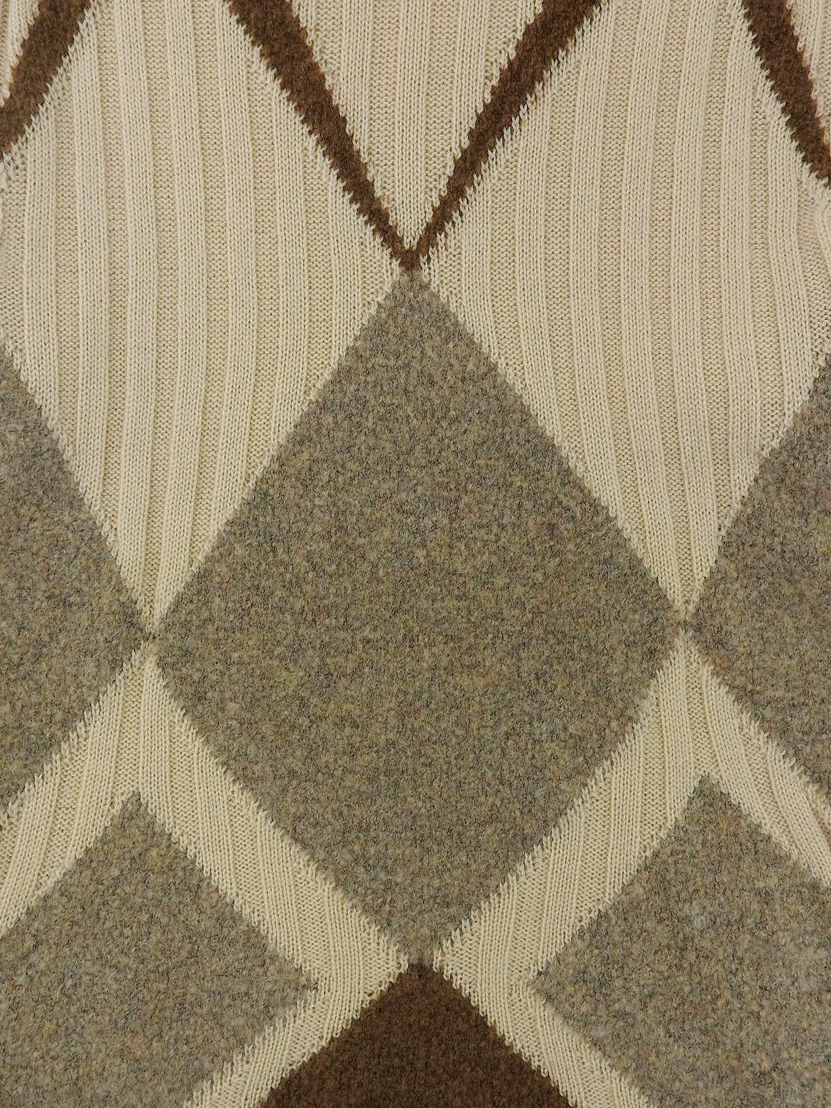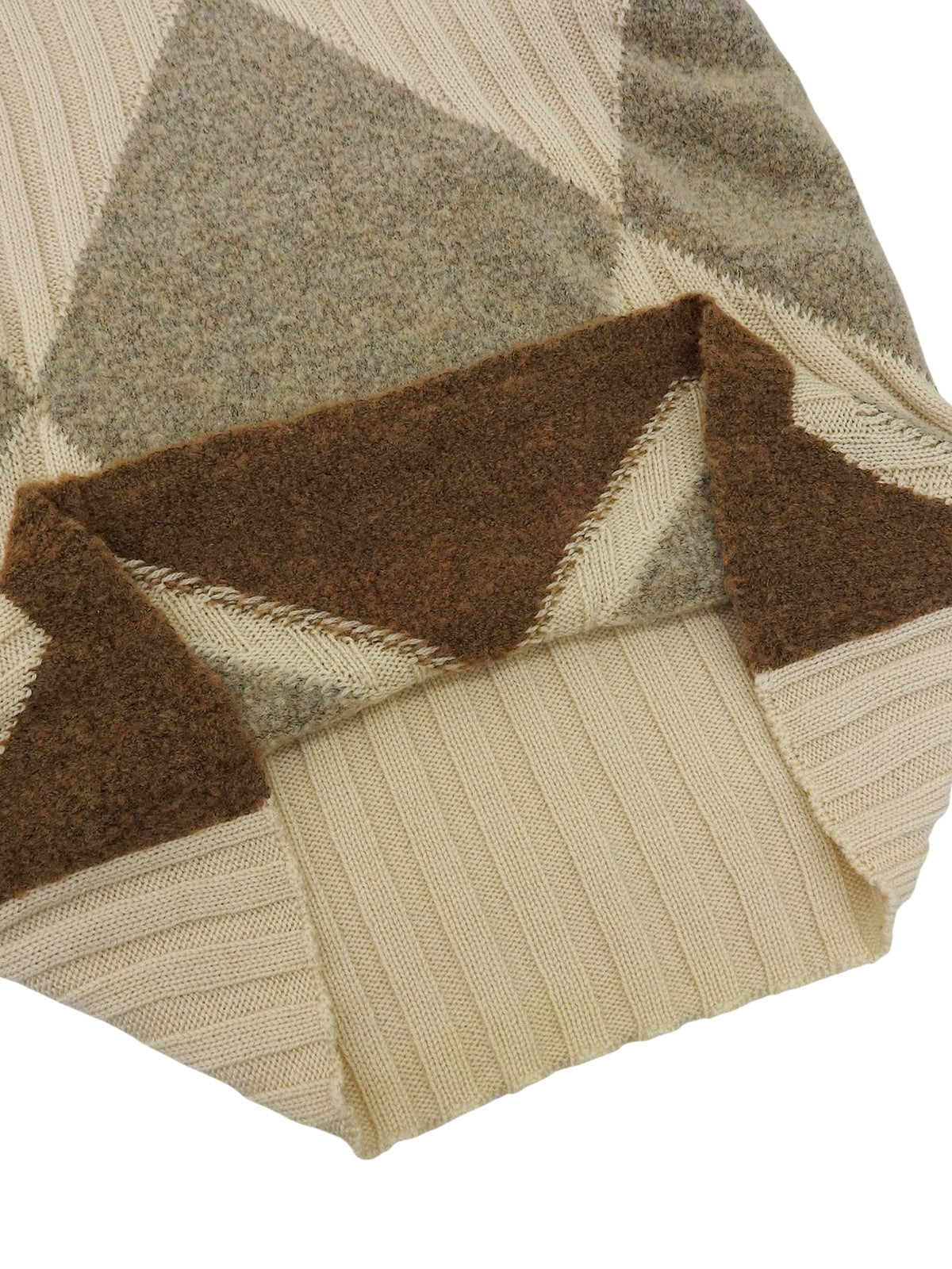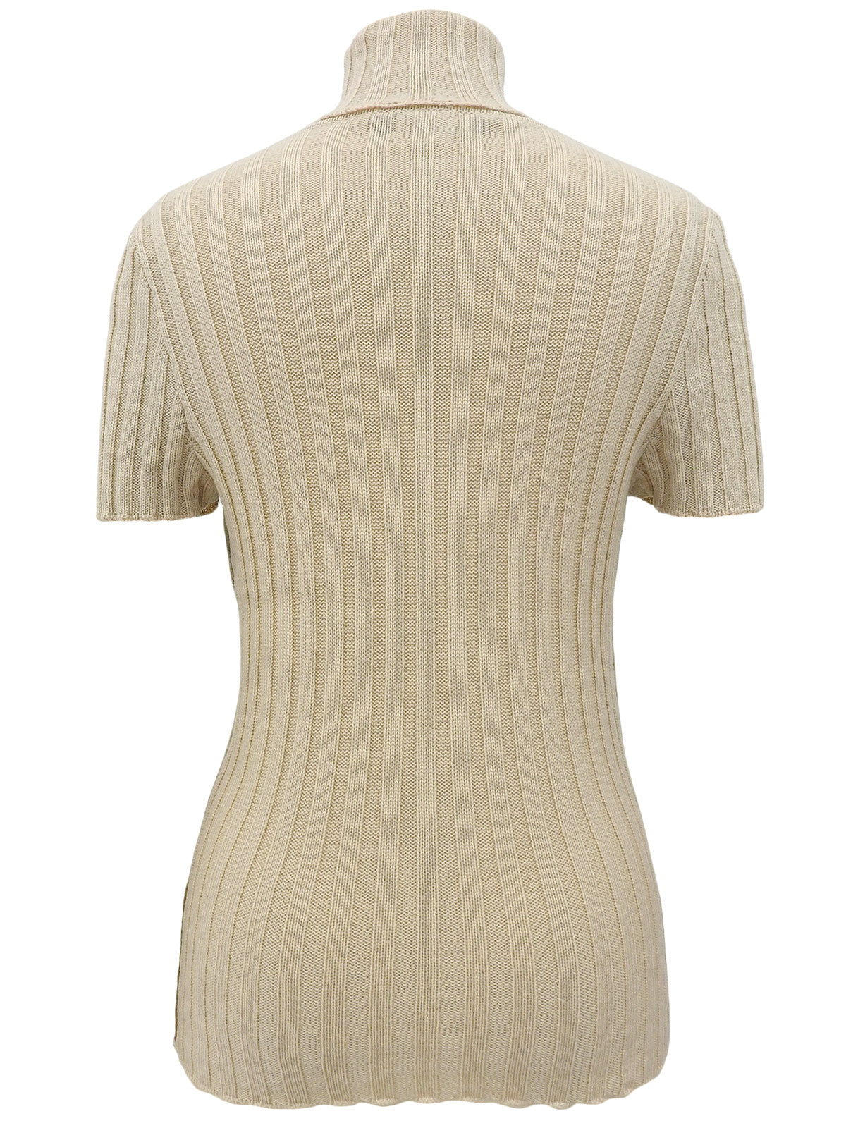 ウールダイヤパターン半袖タートルネックニットトップス ベージュ/ブラウン