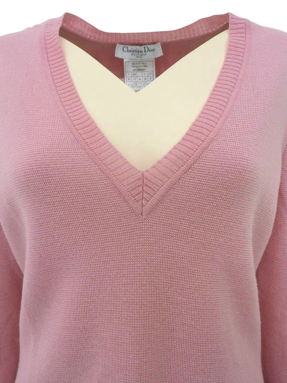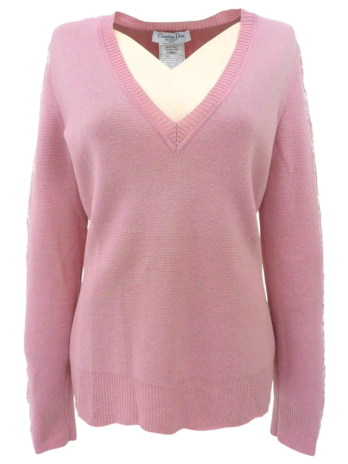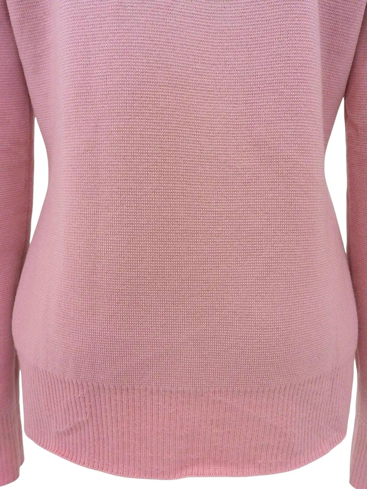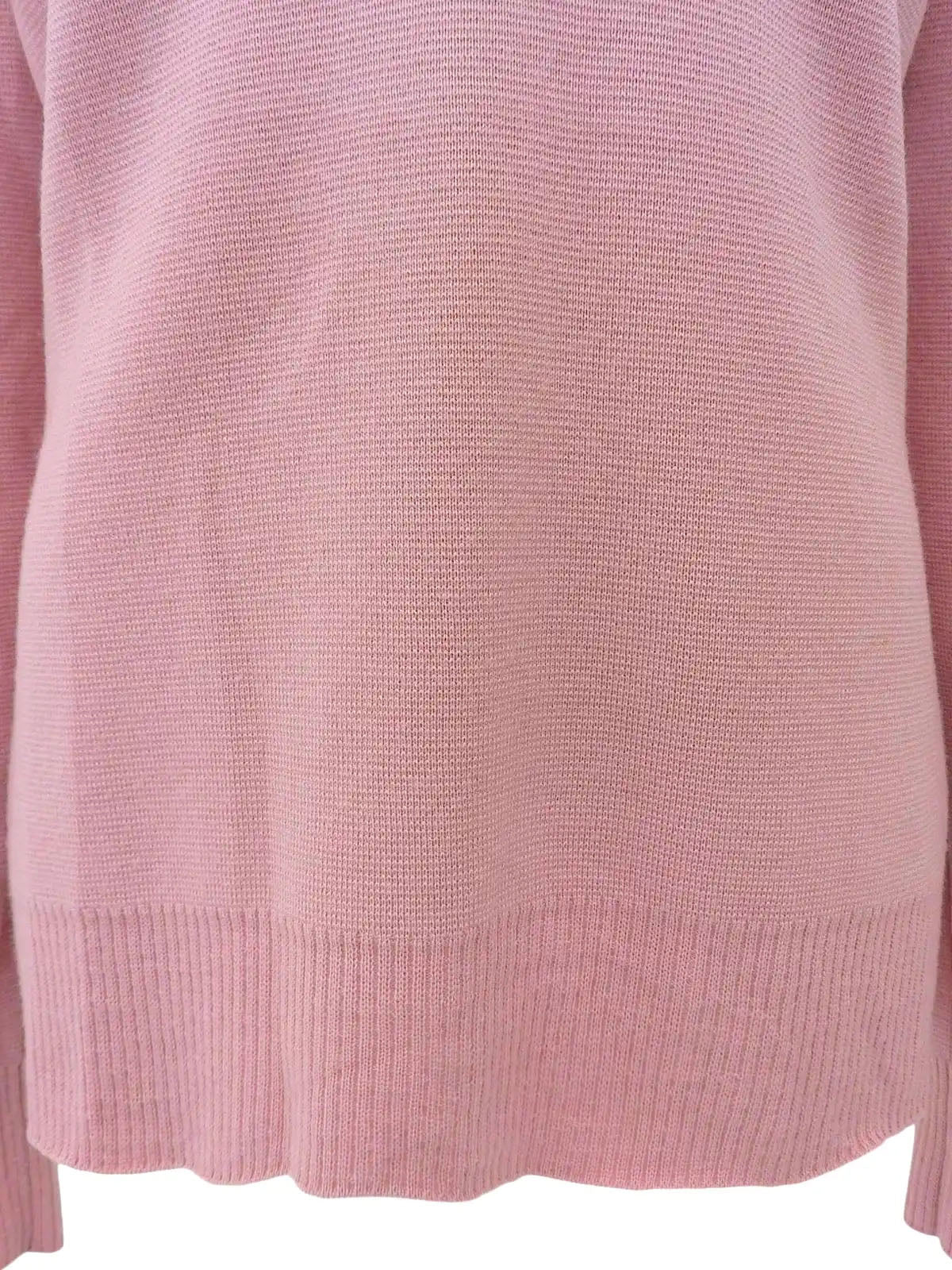 ウールショルダートロッターVネックニットトップス ピンク/ホワイト