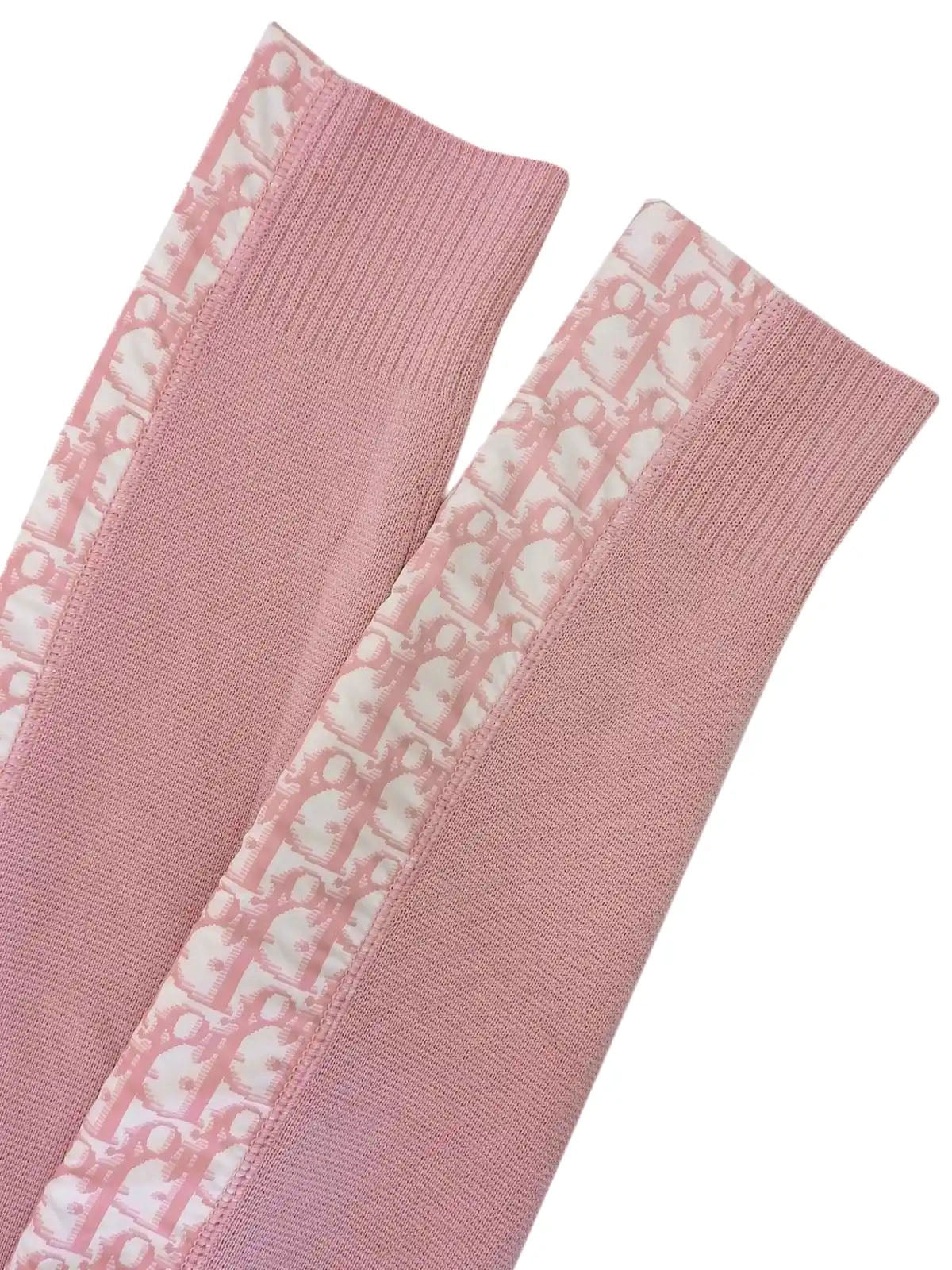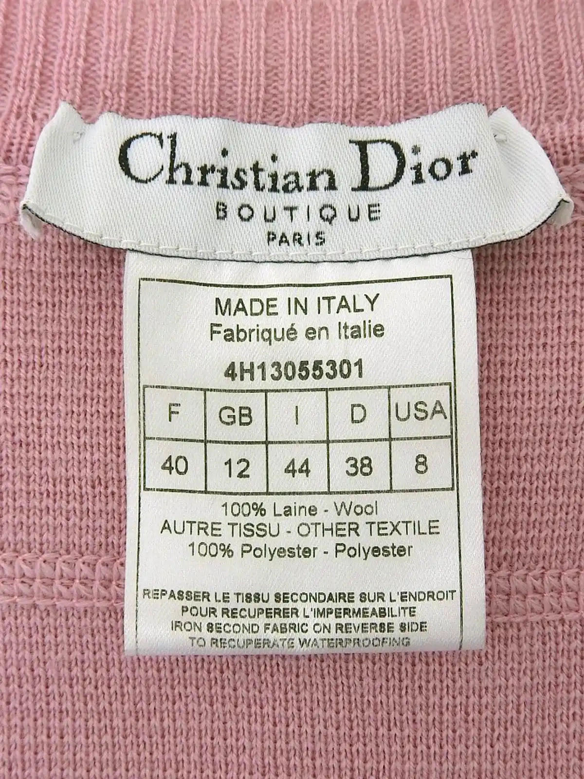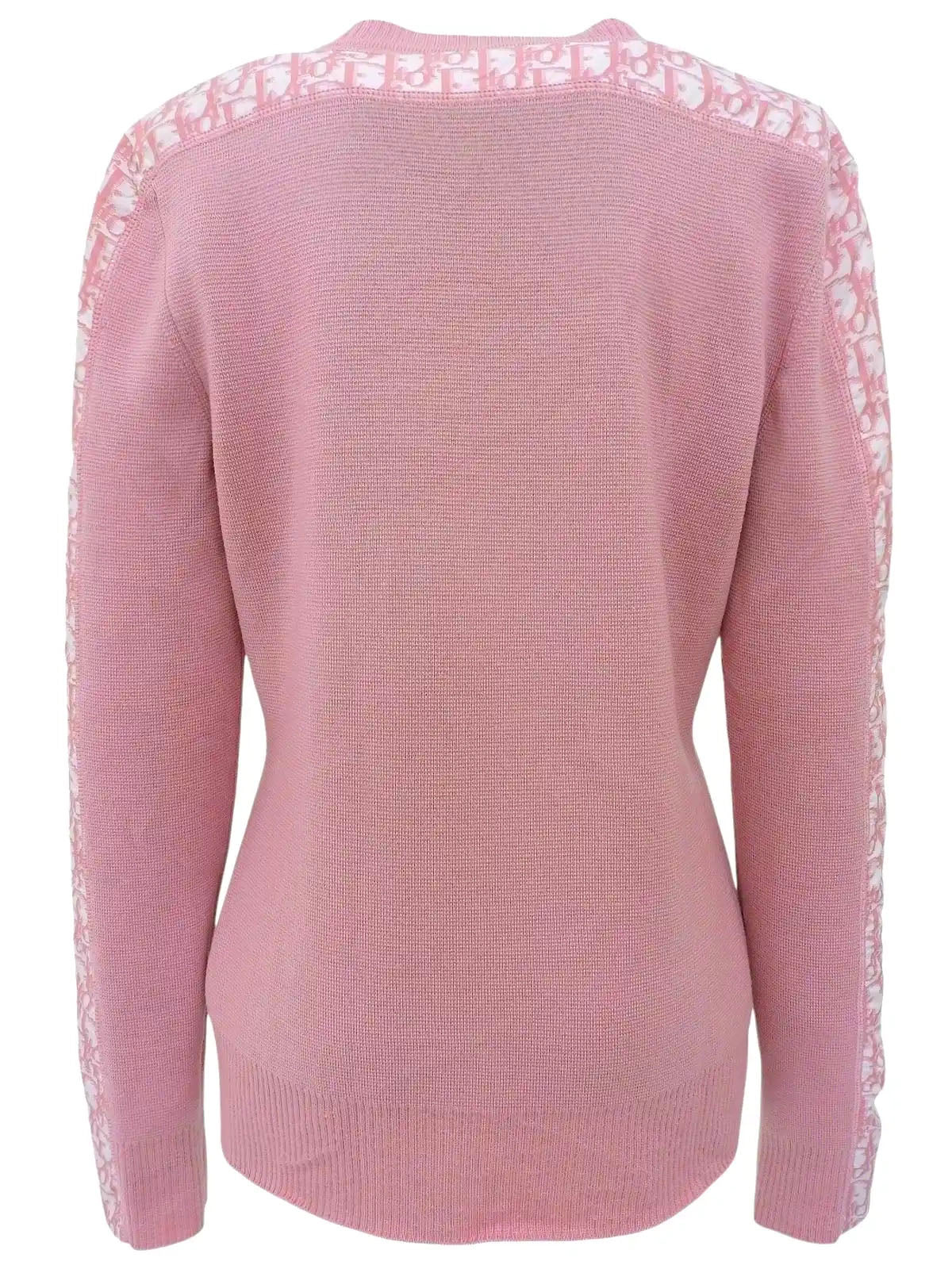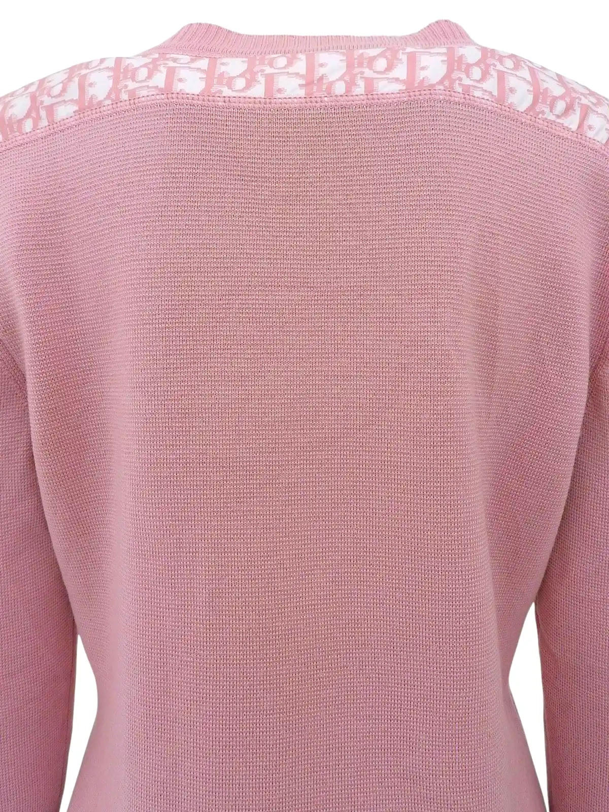 ウールショルダートロッターVネックニットトップス ピンク/ホワイト