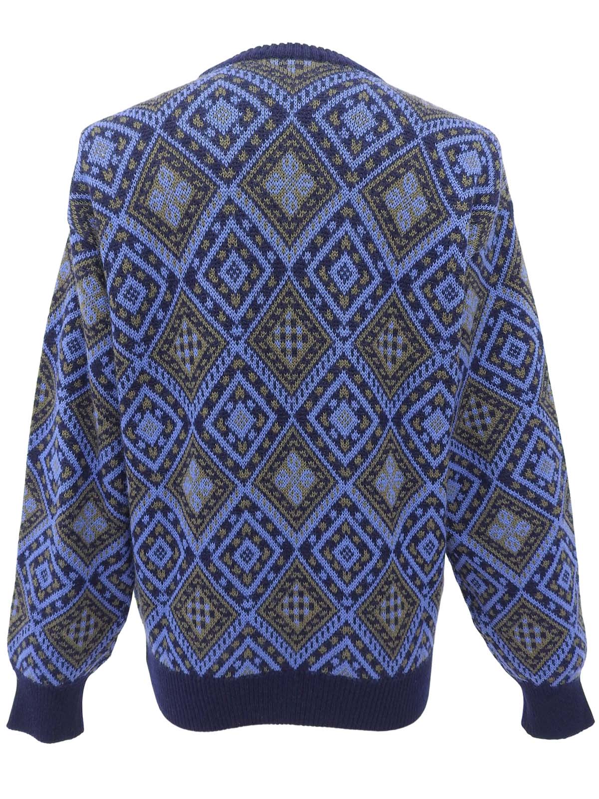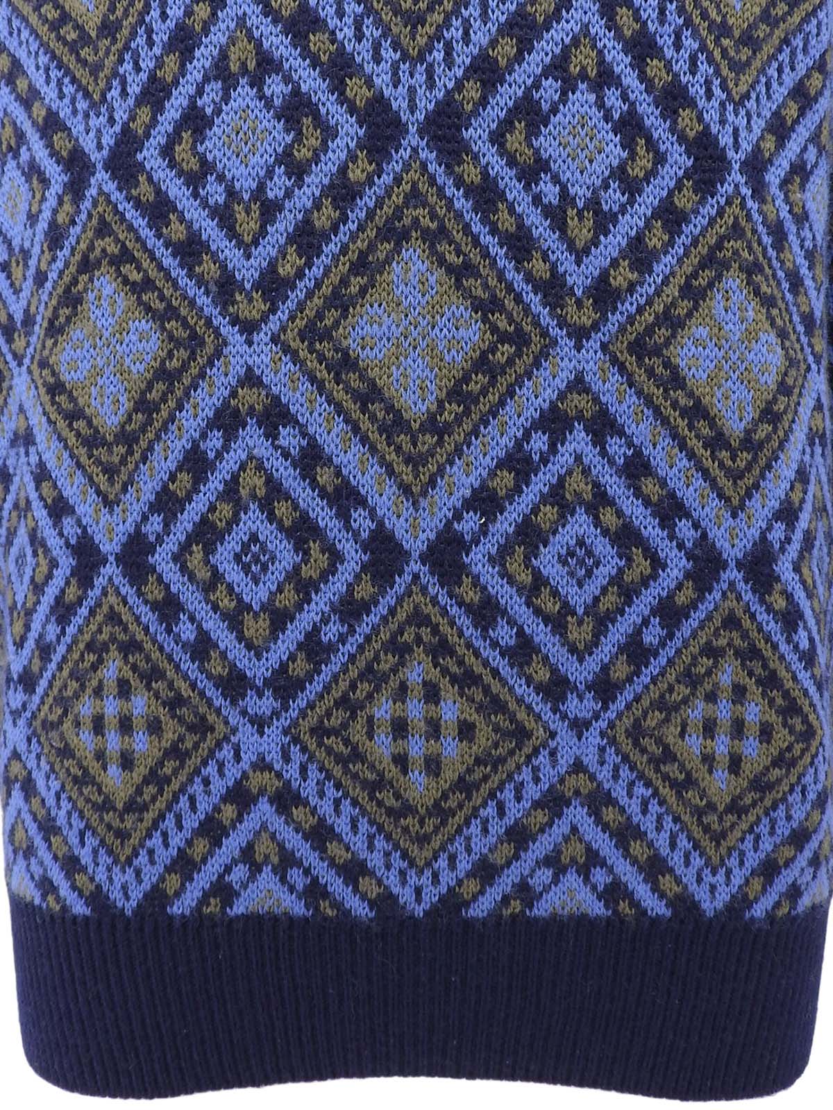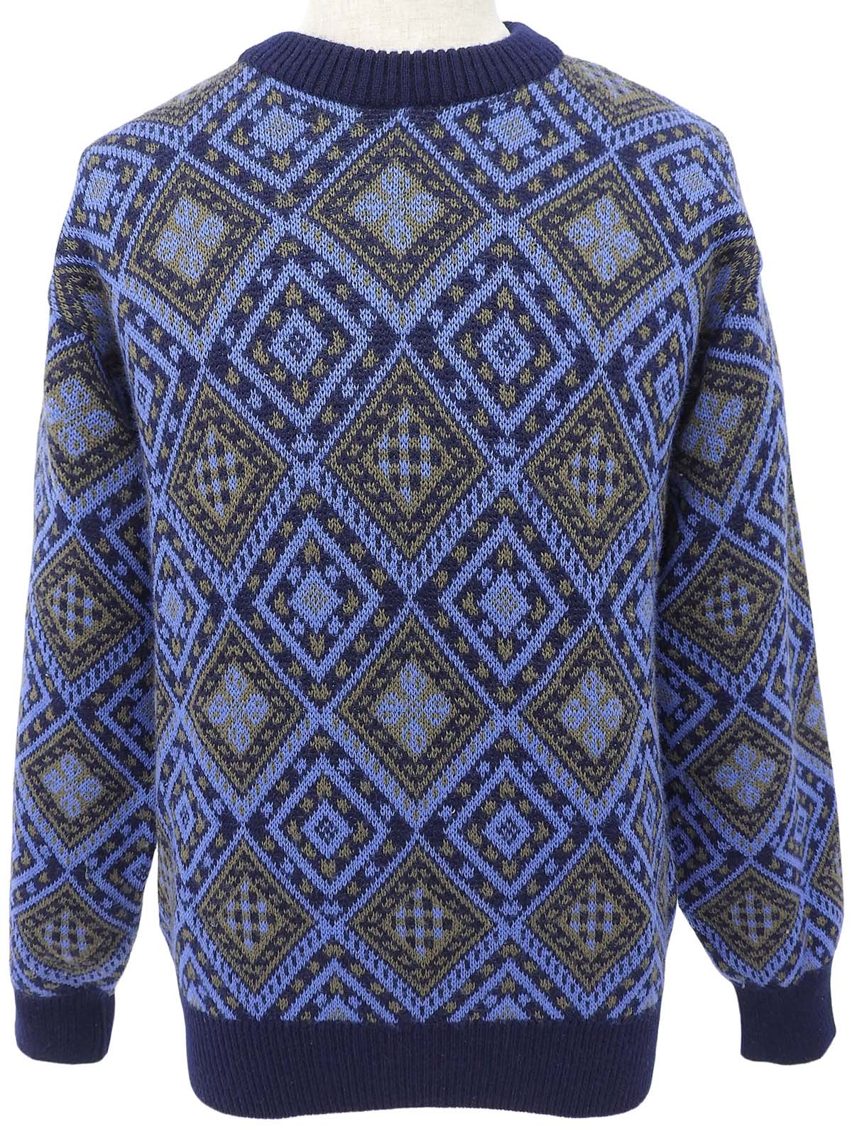 デザインパターンニットトップス ブルー
