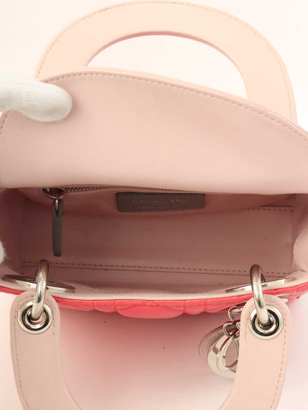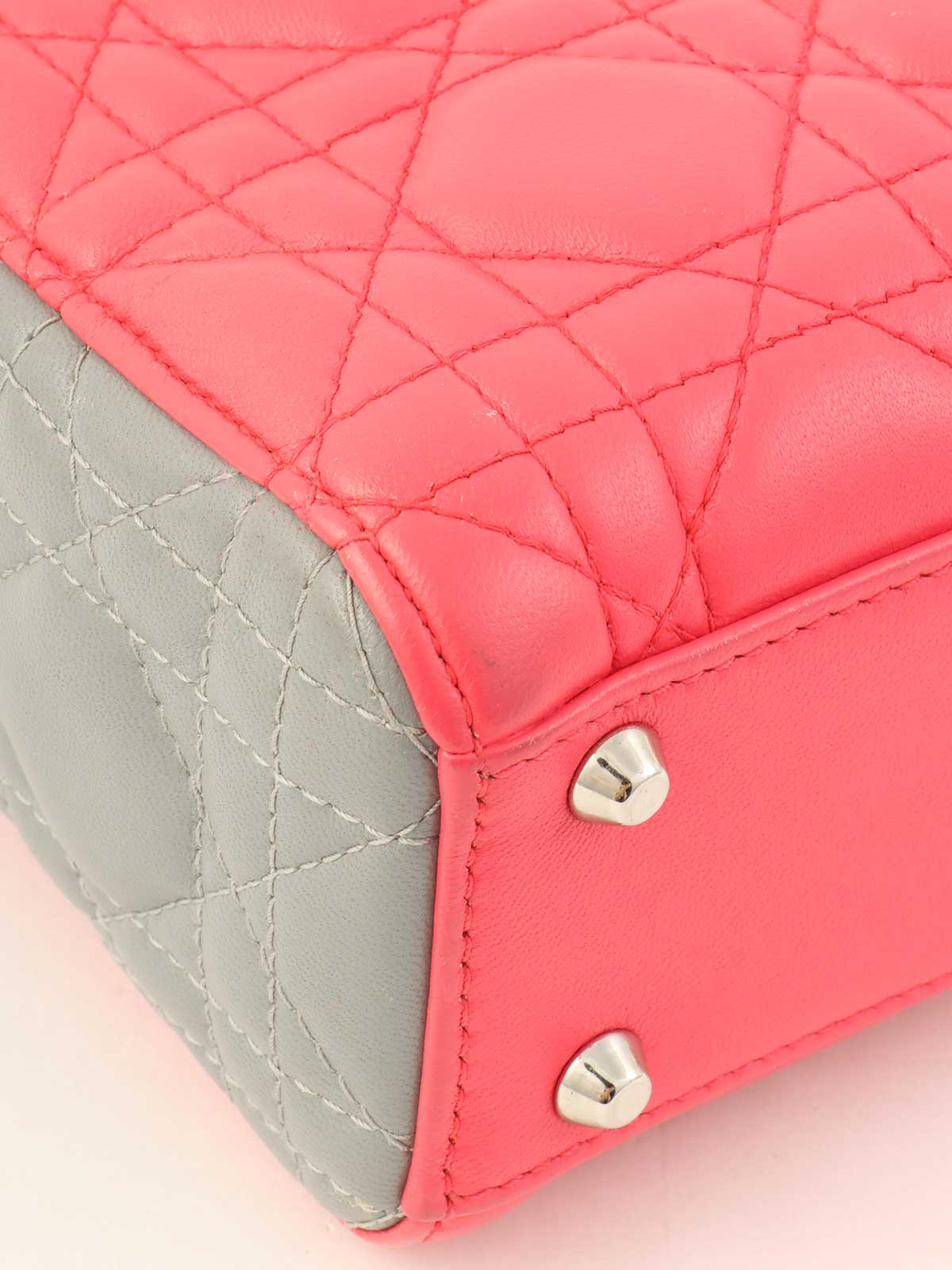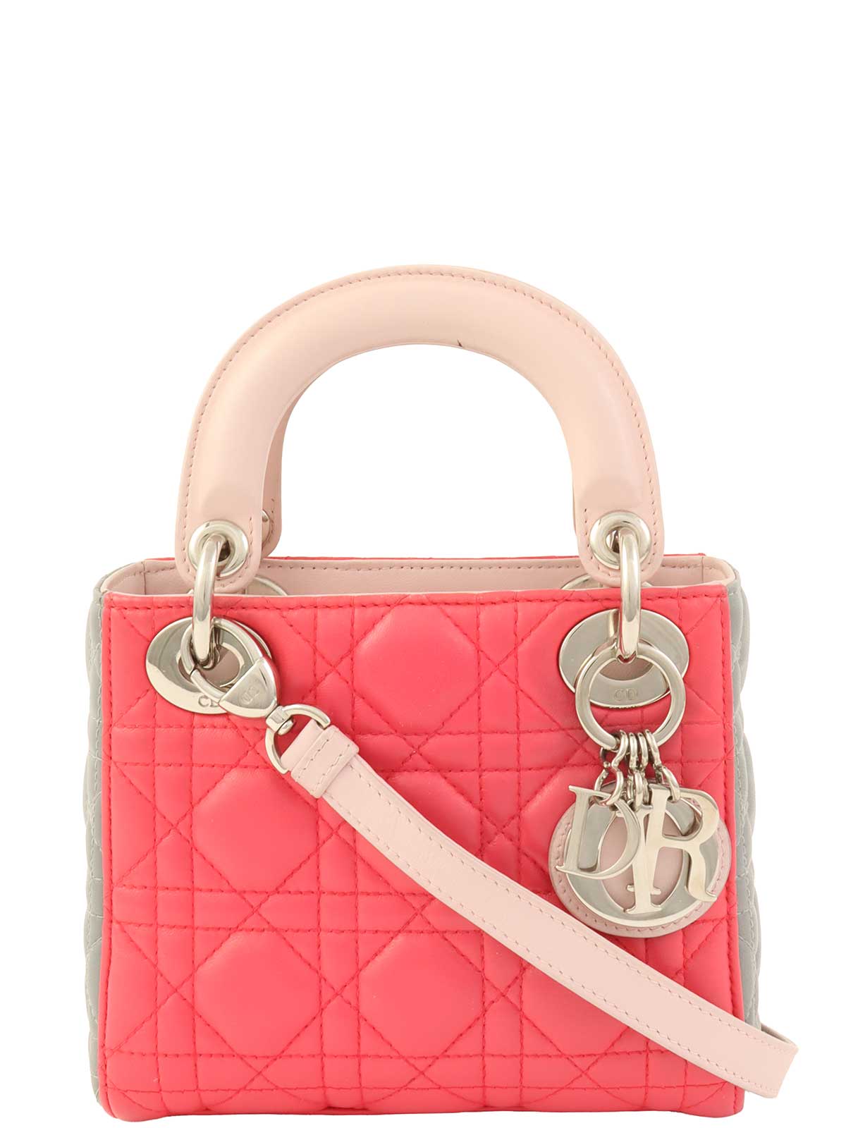 レディディオールミニカナージュステッチ2wayバッグ ピンク/グレー
