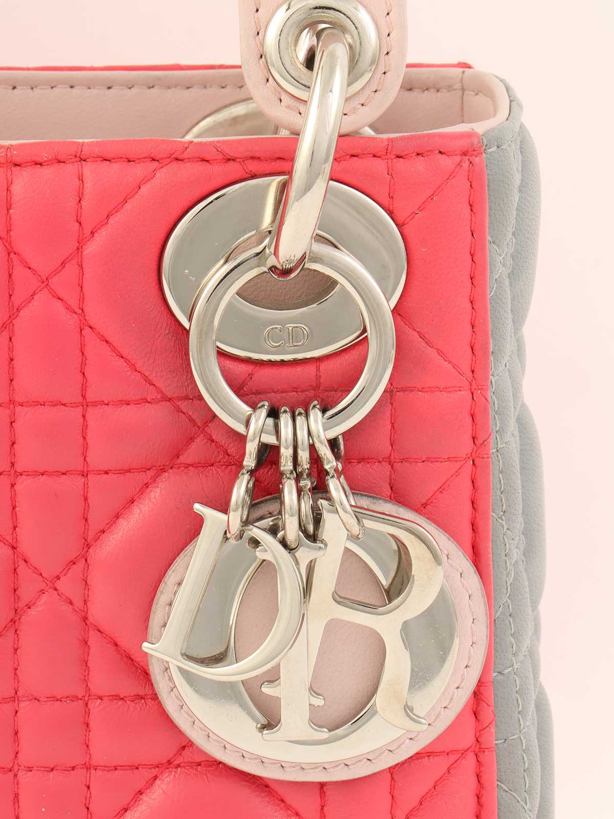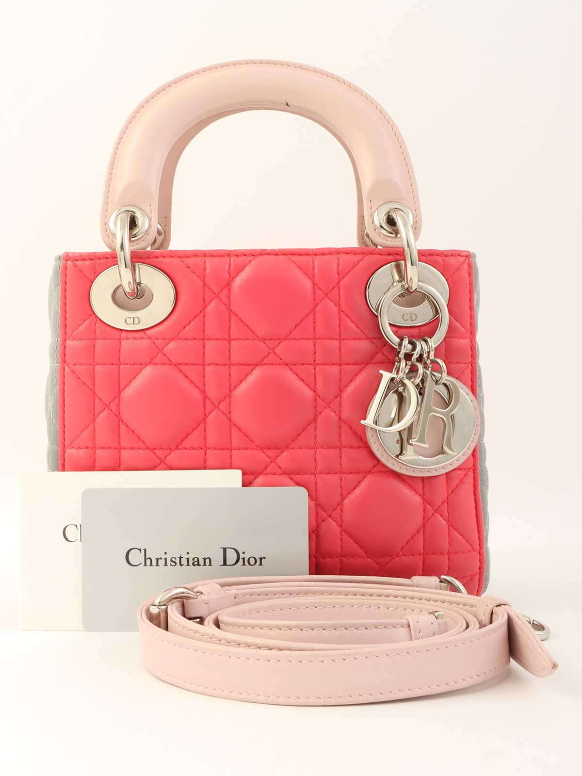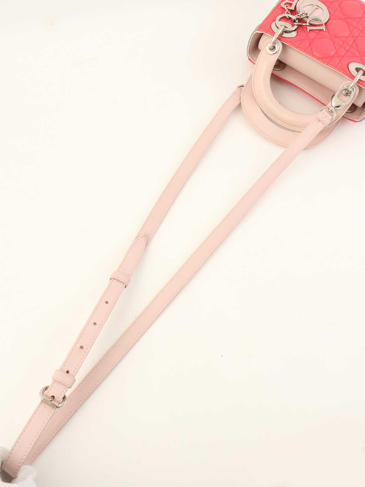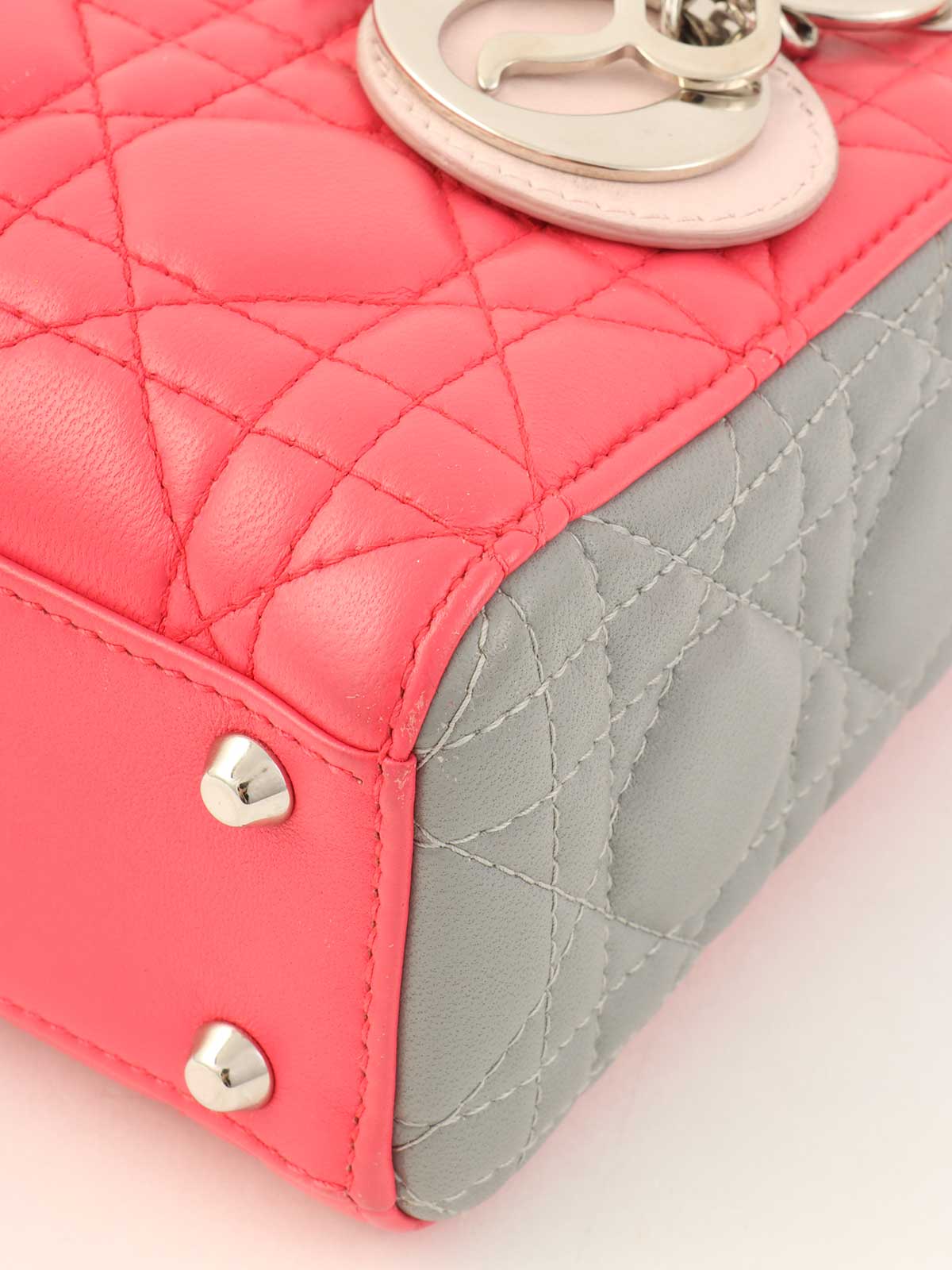 レディディオールミニカナージュステッチ2wayバッグ ピンク/グレー