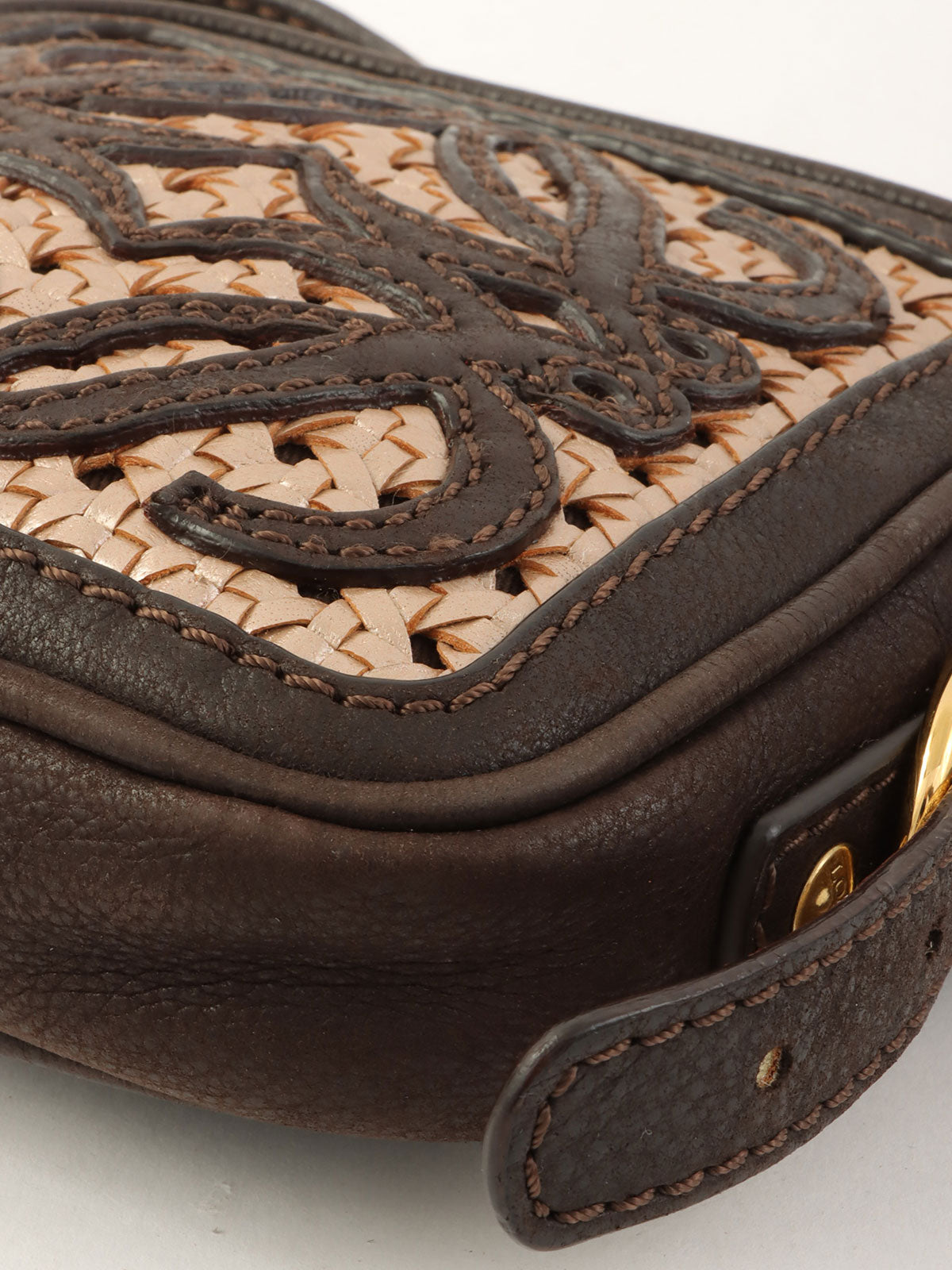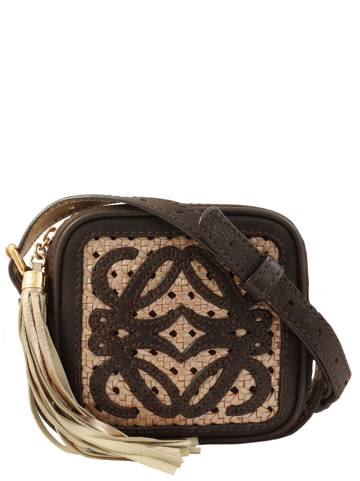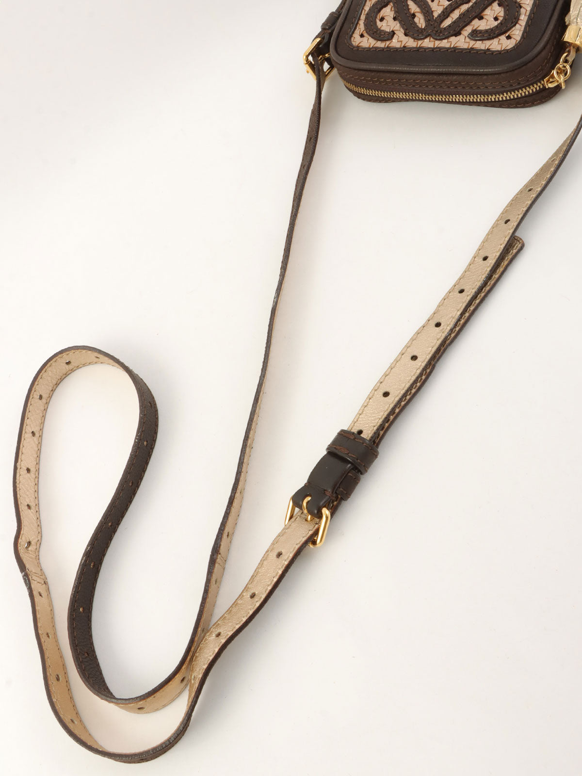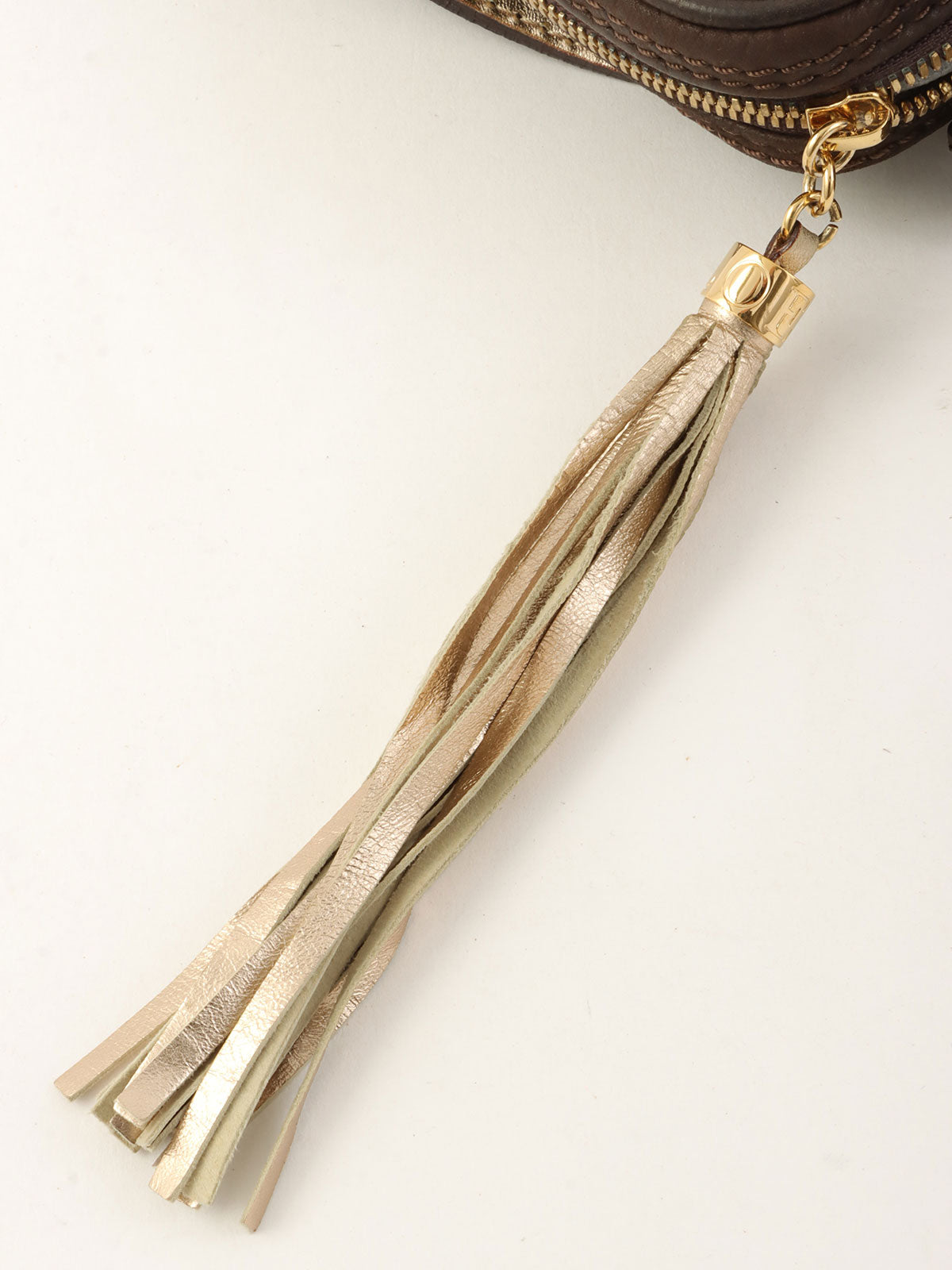 アナグラムタッセルチャームショルダーバッグ ブラウン/ゴールド/メタリックピンク