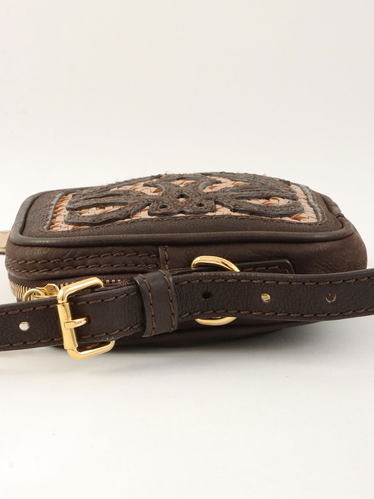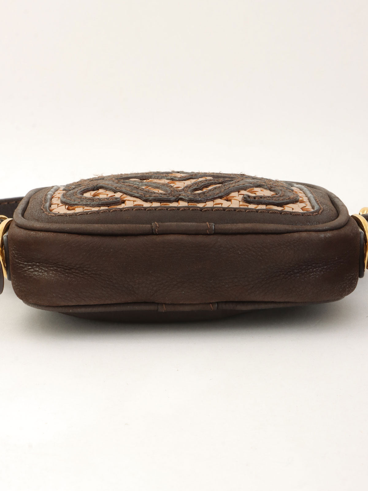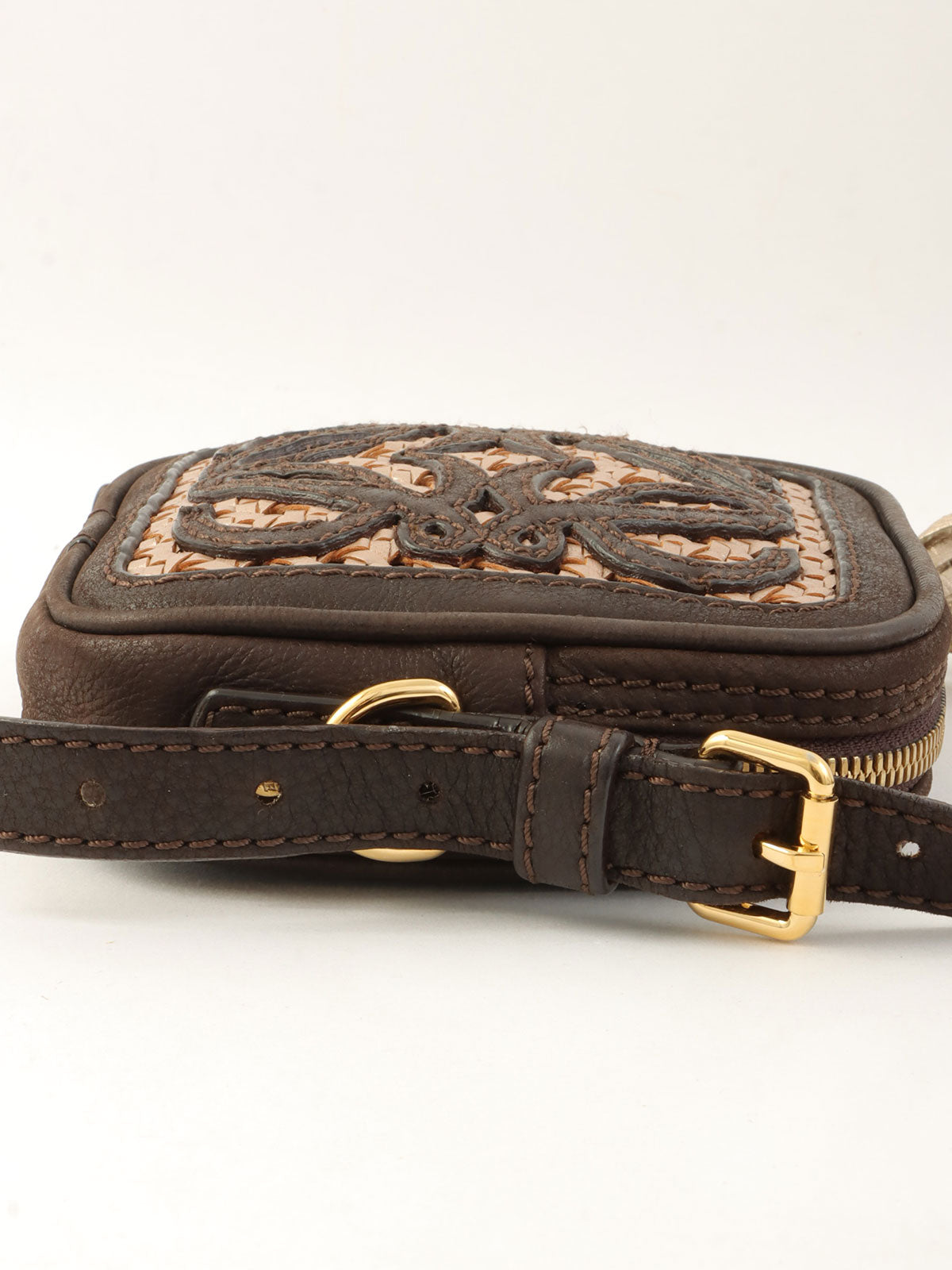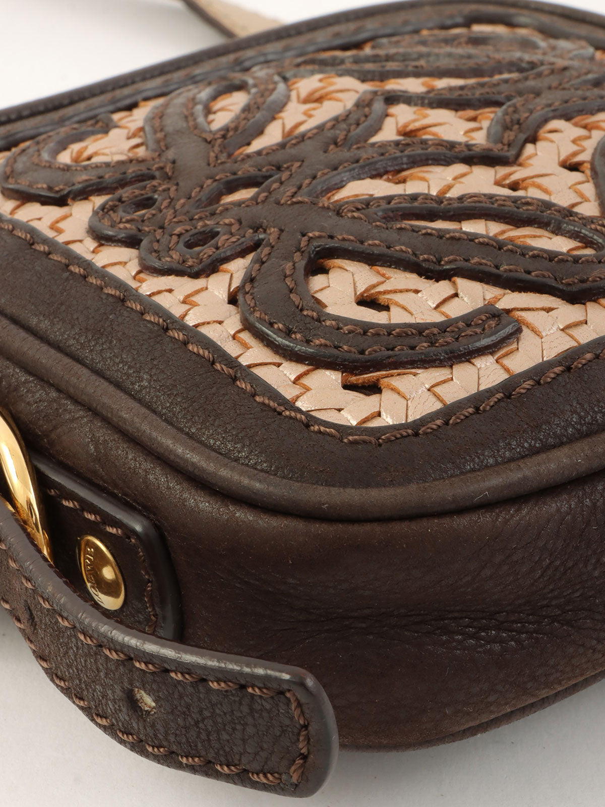 アナグラムタッセルチャームショルダーバッグ ブラウン/ゴールド/メタリックピンク
