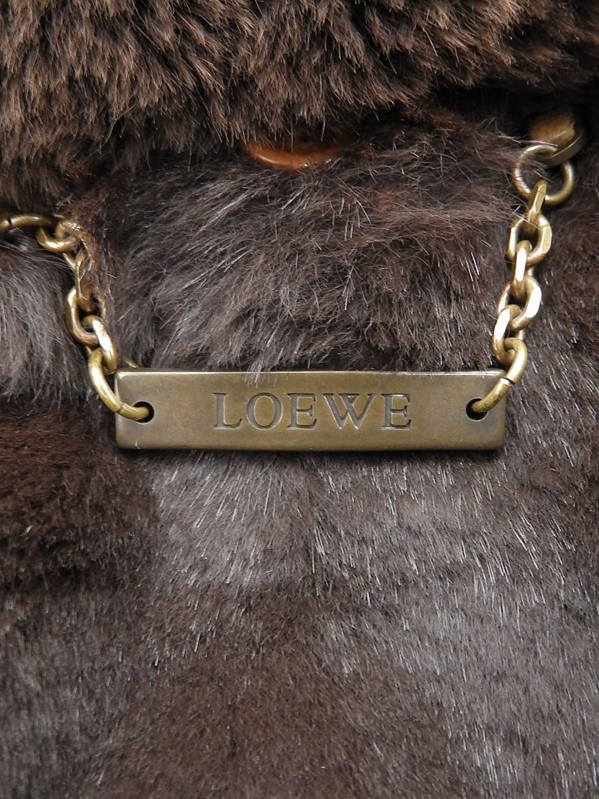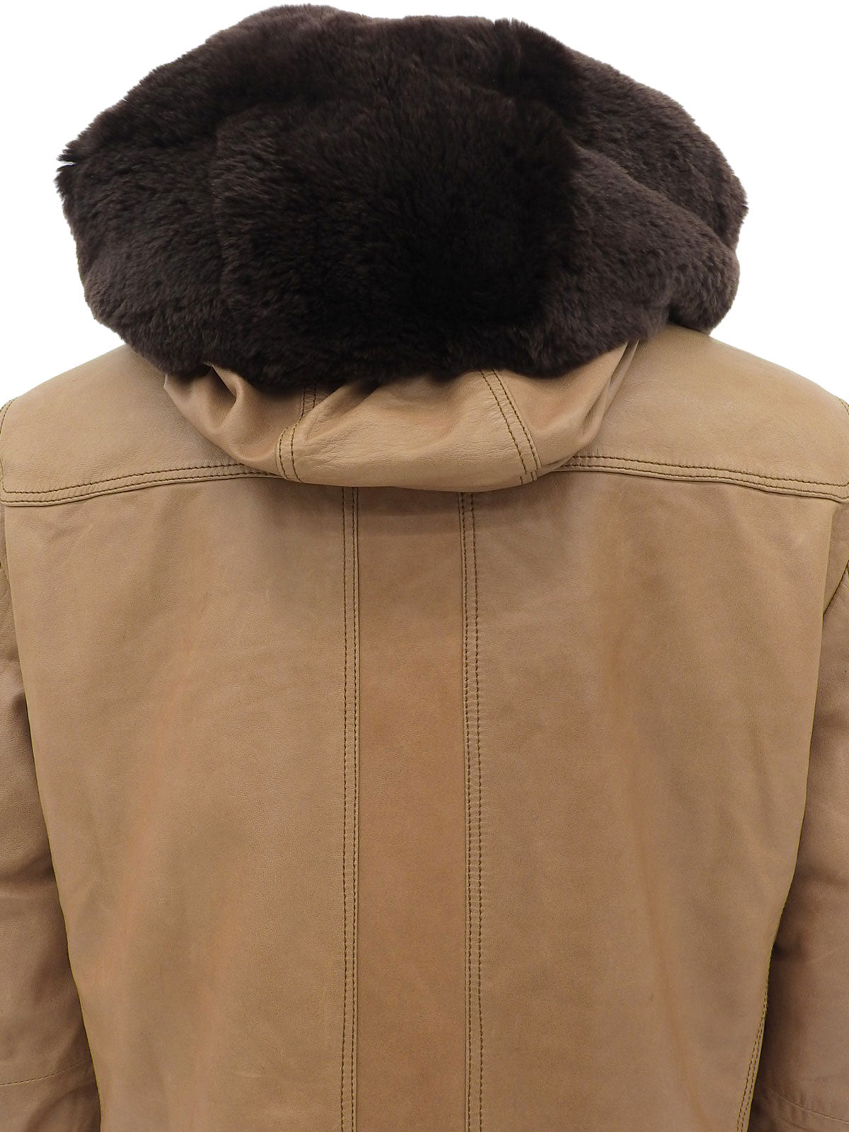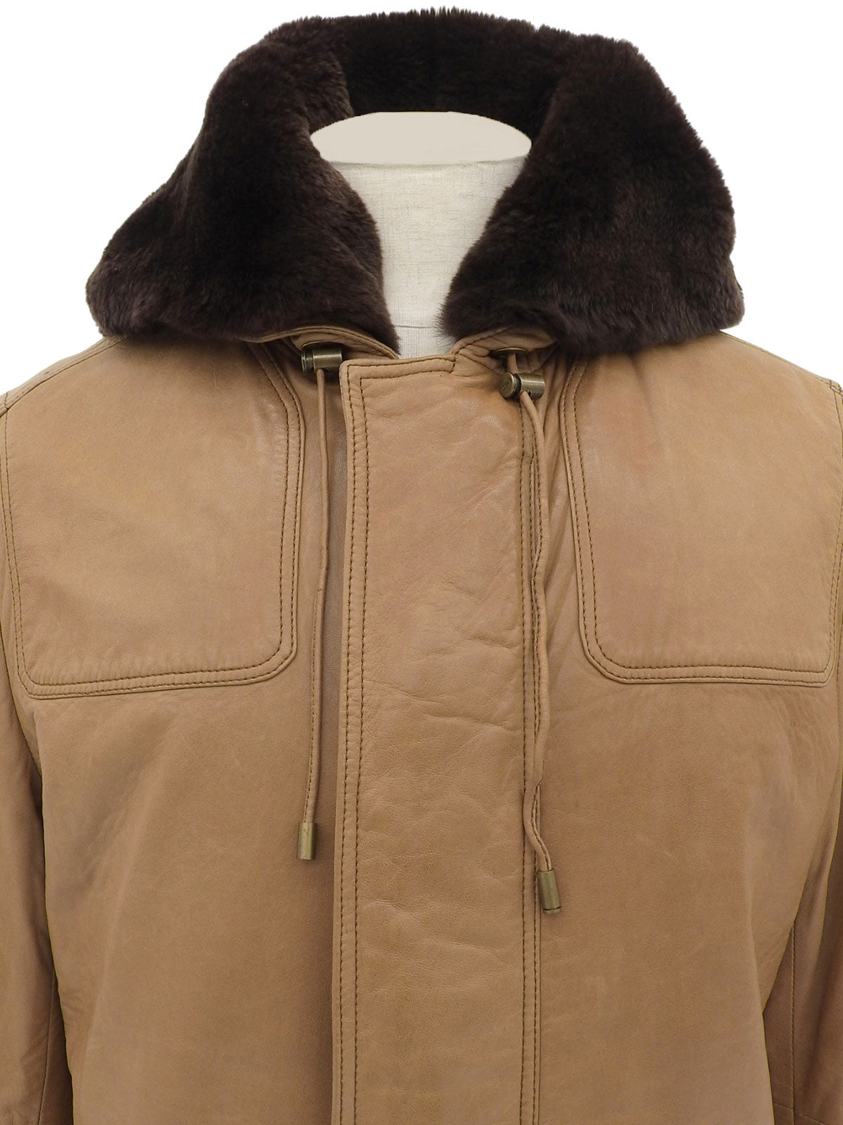 リアルレザーファーフーデッドロゴボタンコート ブラウン