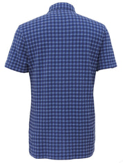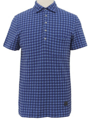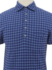 コットンチェックパターンポロシャツ ブルー
