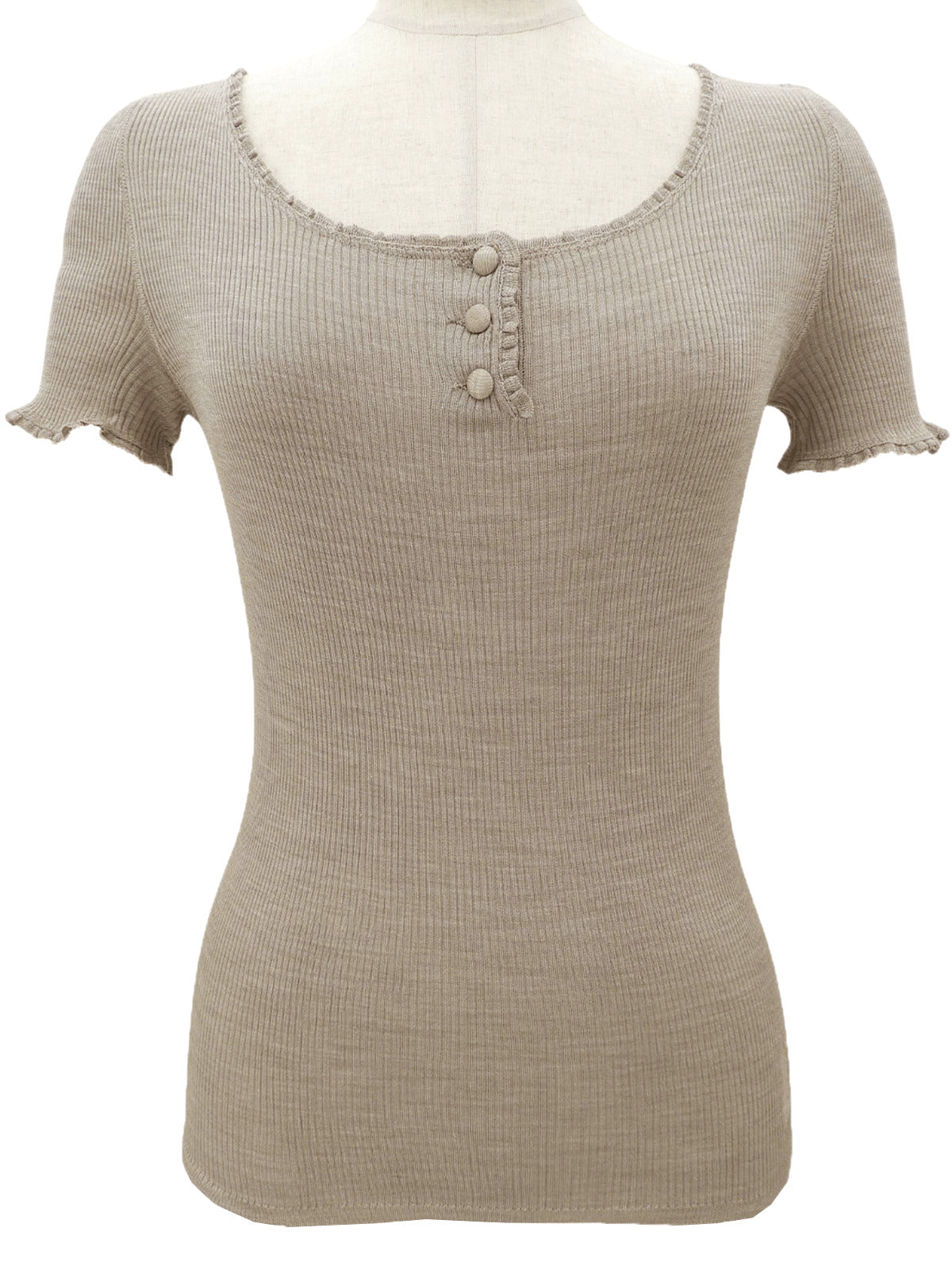 2007年製 ロゴ刺繍半袖ニットトップス #XS ベージュ