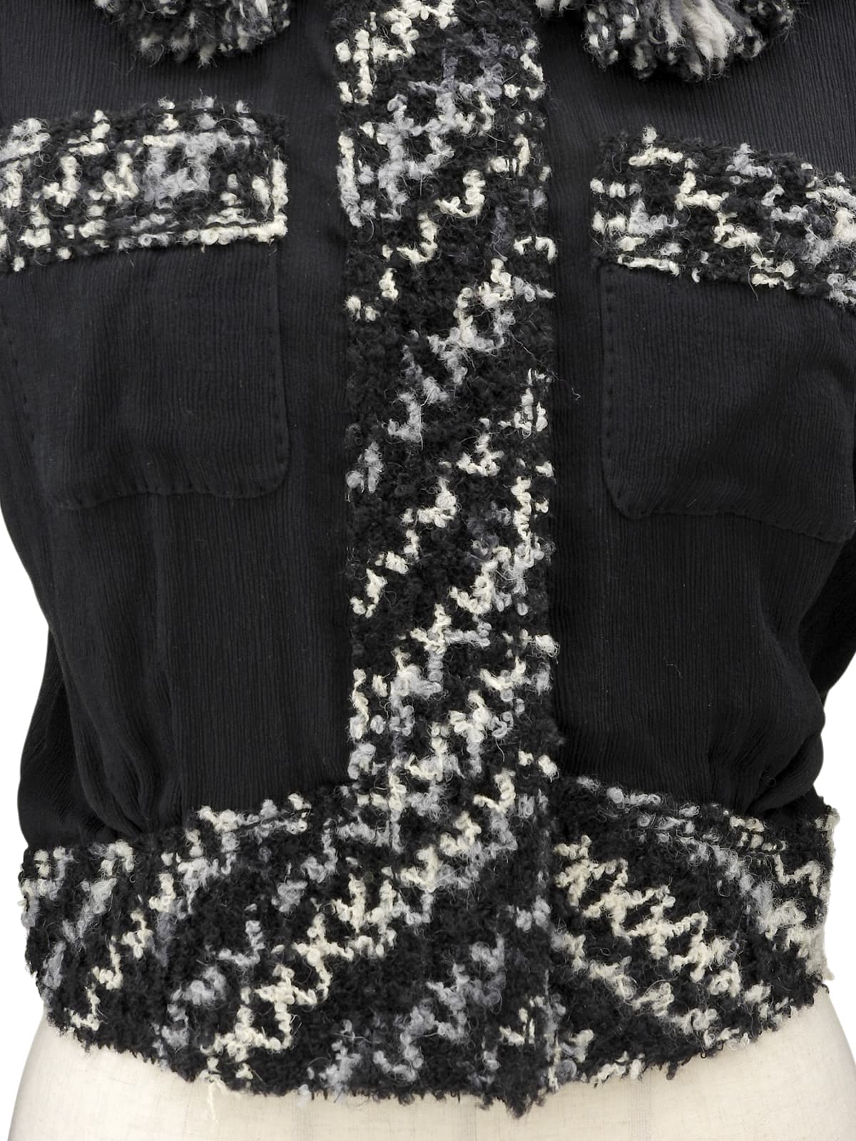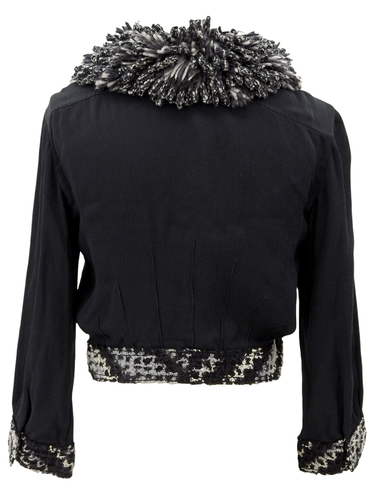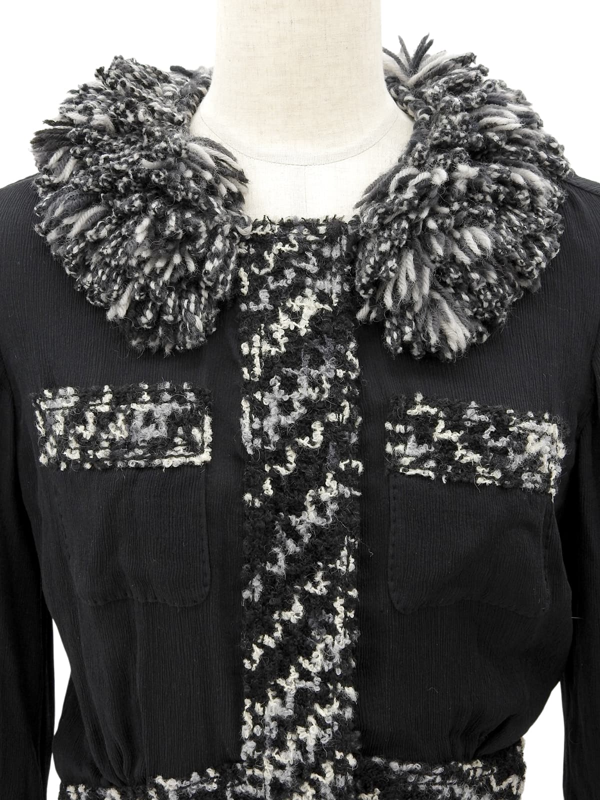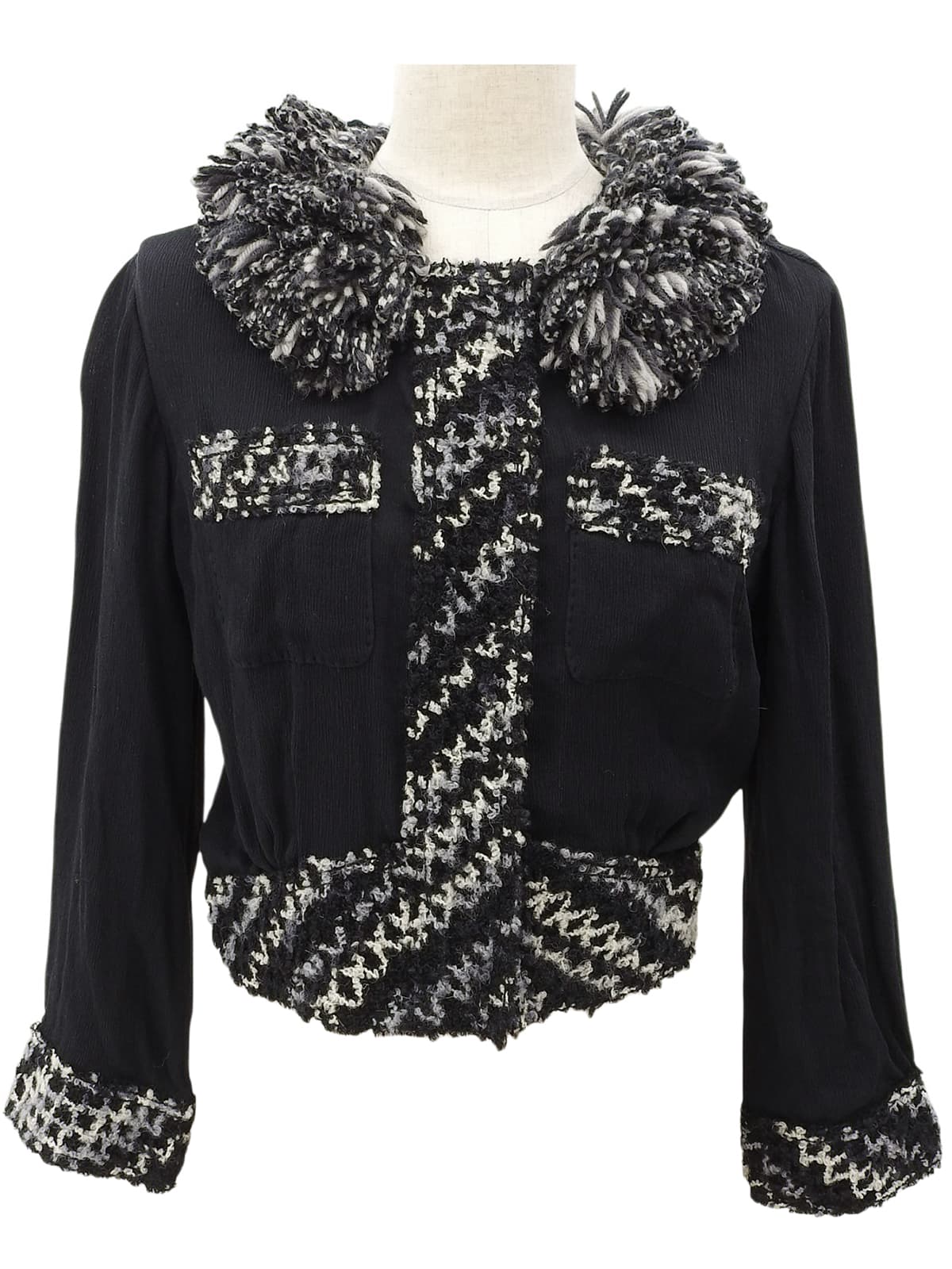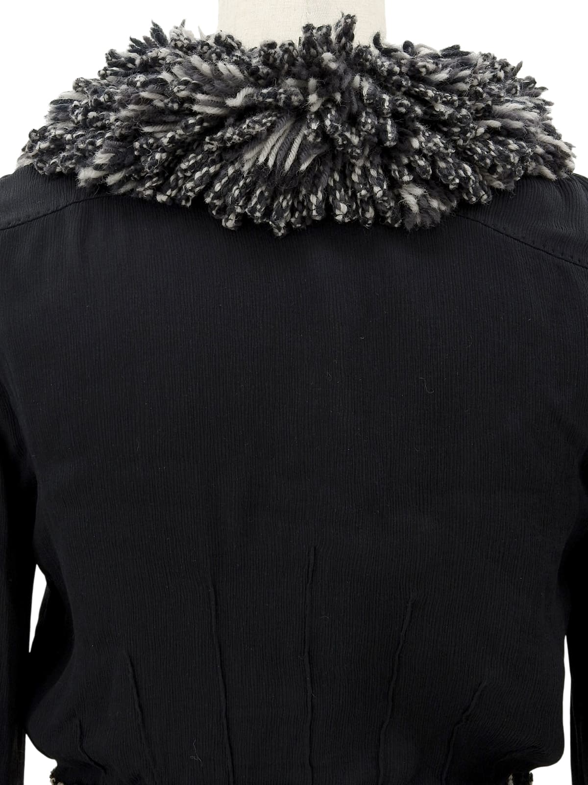 シルクウールコンビフリンジカラーカーディガン #34 ブラック/グレー