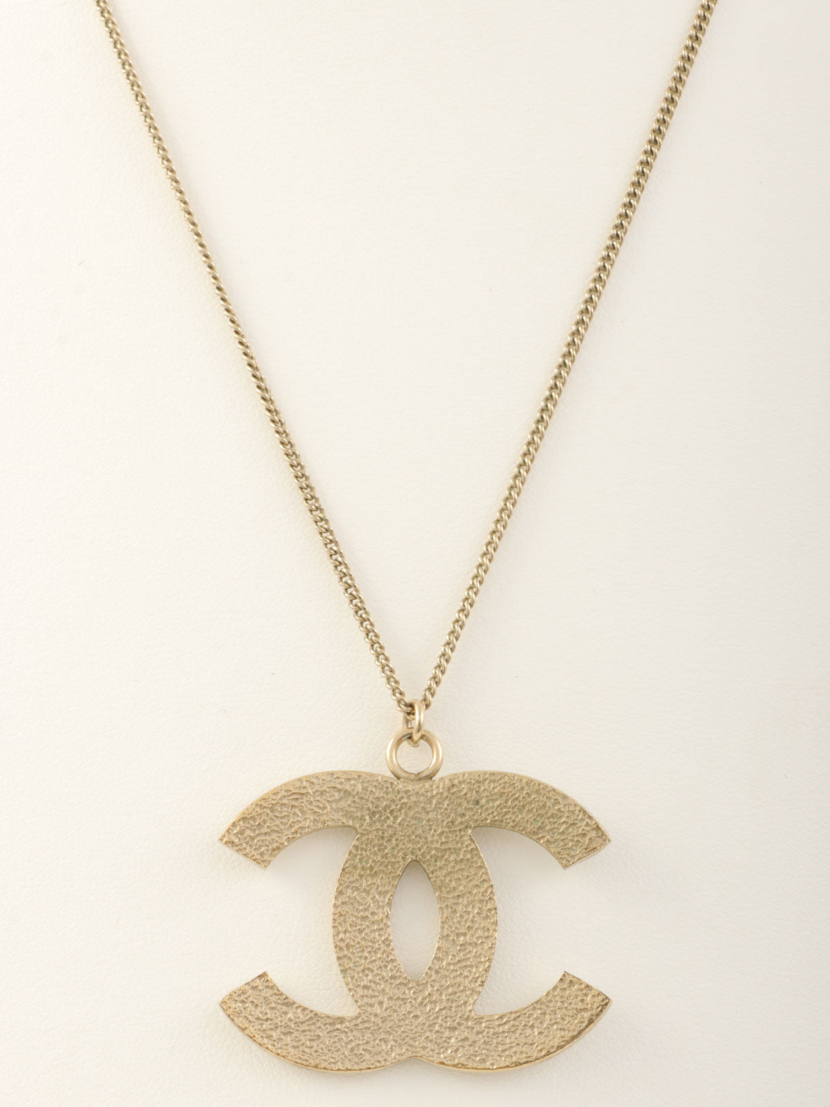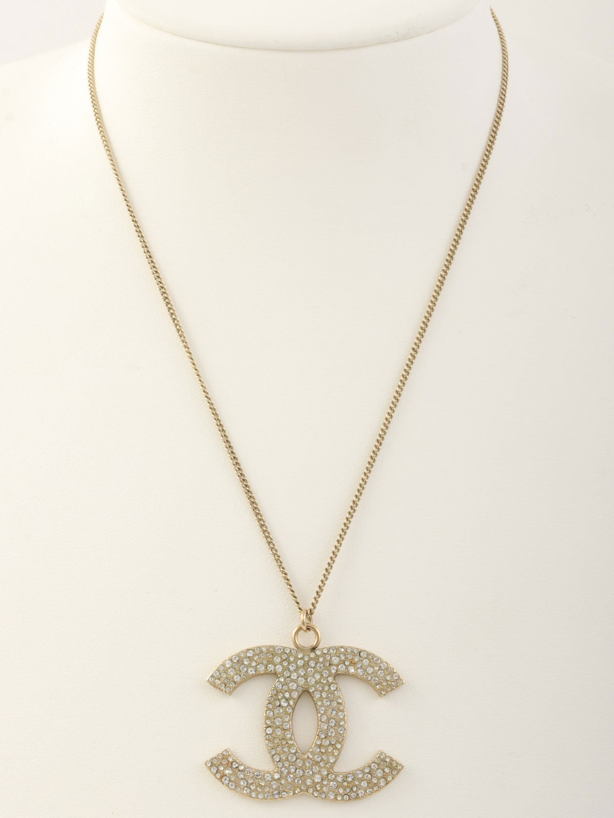 2008年製 ラインストーンCCマークプレートネックレス ゴールド
