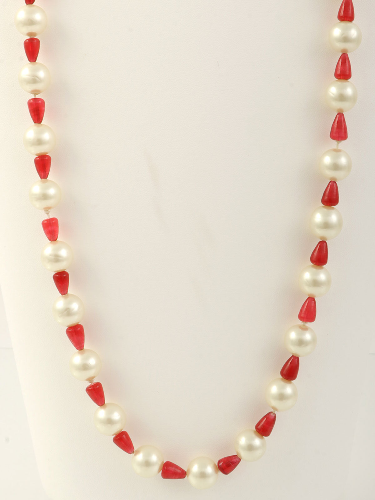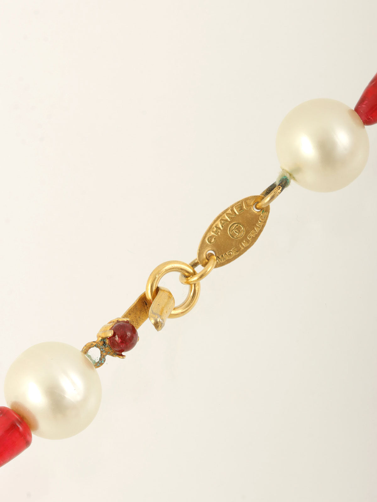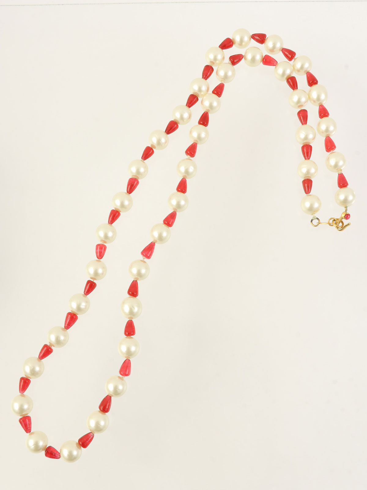 ピンクパールカラーストーンネックレス ホワイト/レッド