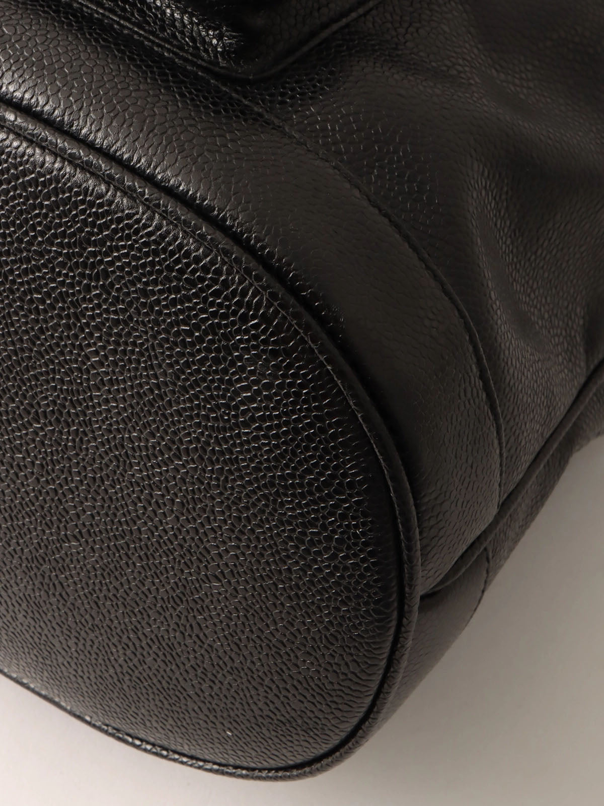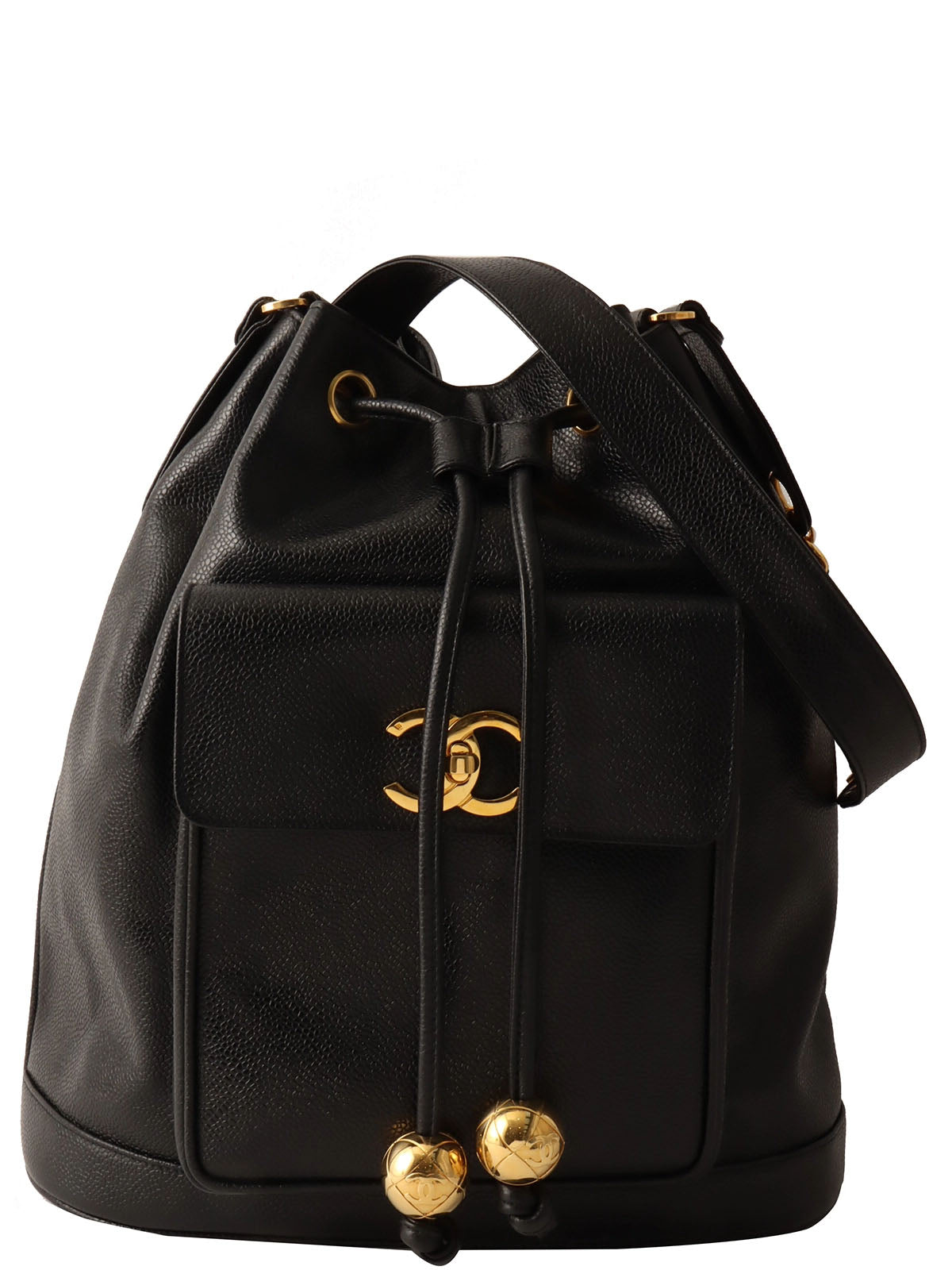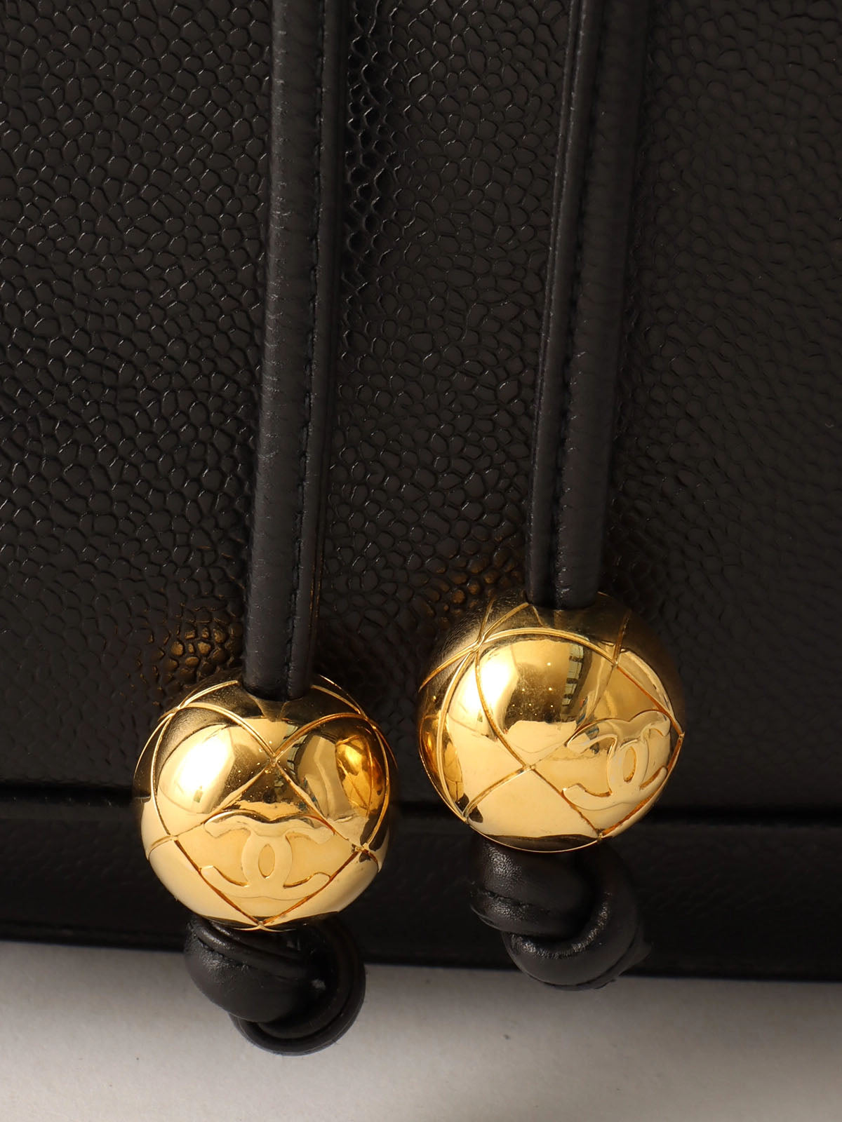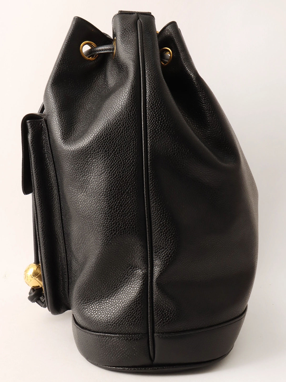 1995年頃製 キャビアスキンCCターンロックプレートポーチ付き巾着ショルダーバッグ ブラック