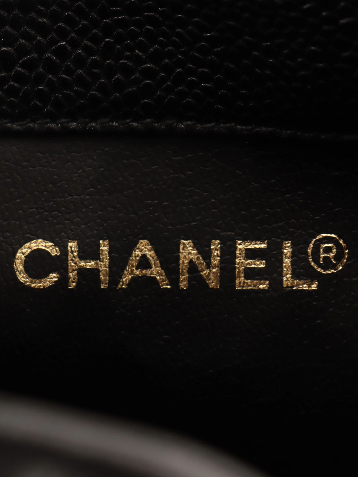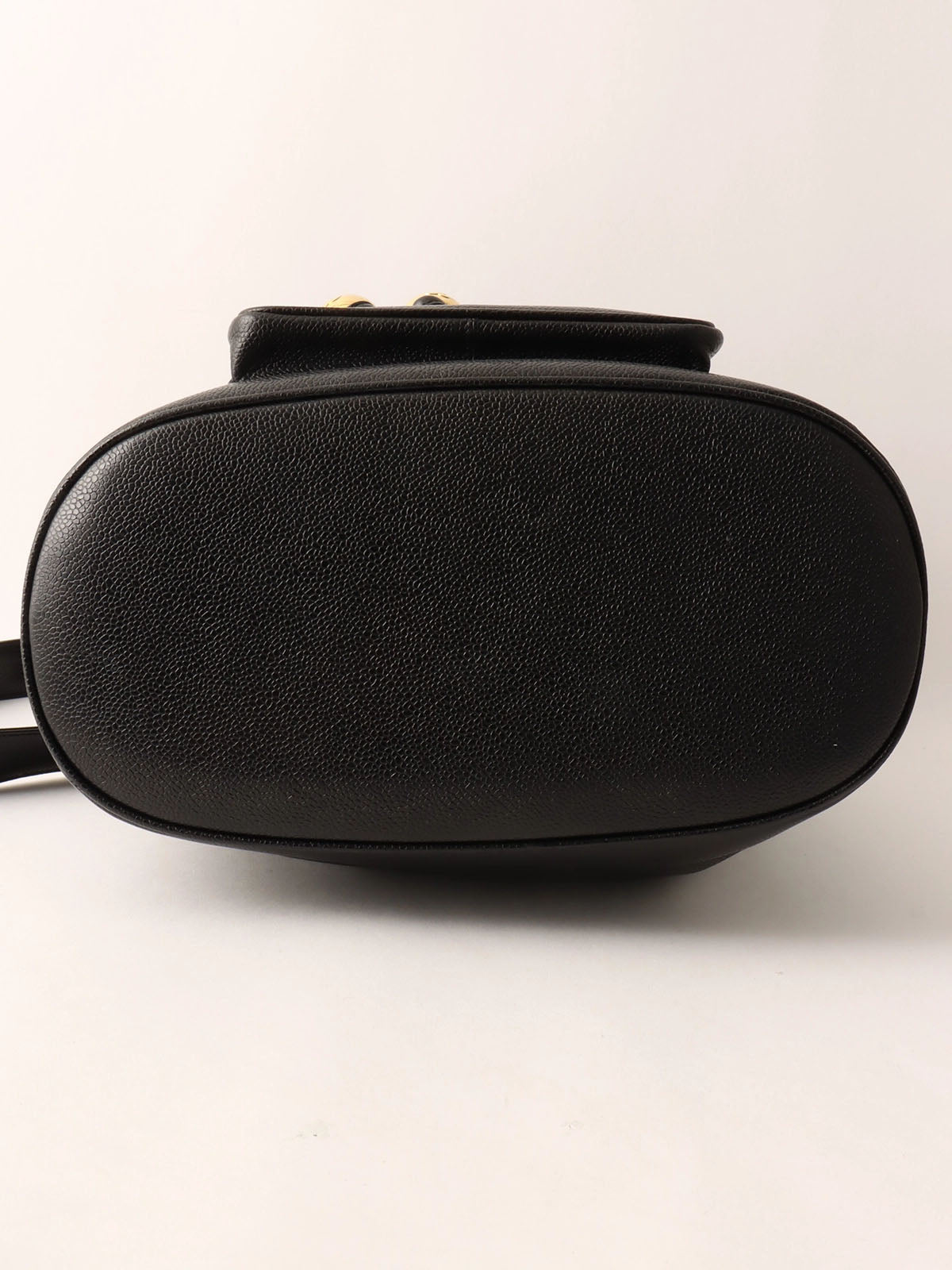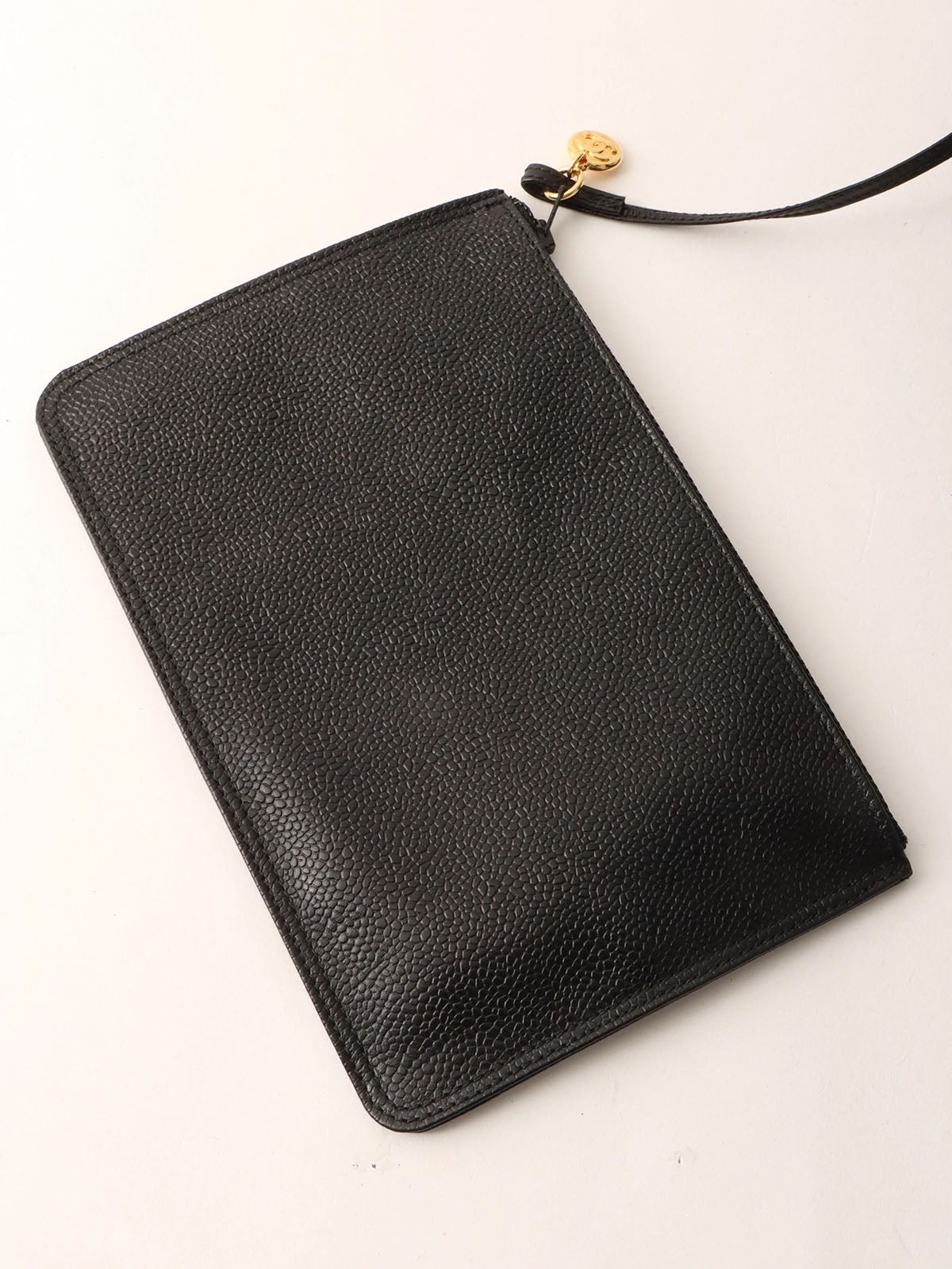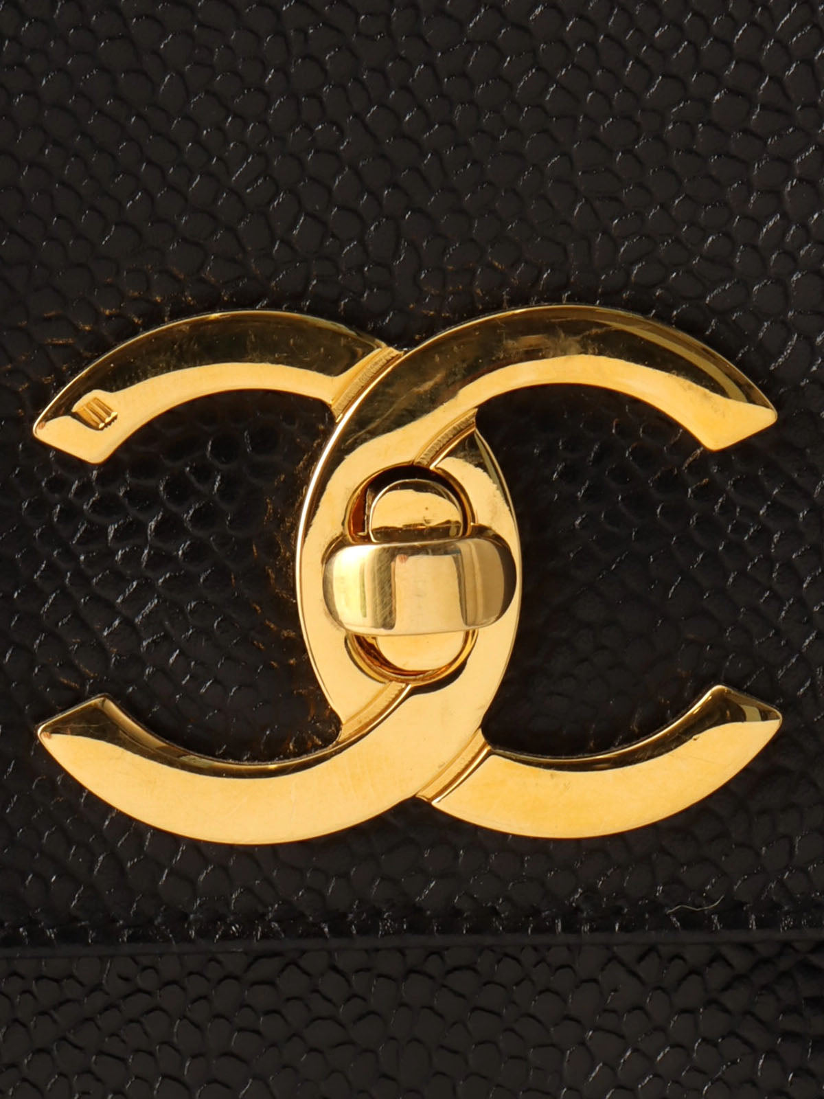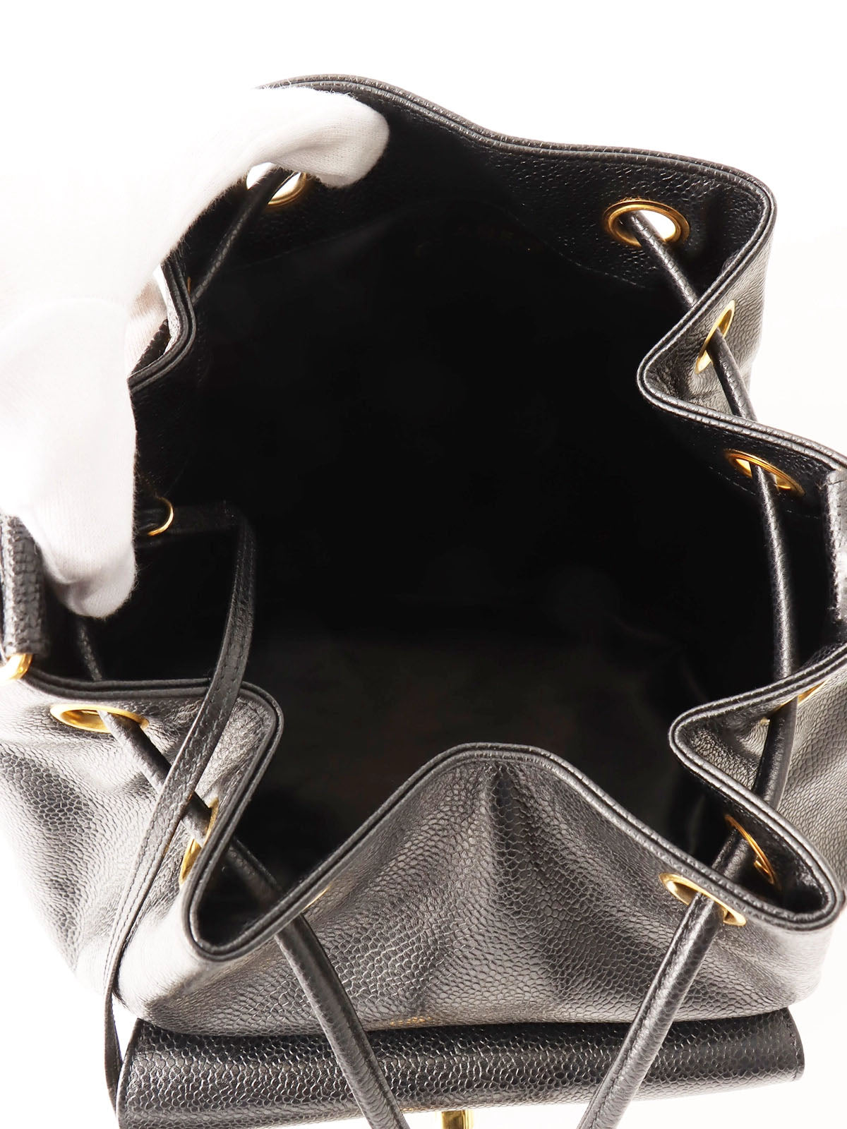 1995年頃製 キャビアスキンCCターンロックプレートポーチ付き巾着ショルダーバッグ ブラック