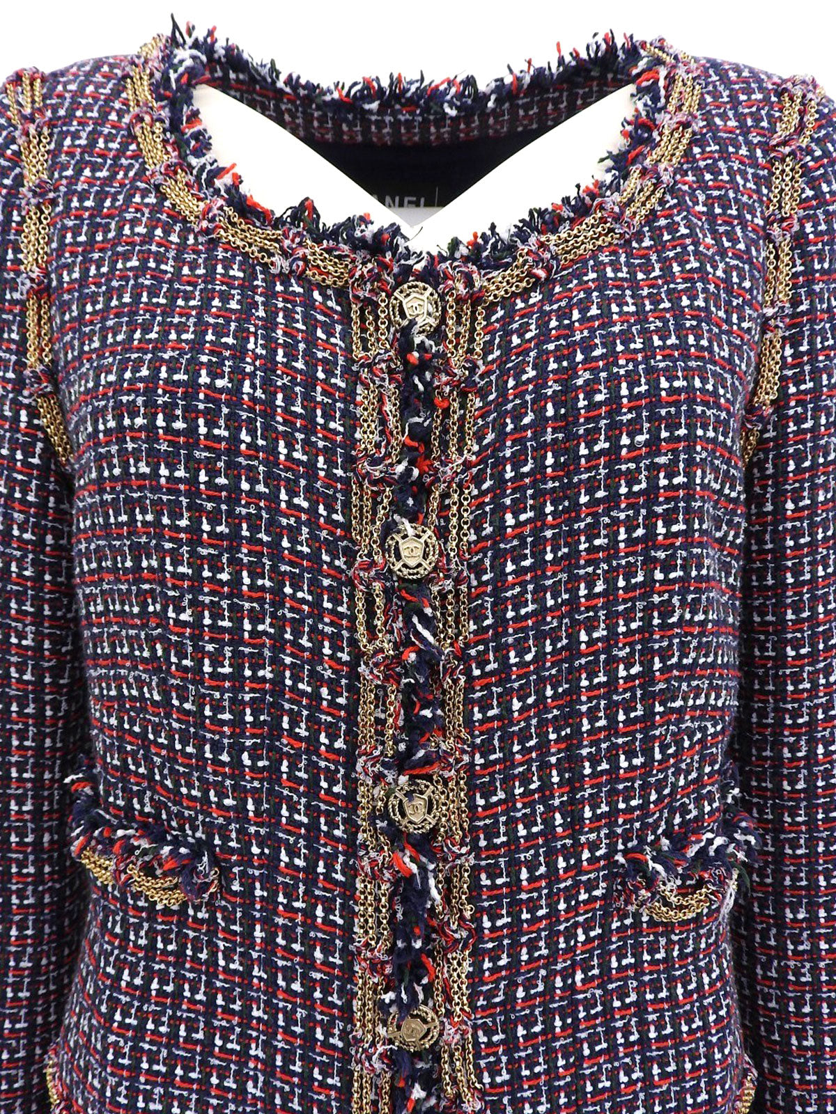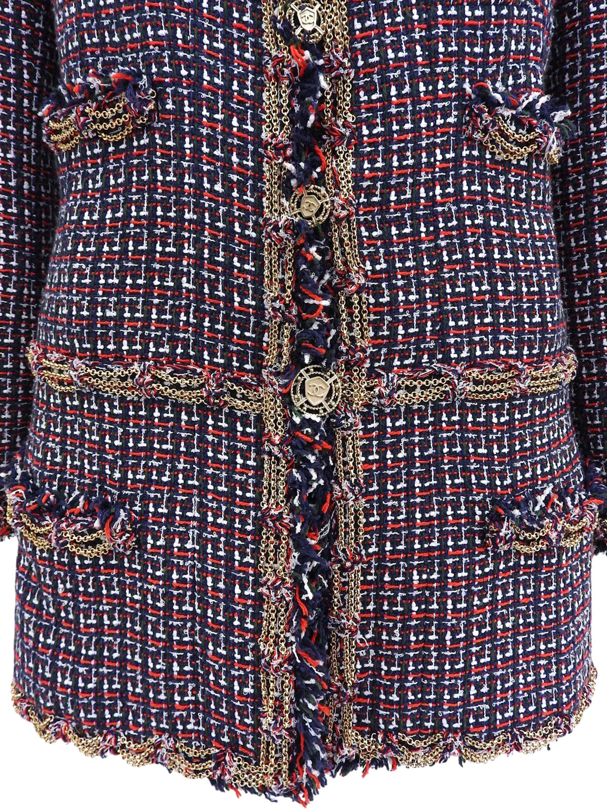 2008年製 ツイードCCマークボタンジャケット グリーン/レッド/マルチ