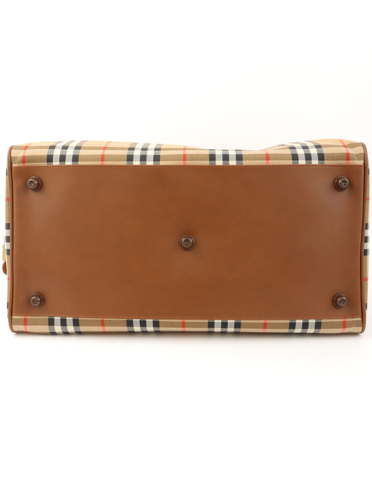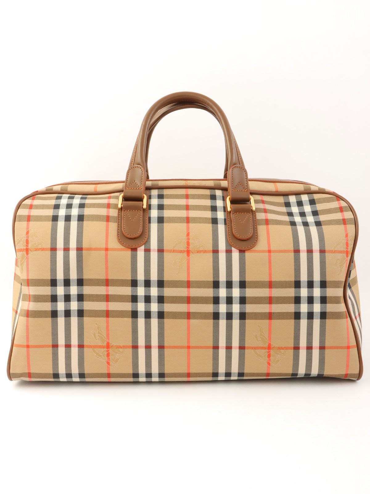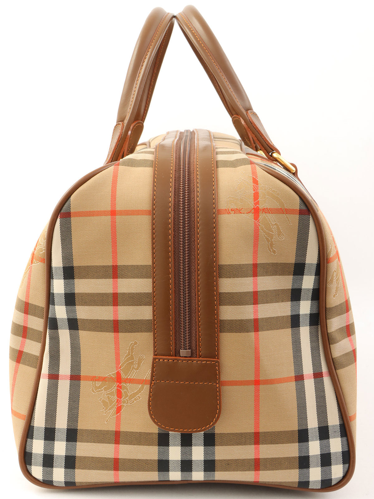 ノバチェックパターンロゴエンボスボストンバッグ ブラウン/マルチ