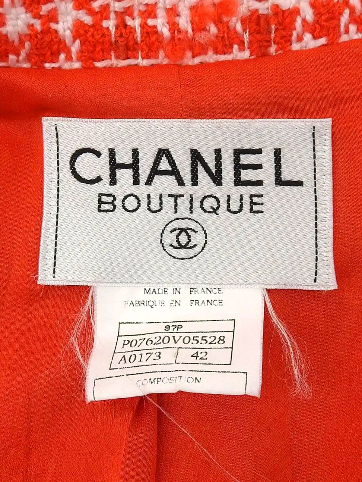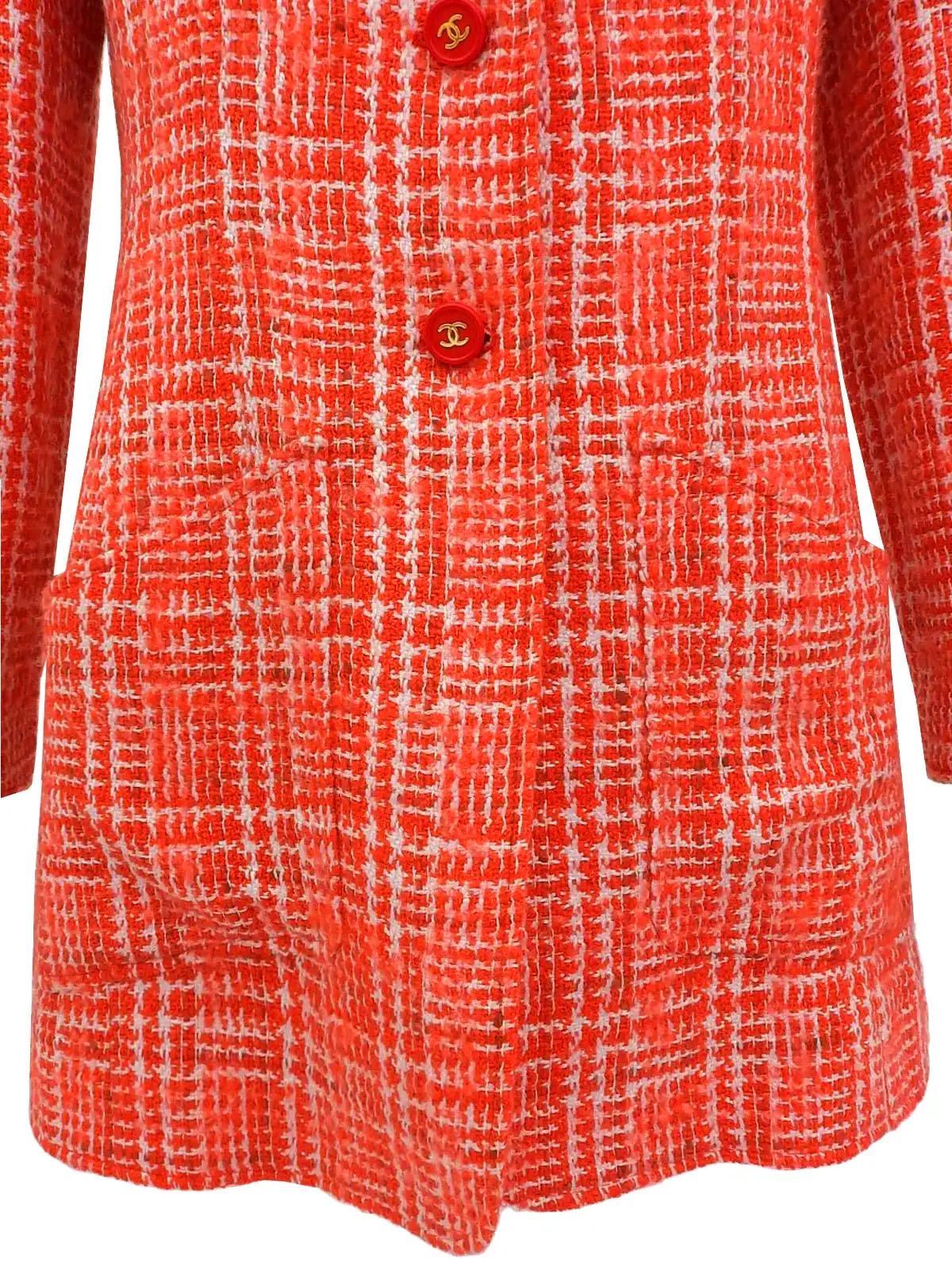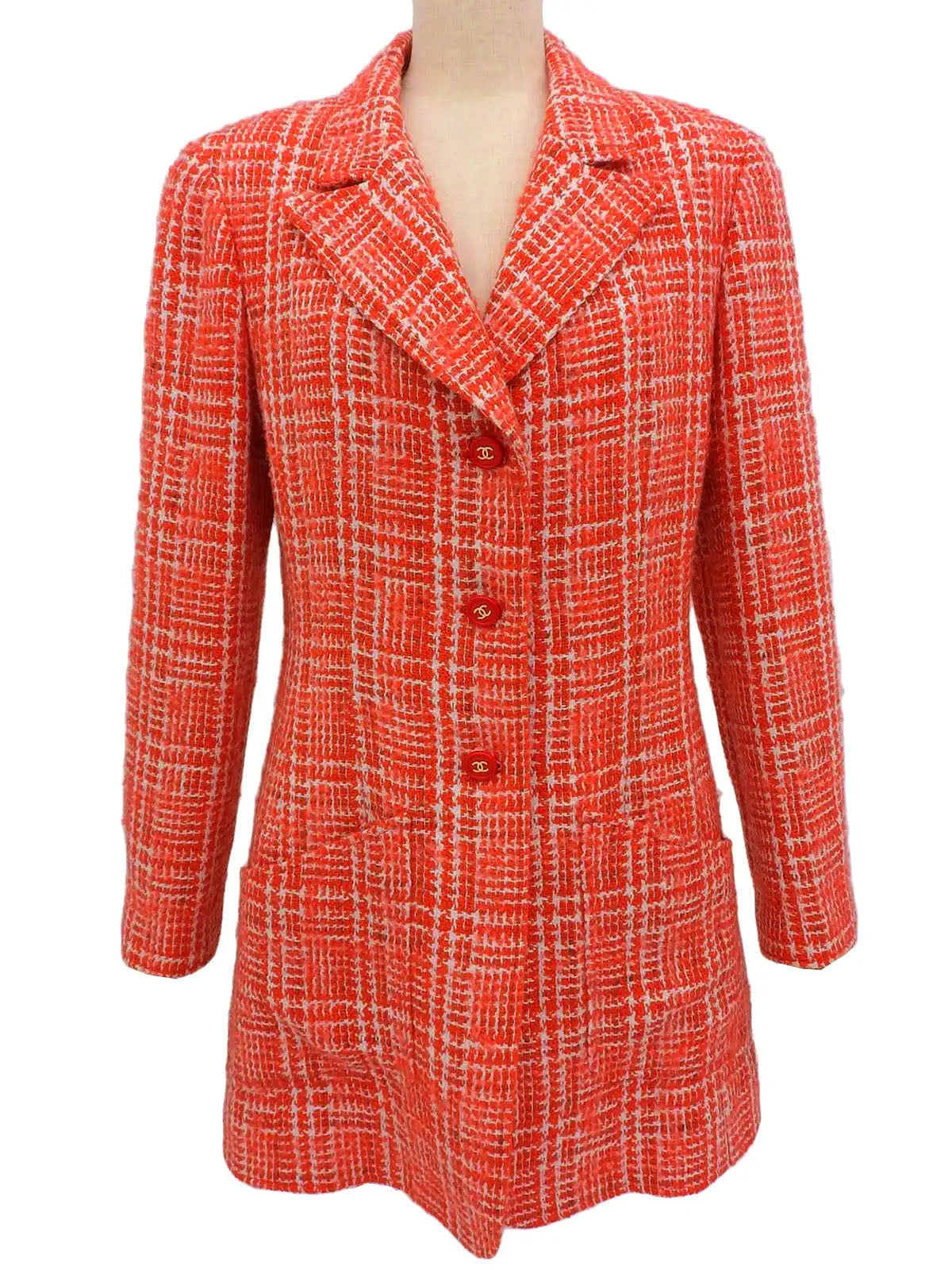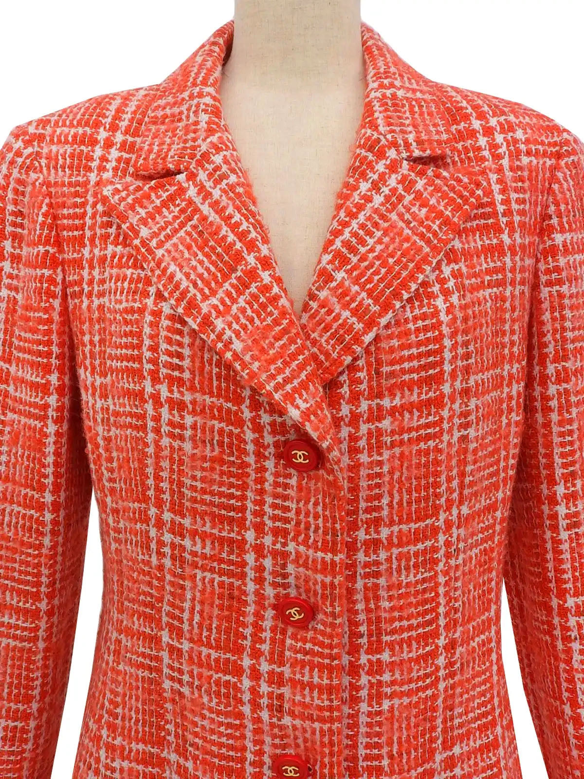 1997年製 ツイードCCマークボタンロングジャケット レッド/ホワイト
