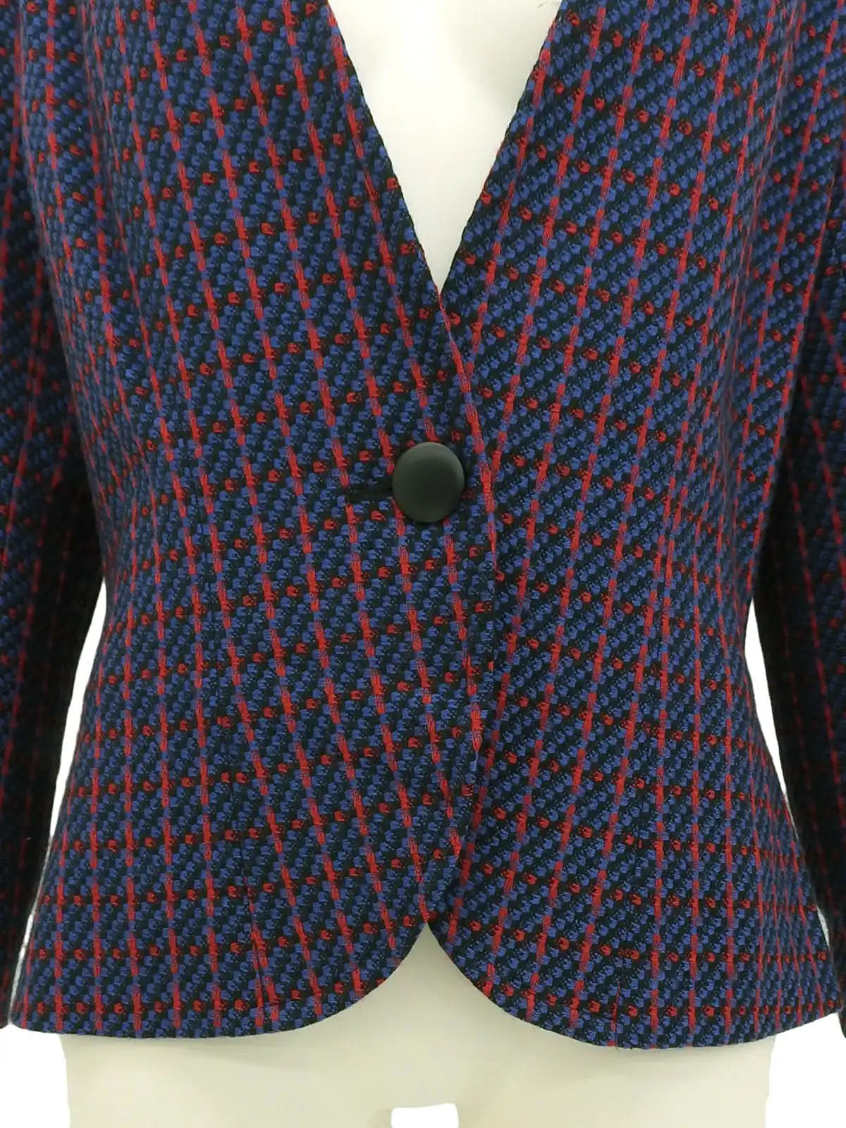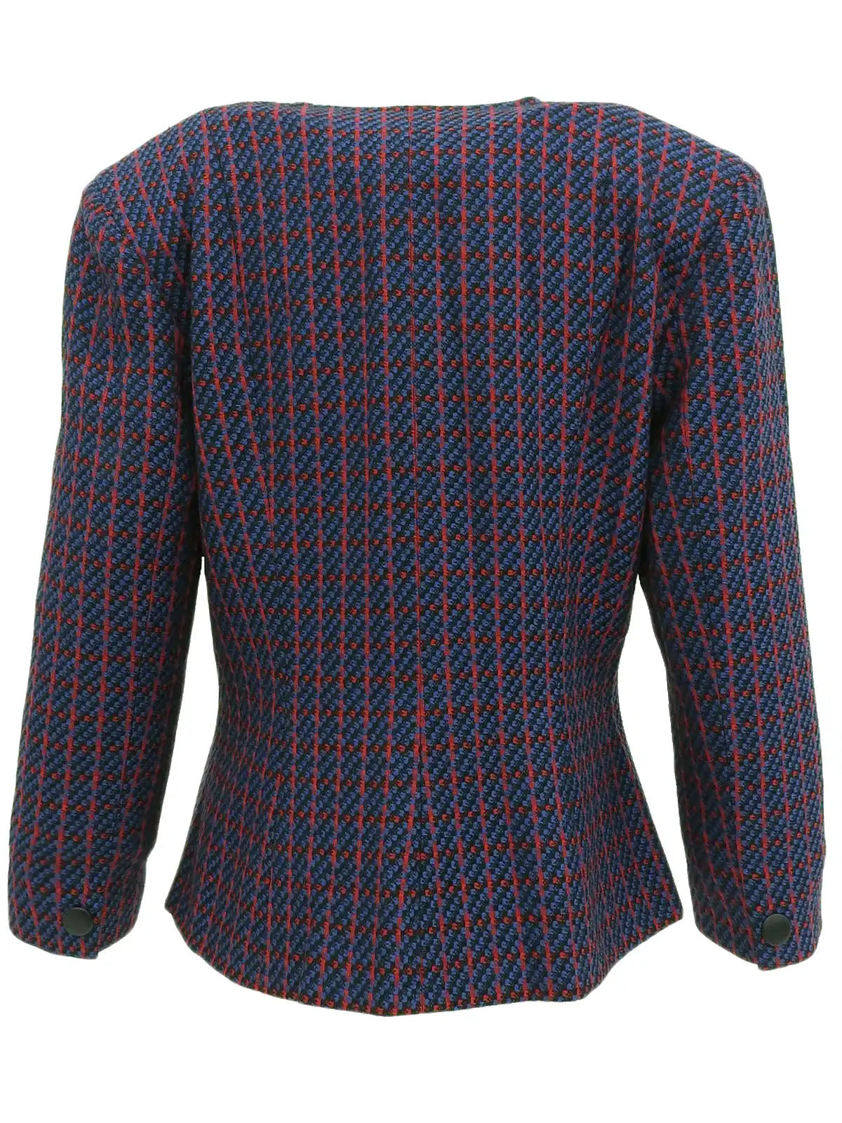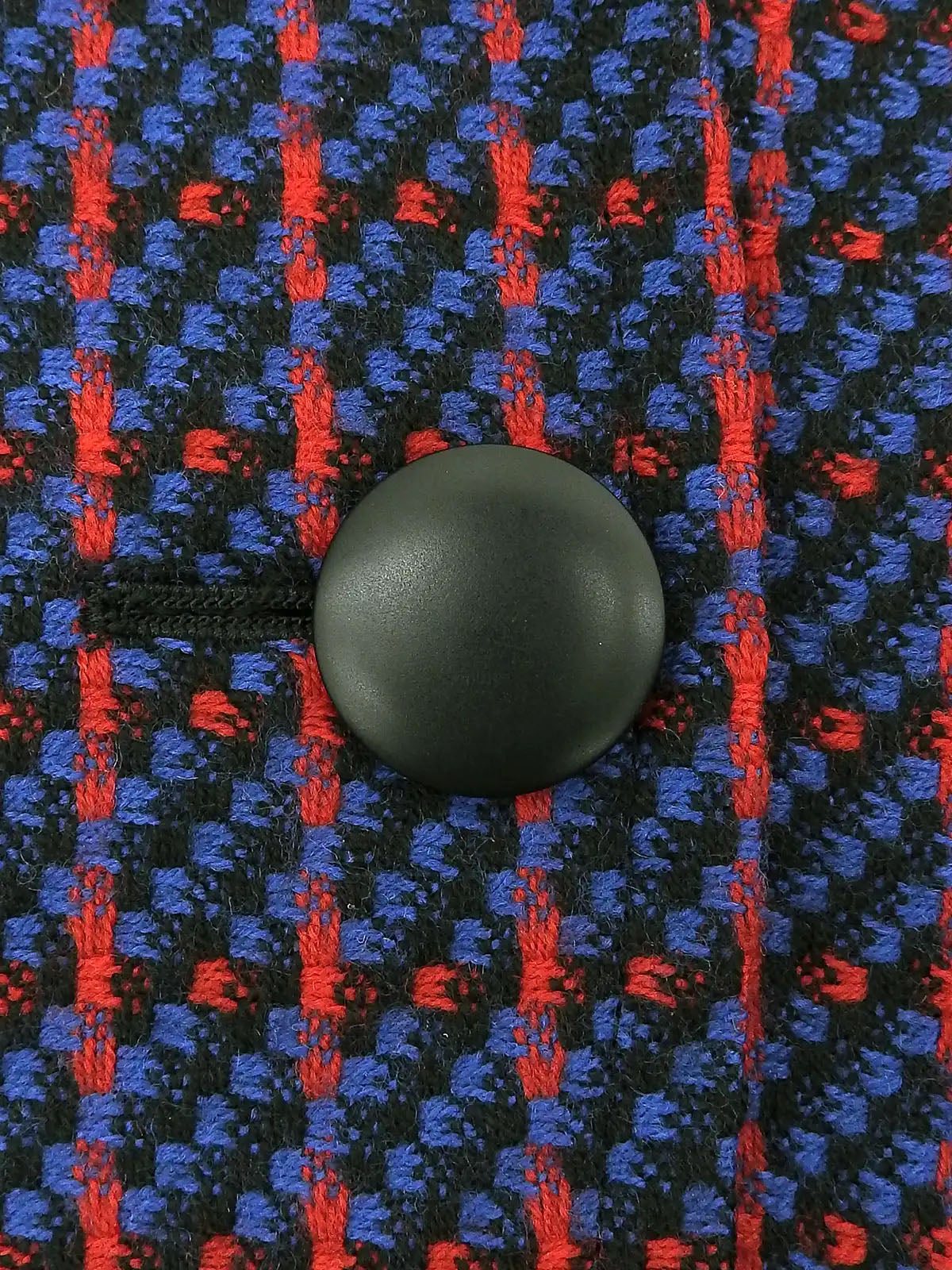 ウールチェックパターンノーカラージャケット ブルー/レッド/マルチ