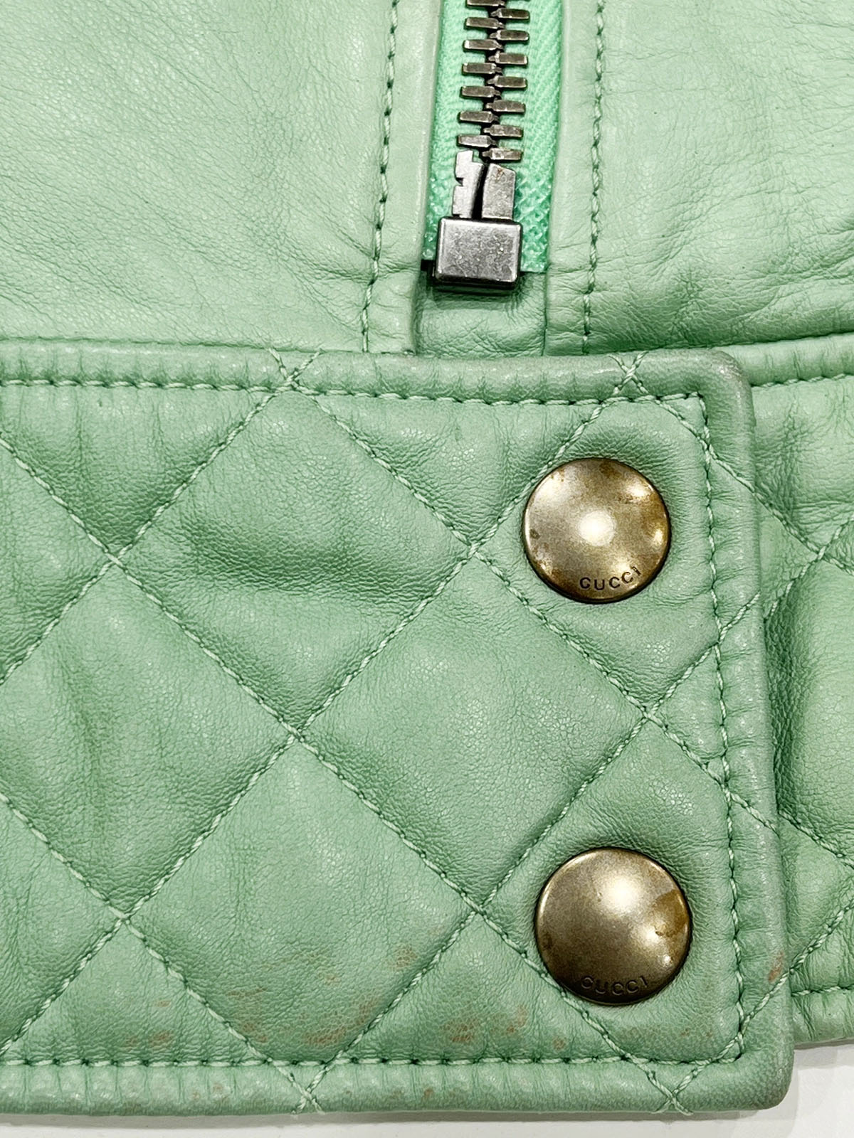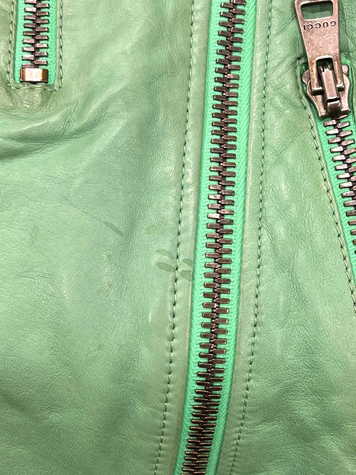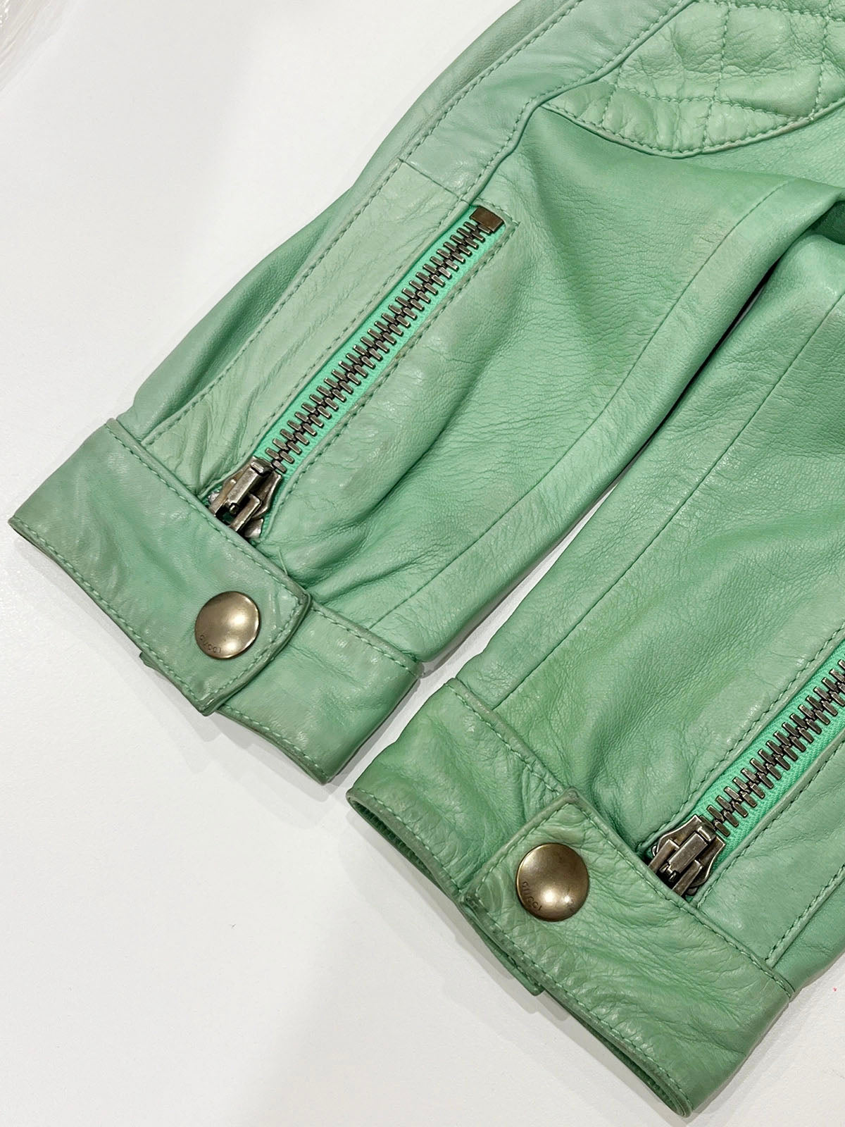 リアルレザーロゴジップアップジャケット ライトグリーン