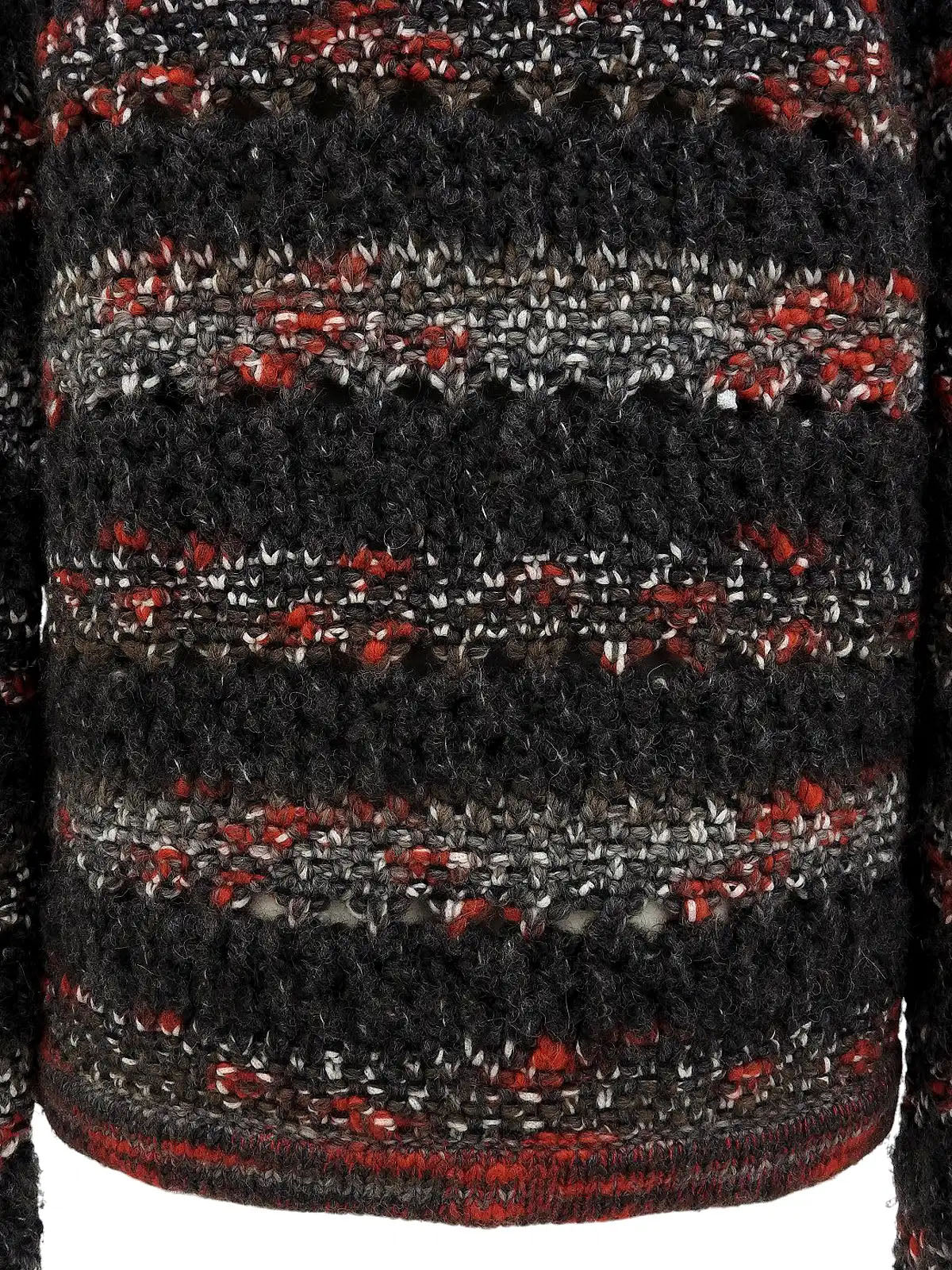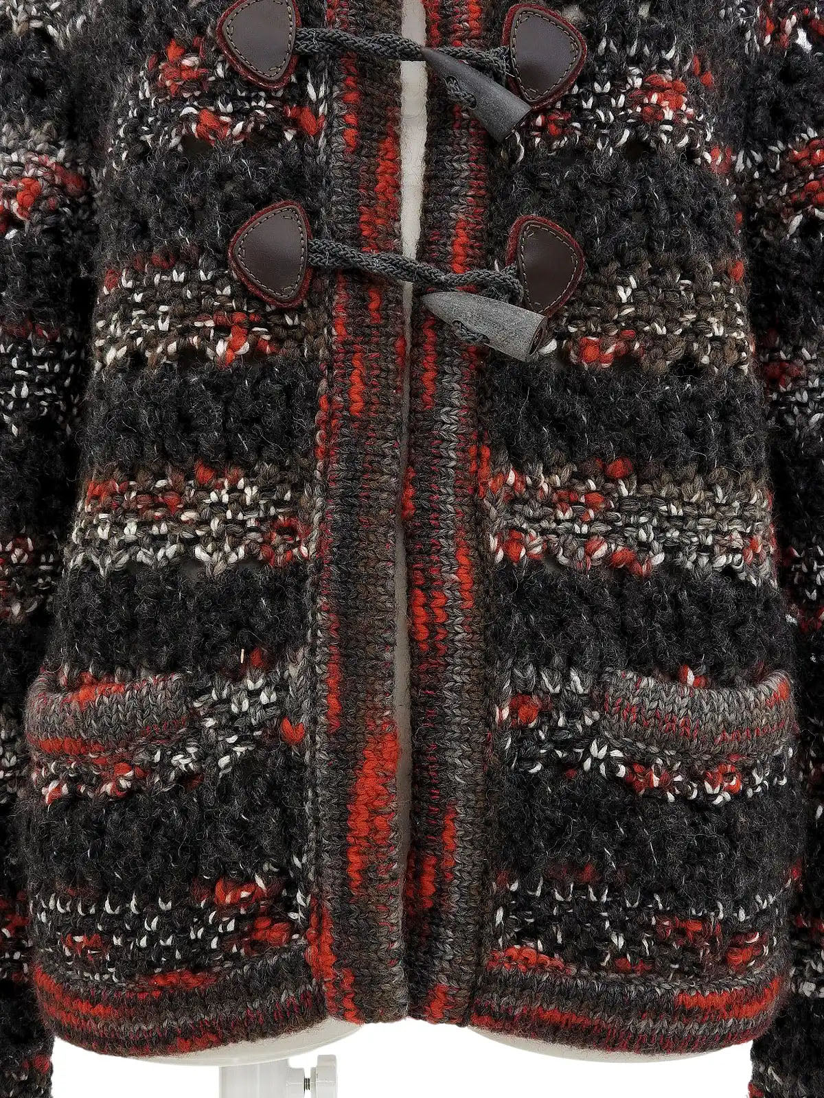 ウールCCマークトグルボタンローゲージニットジャケット グレー/レッド/マルチ