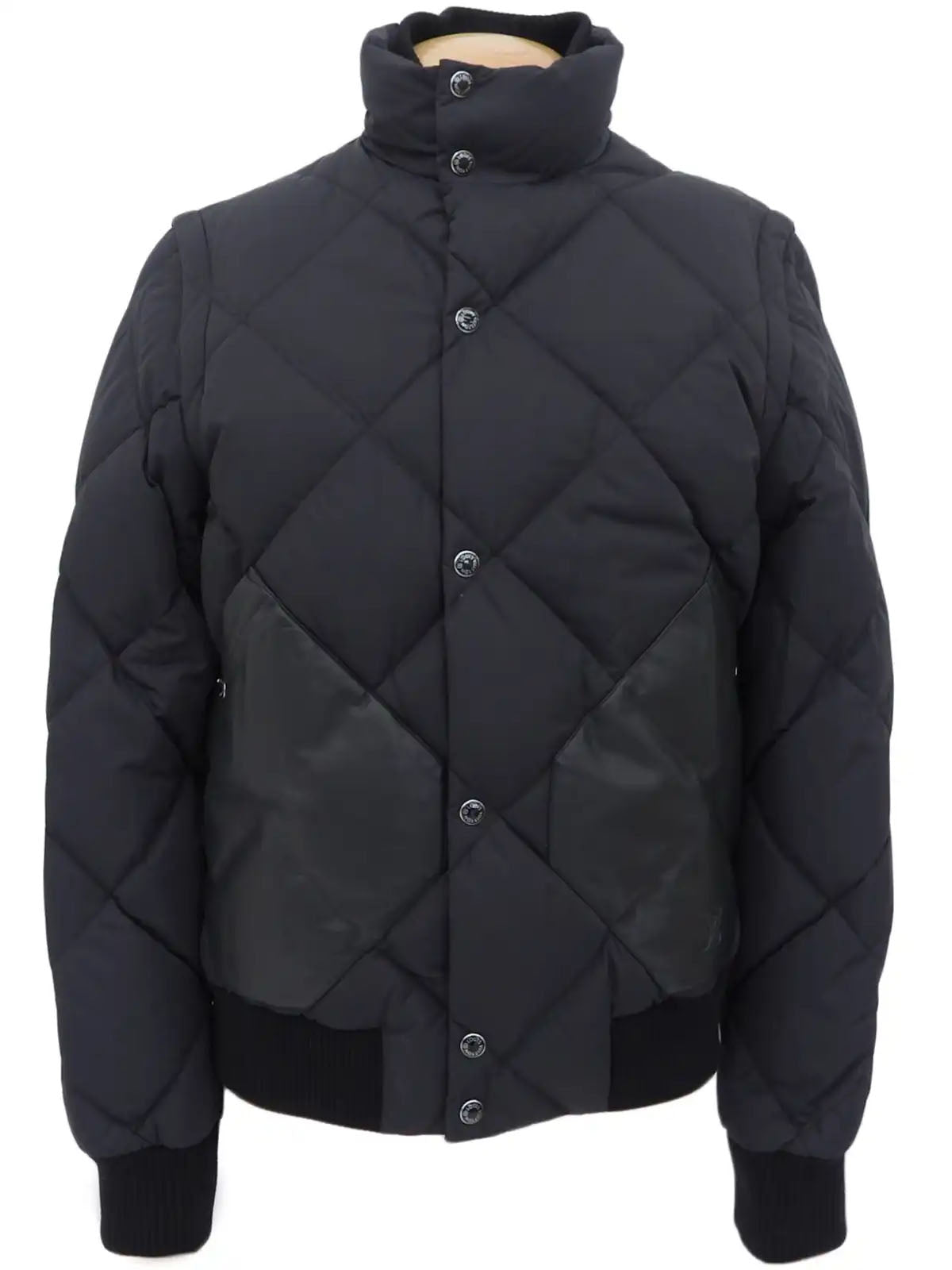 ナイロンレザーコンビロゴボタン2wayダウンジャケット ブラック