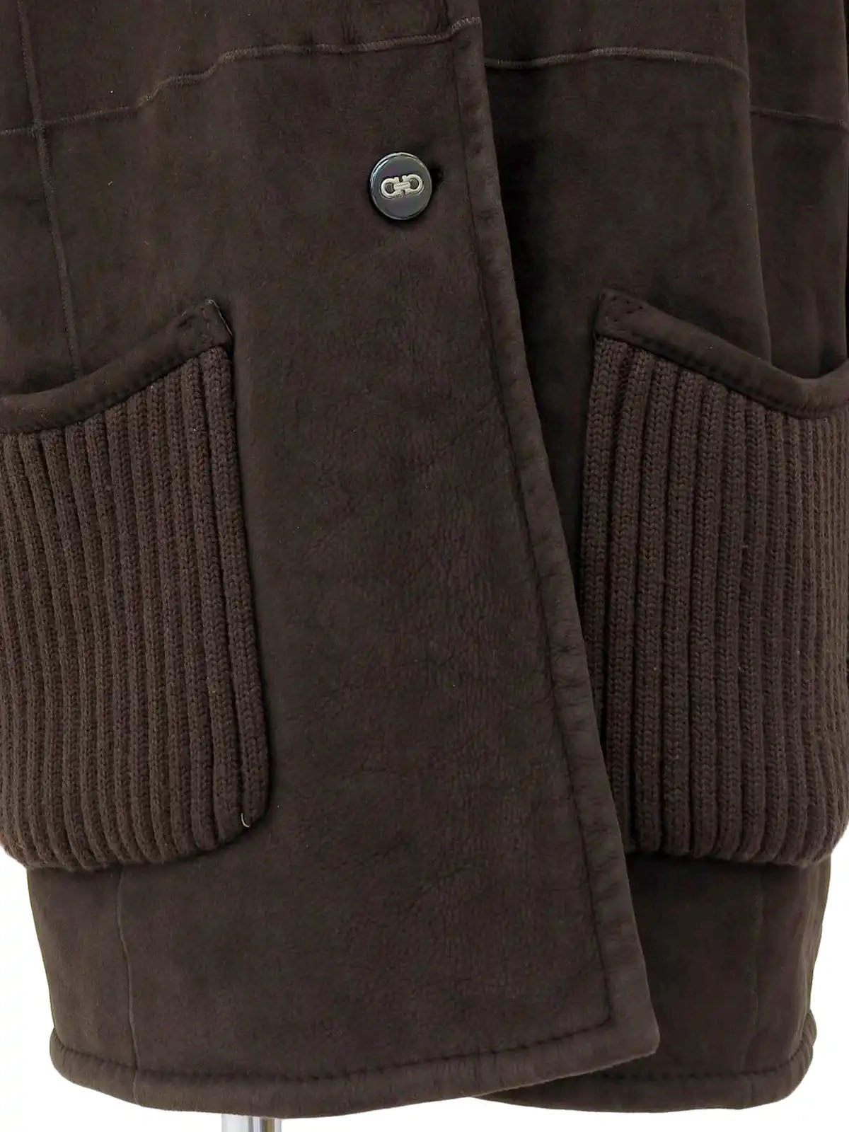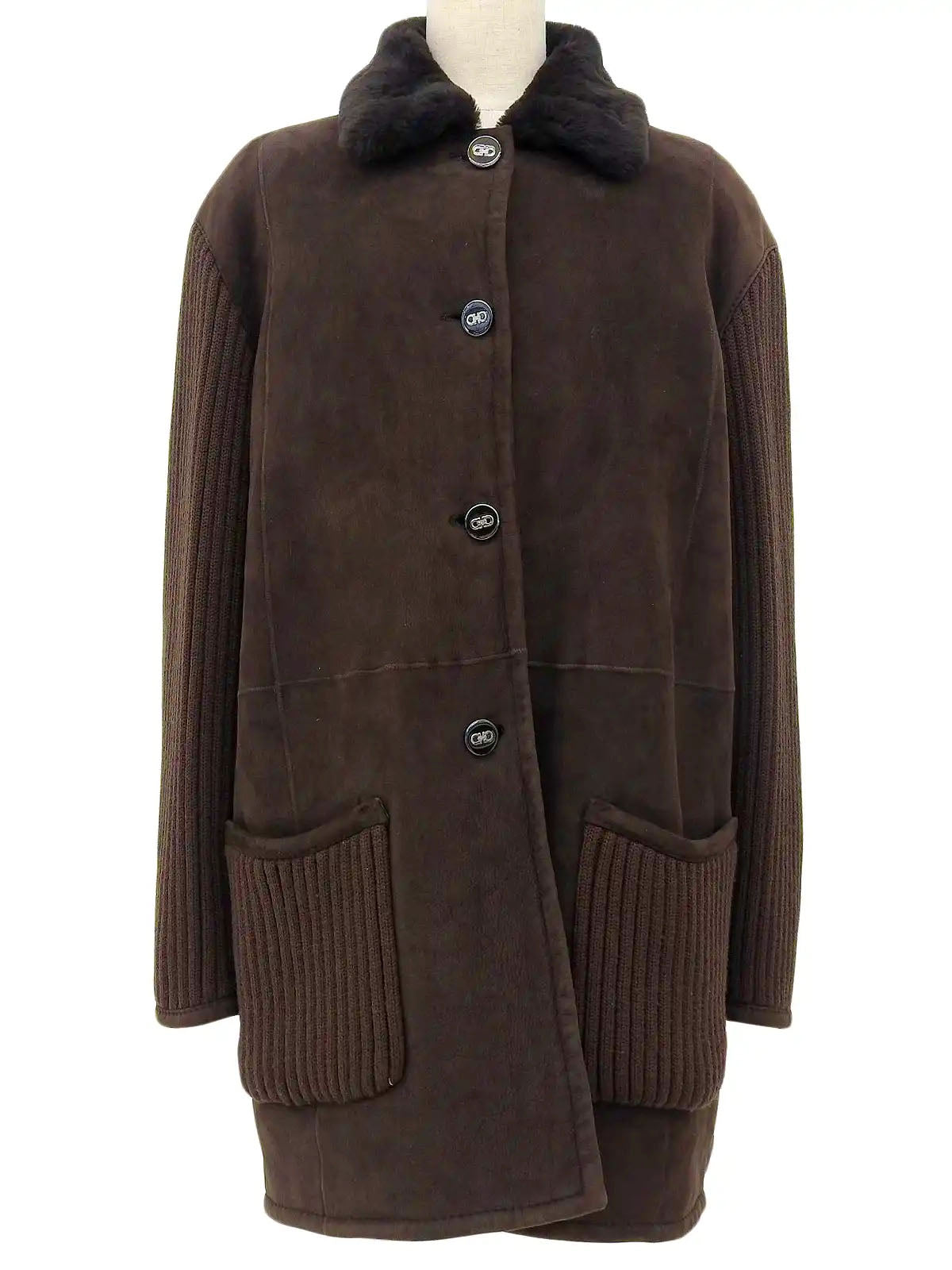 ウールムートンコンビガンチーニボタンコート ダークブラウン