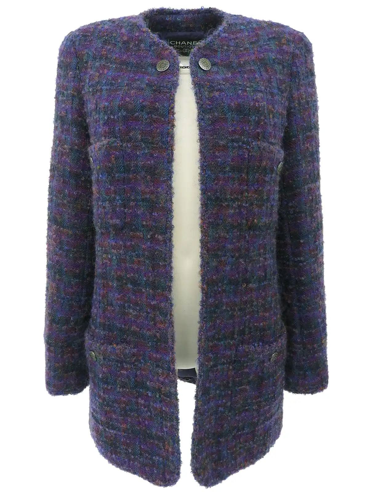 1997年製 CCマークボタンツイードジャケット パープル/マルチ