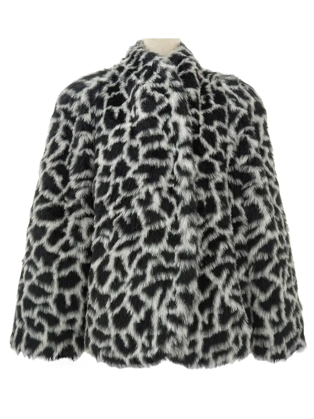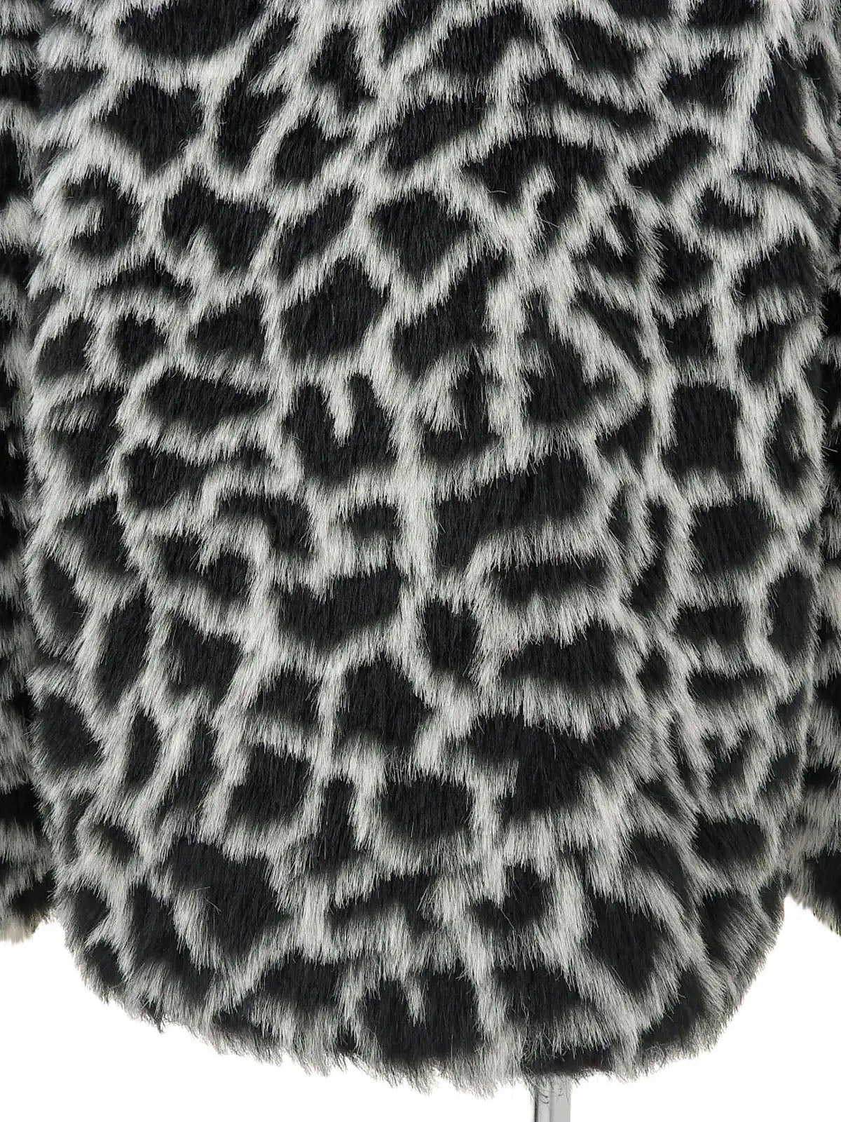 レオパードパターンフェイクファーコート ホワイト/ブラック