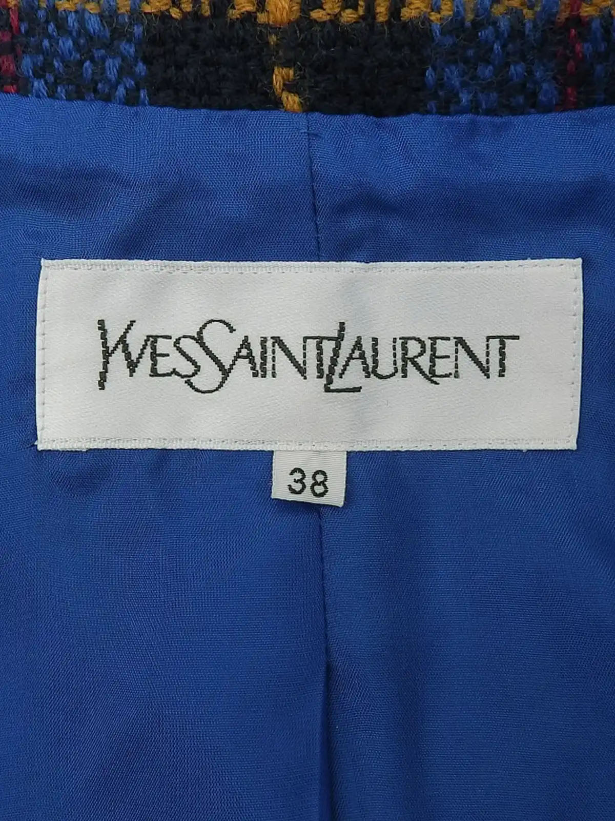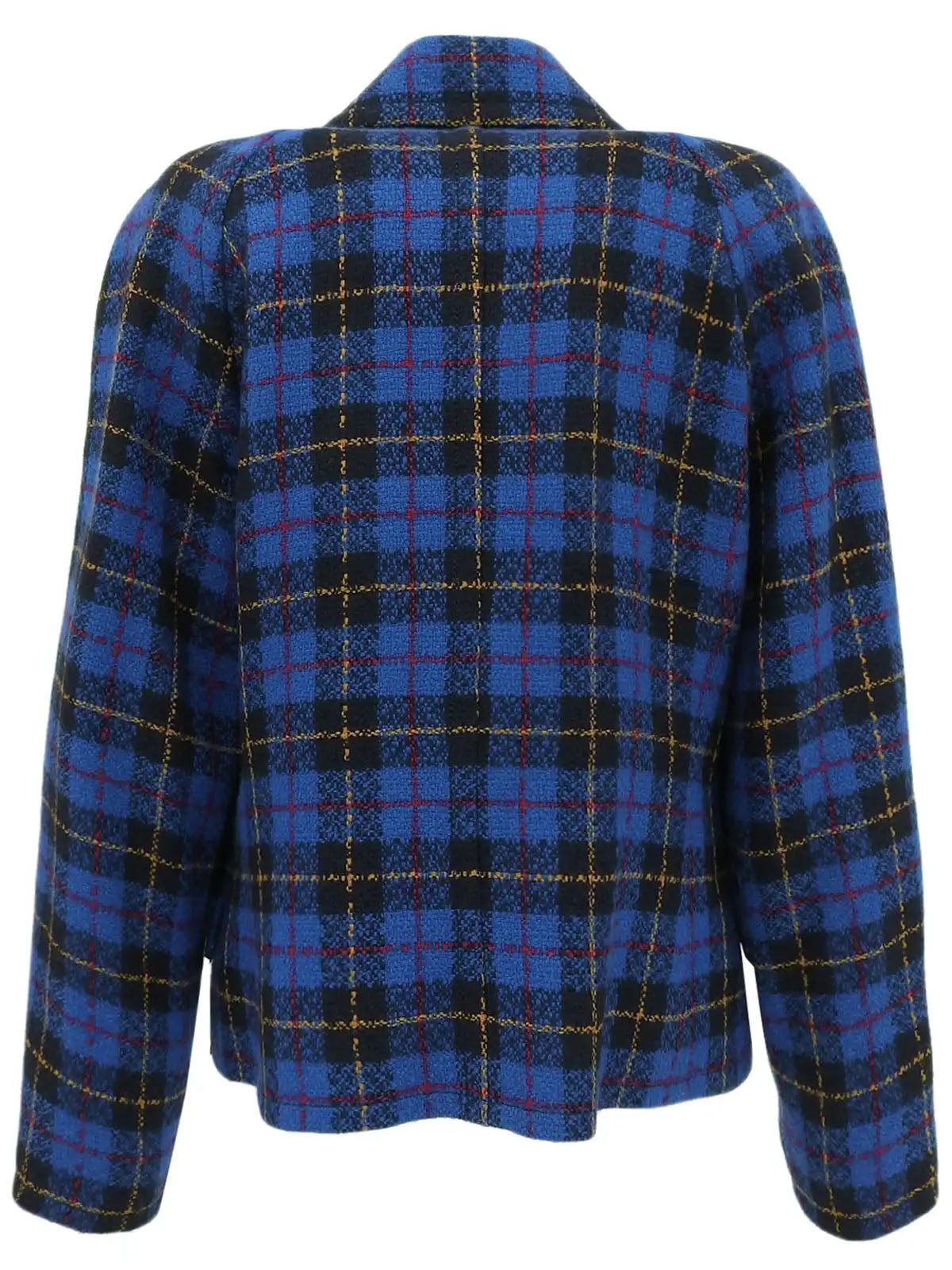 ツイードチェックパターンロゴボタンダブルブレストジャケット ブルー/ブラック/マルチ
