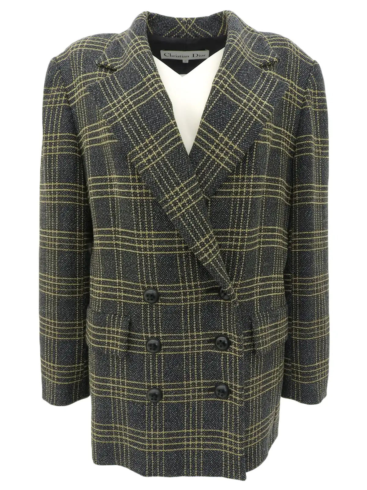 ウールチェックパターンダブルブレストジャケット グレー/イエロー