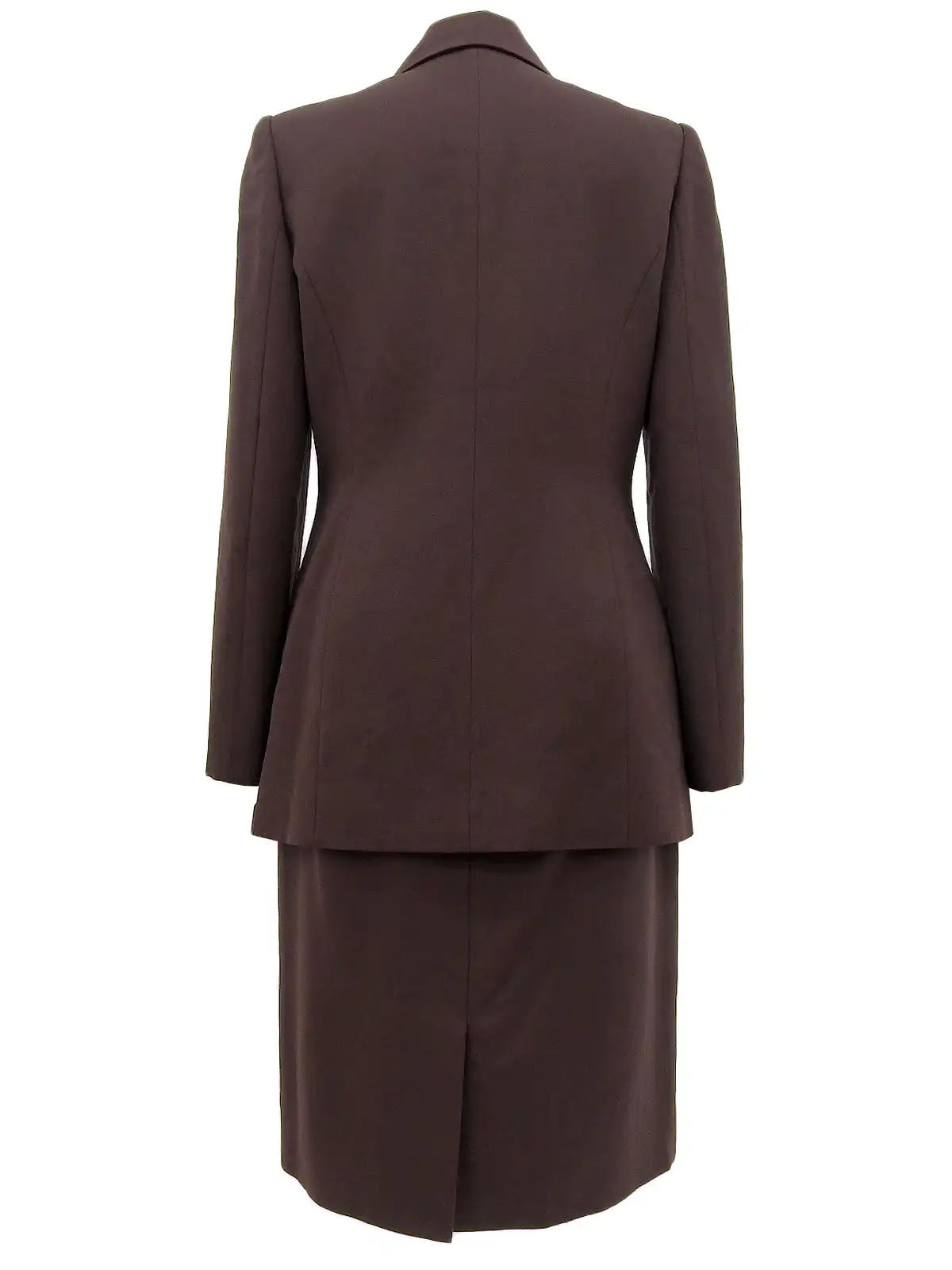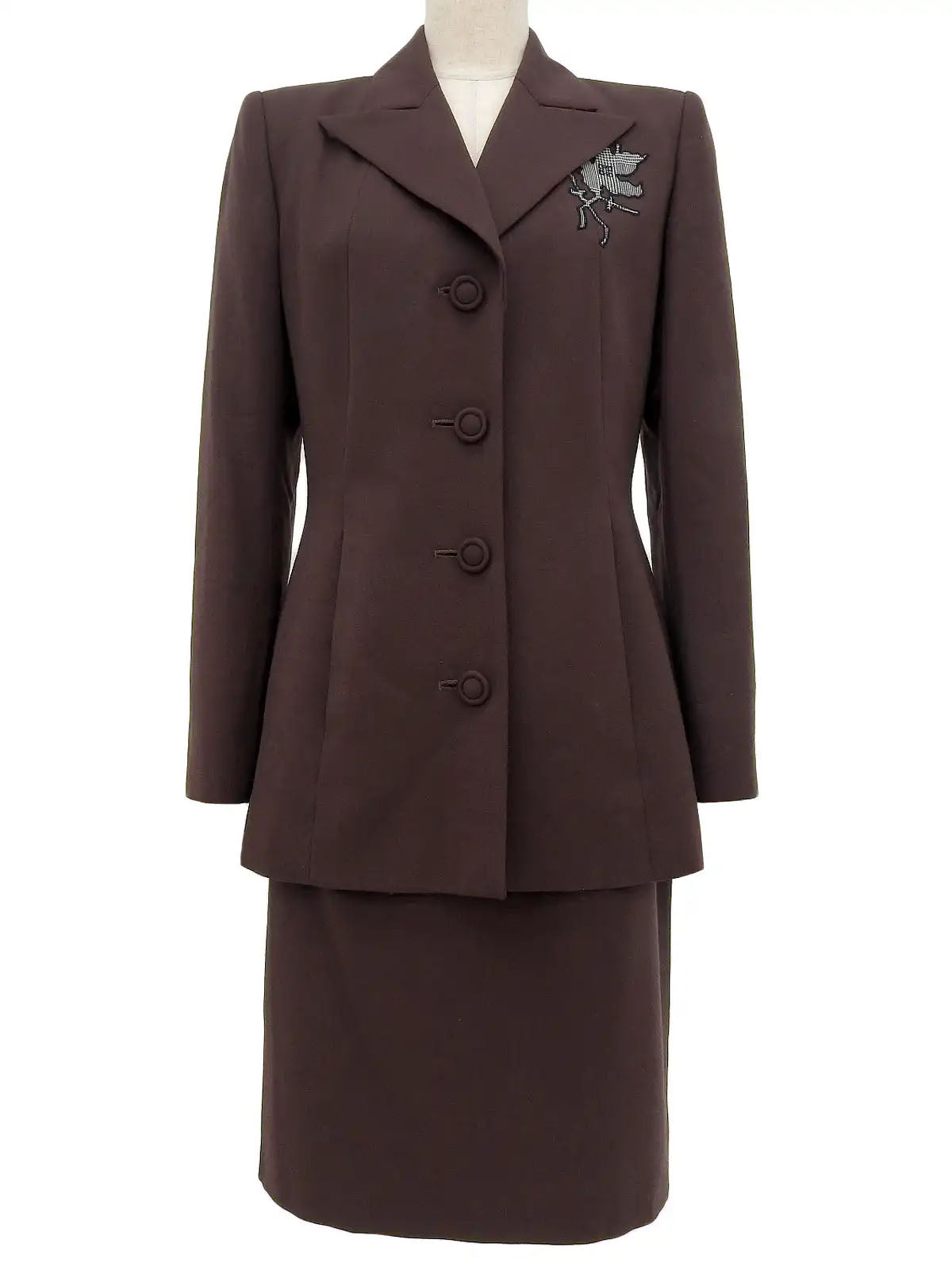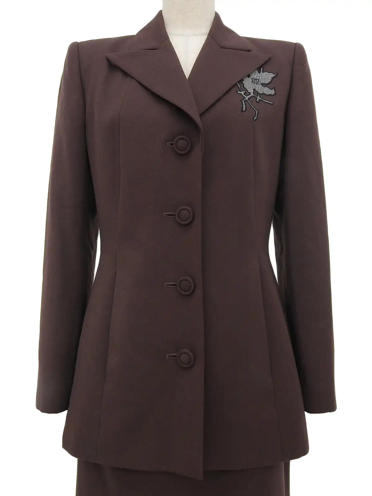 ウールデザインロゴ刺繍3ピースセットアップ ブラウン