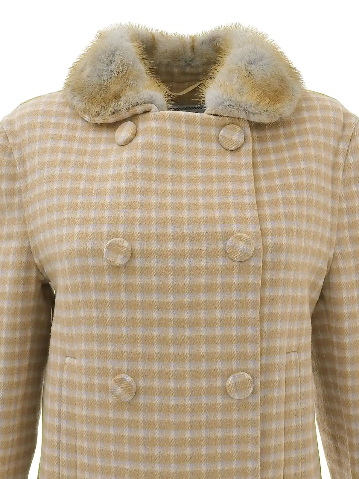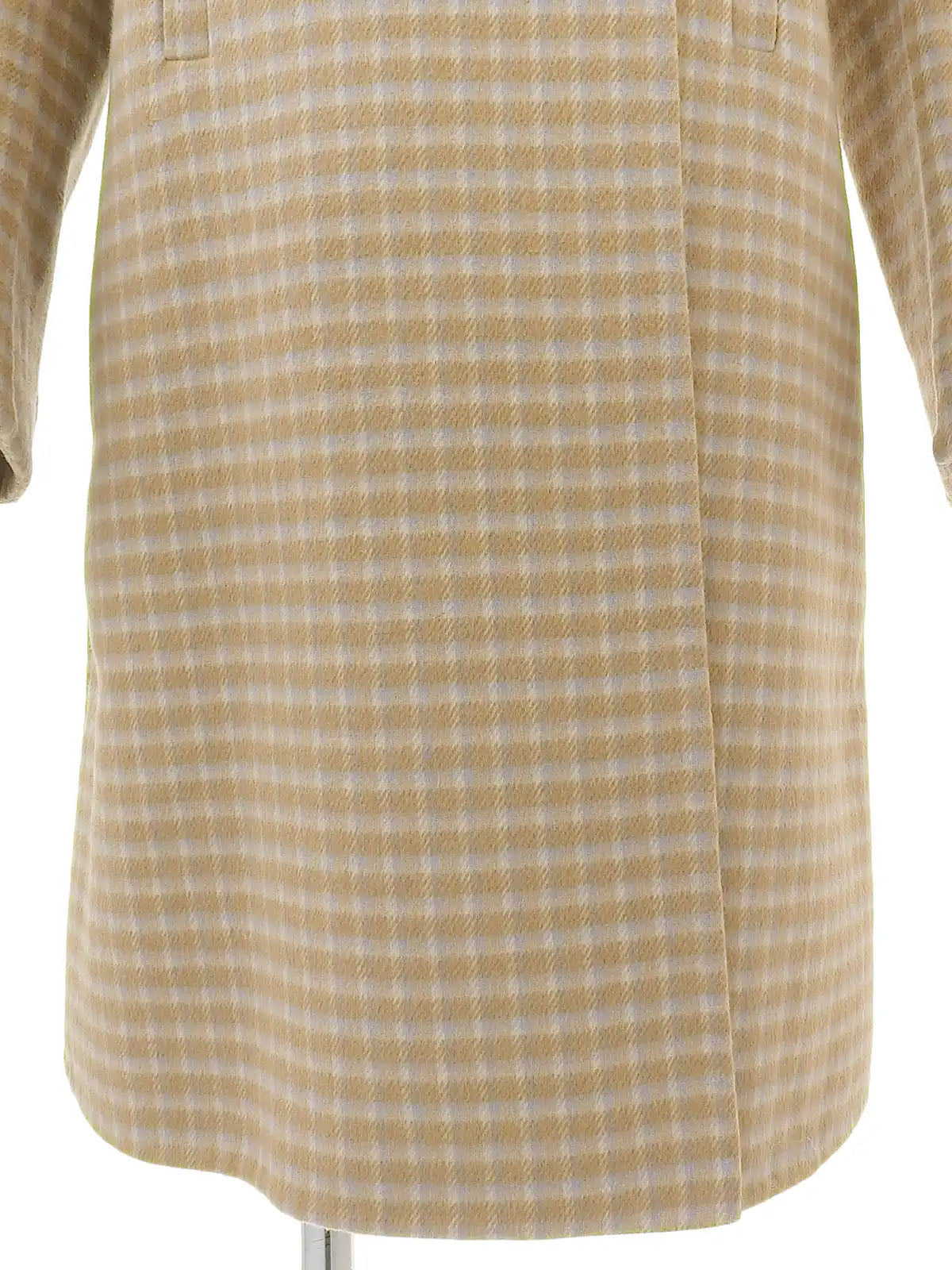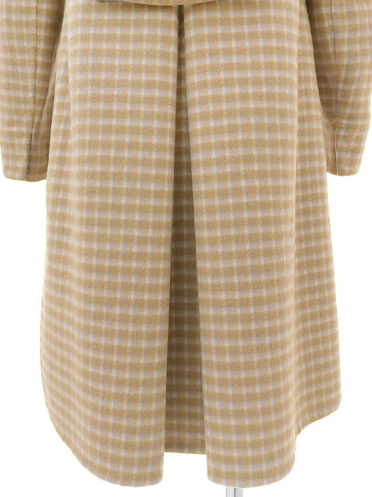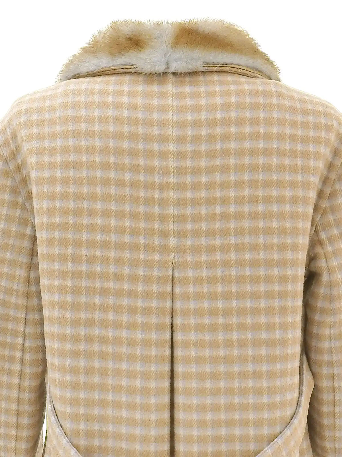 ギンガムチェックパターンミンクカラーコート ベージュ/ライトブルー