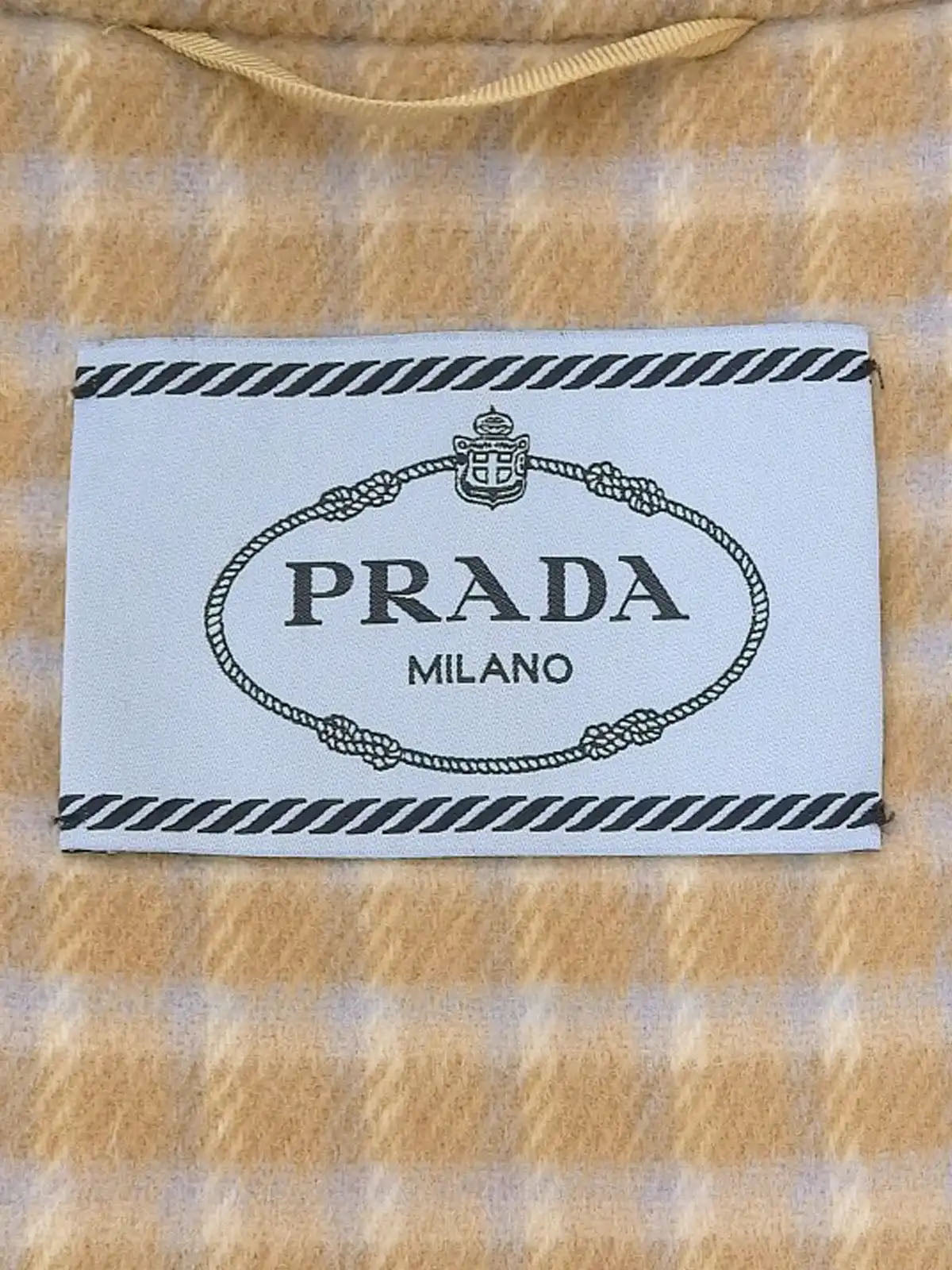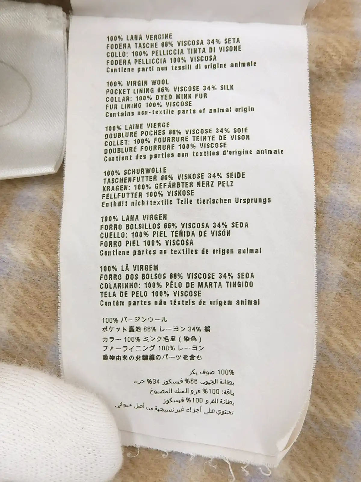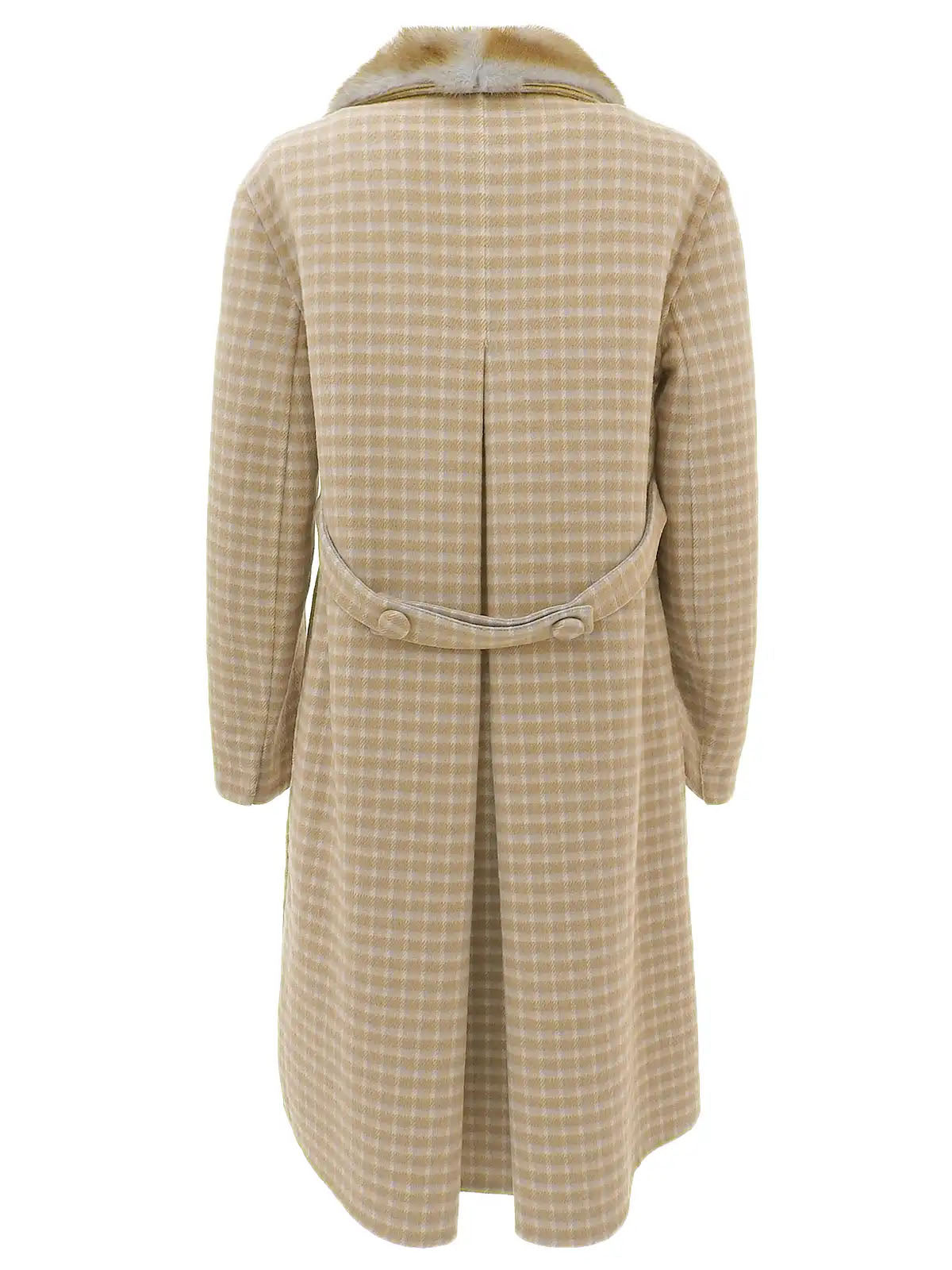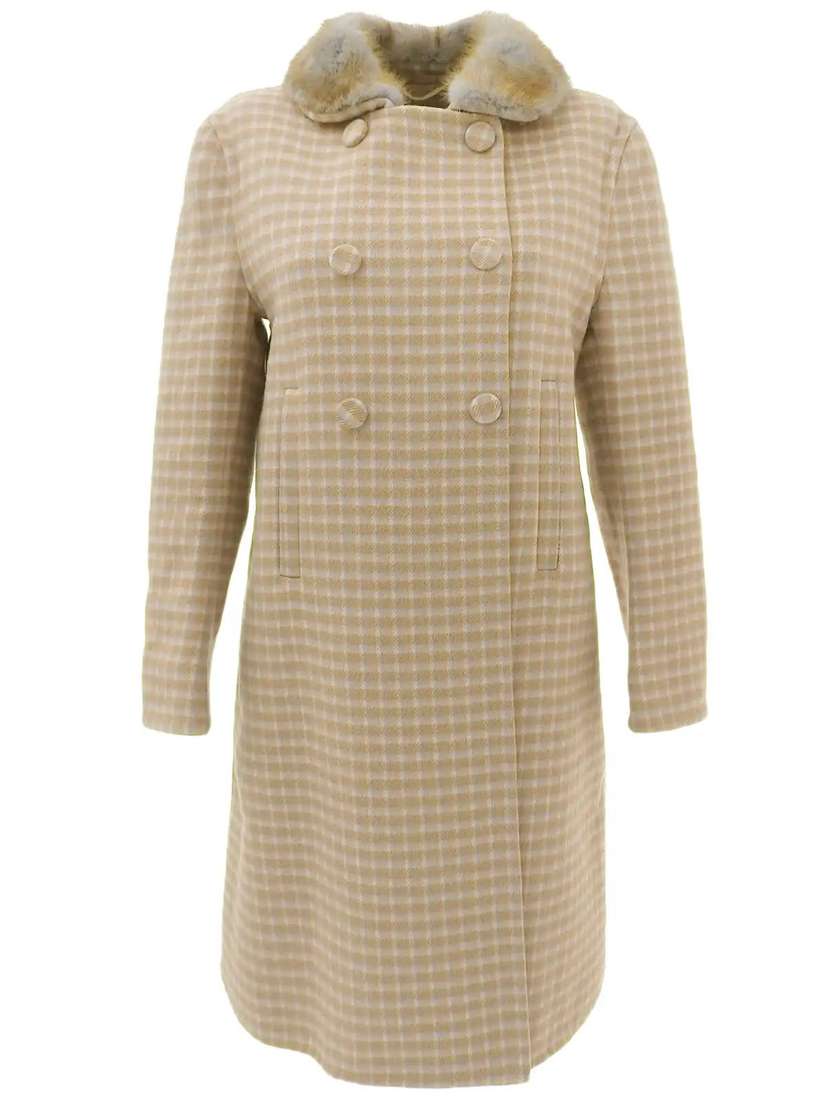 ギンガムチェックパターンミンクカラーコート ベージュ/ライトブルー