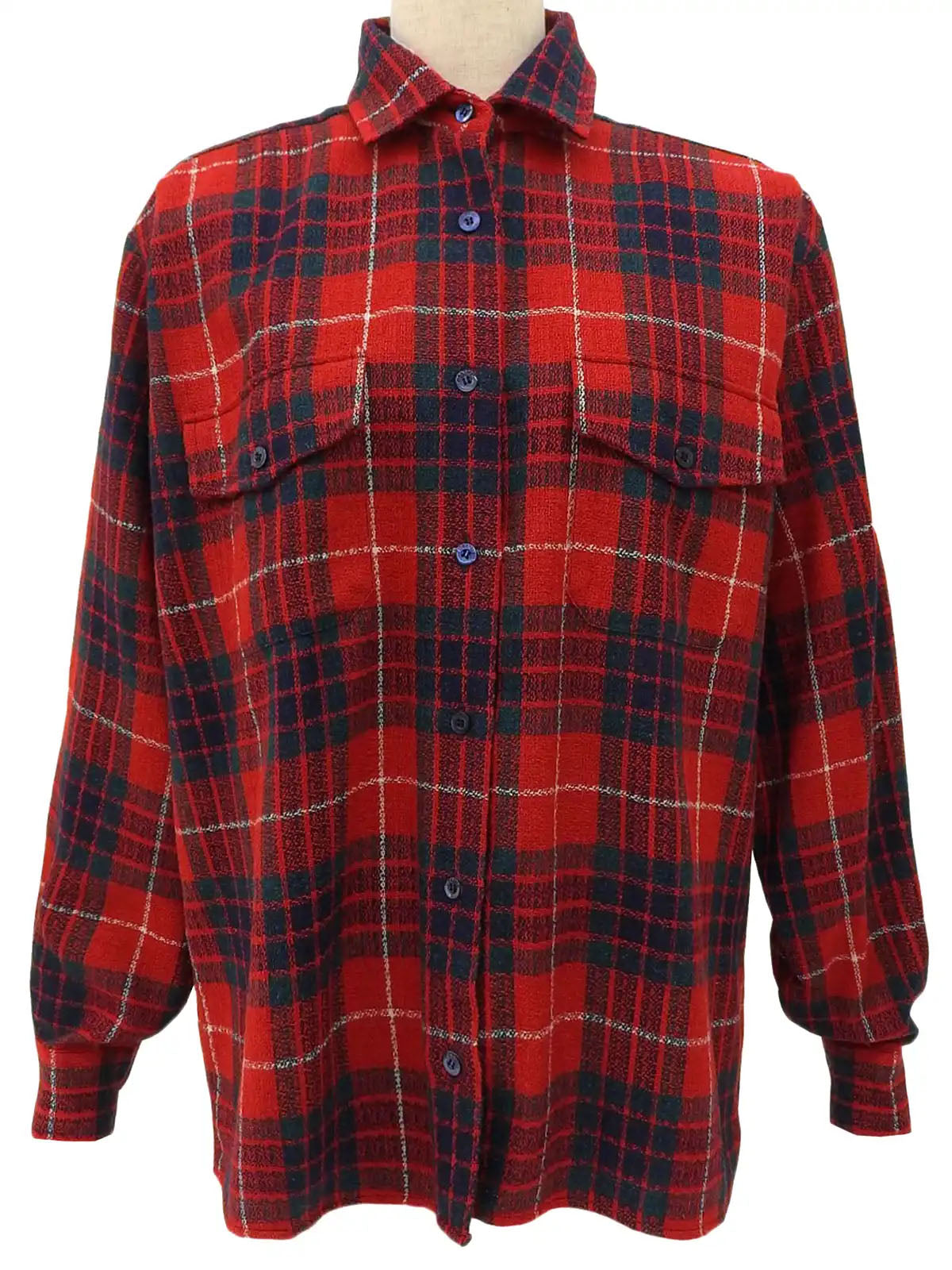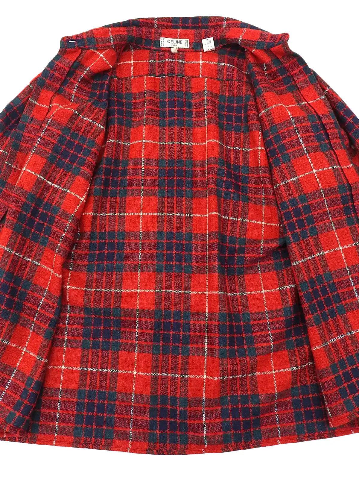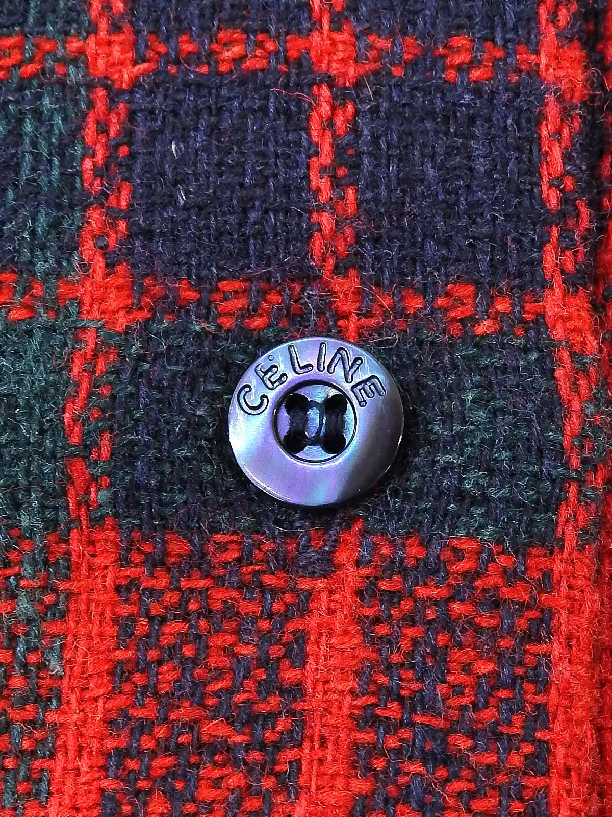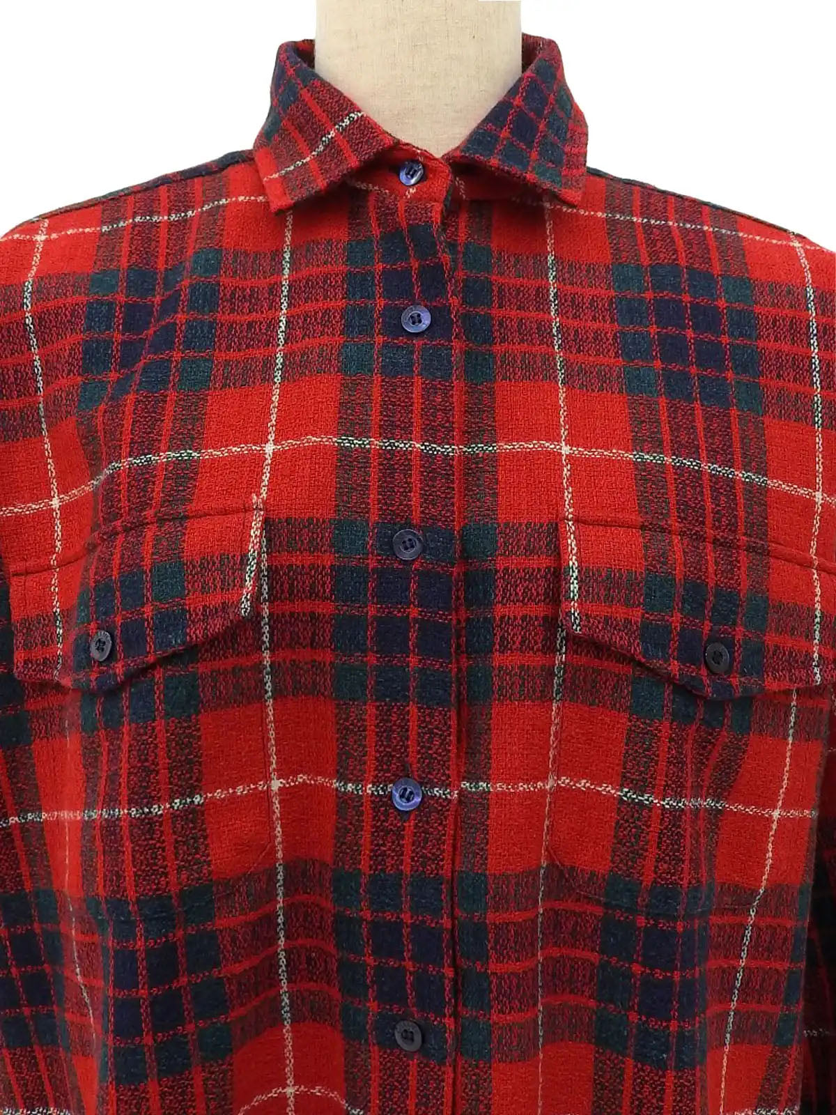 チェックパターンロゴボタンロングスリーブシャツ レッド/グリーン/ネイビー