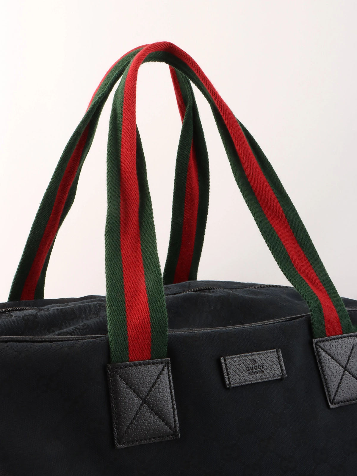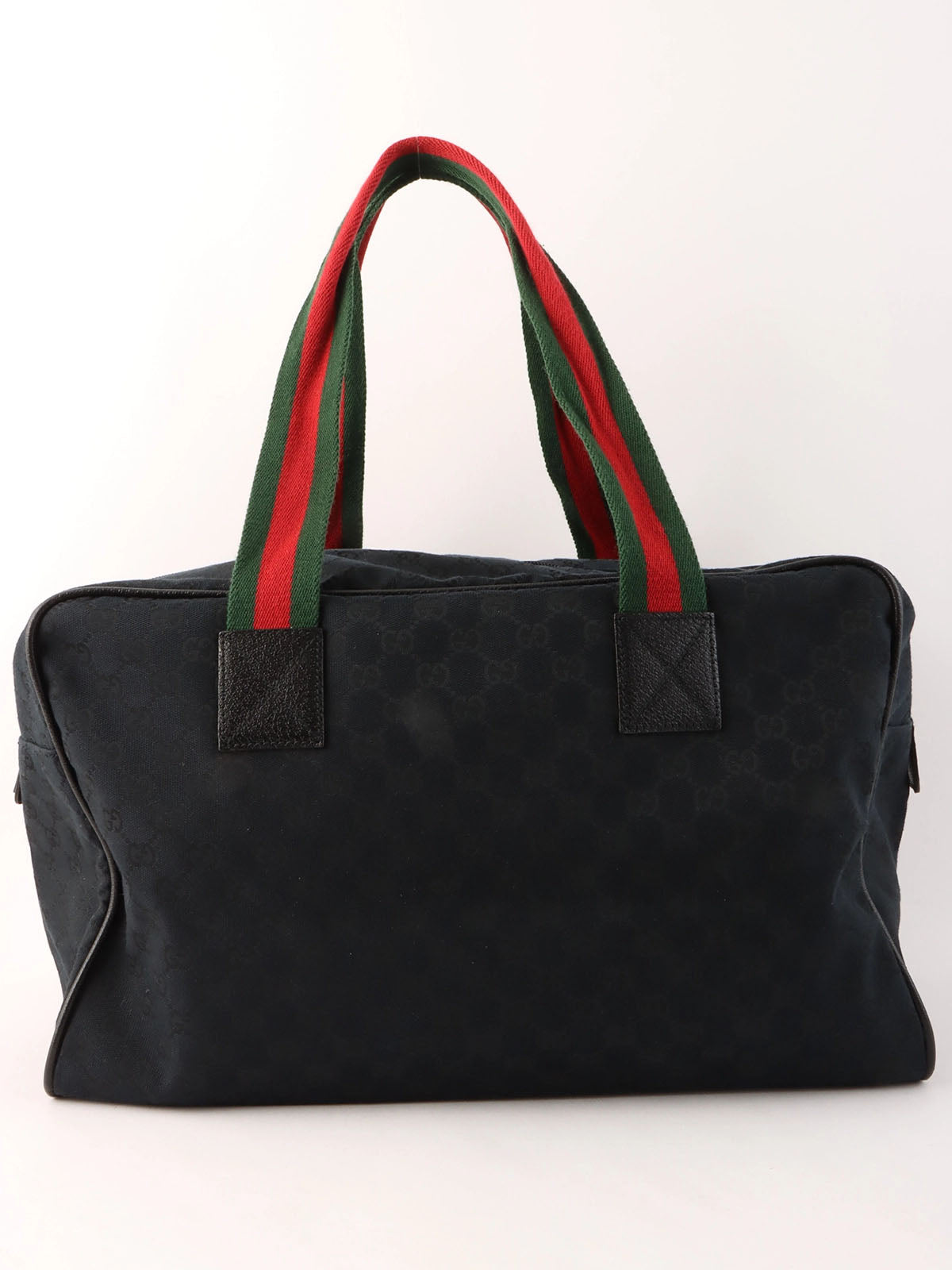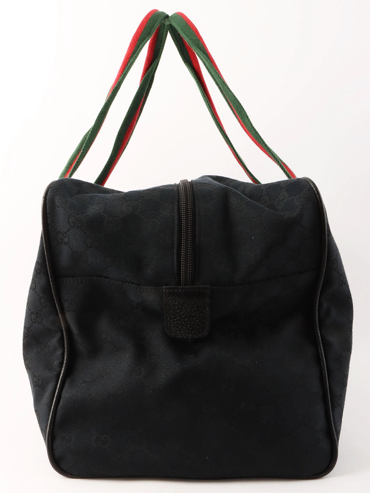 キャンバスGGパターンシェリーラインボストンバッグ ブラック/グリーン/レッド