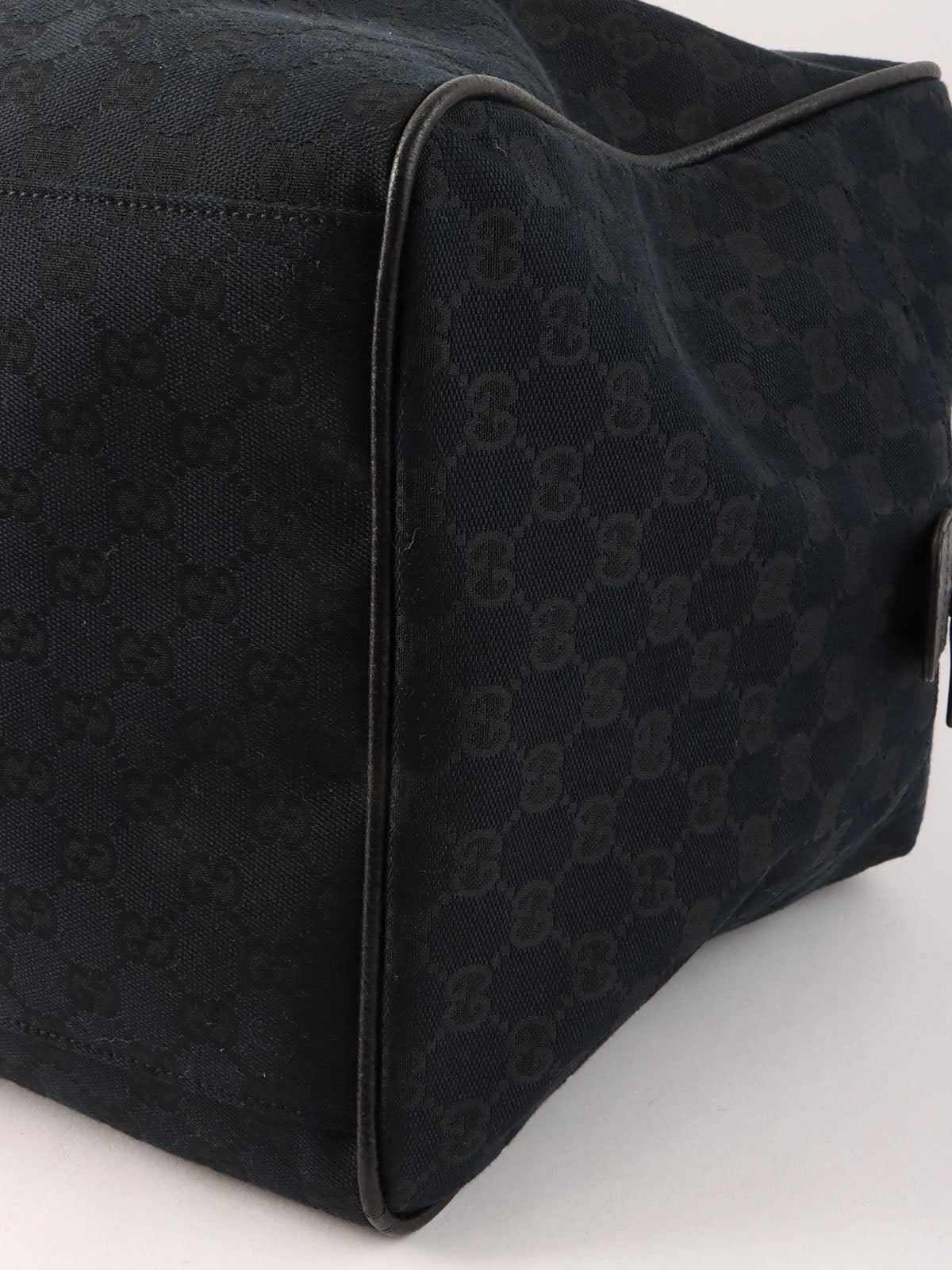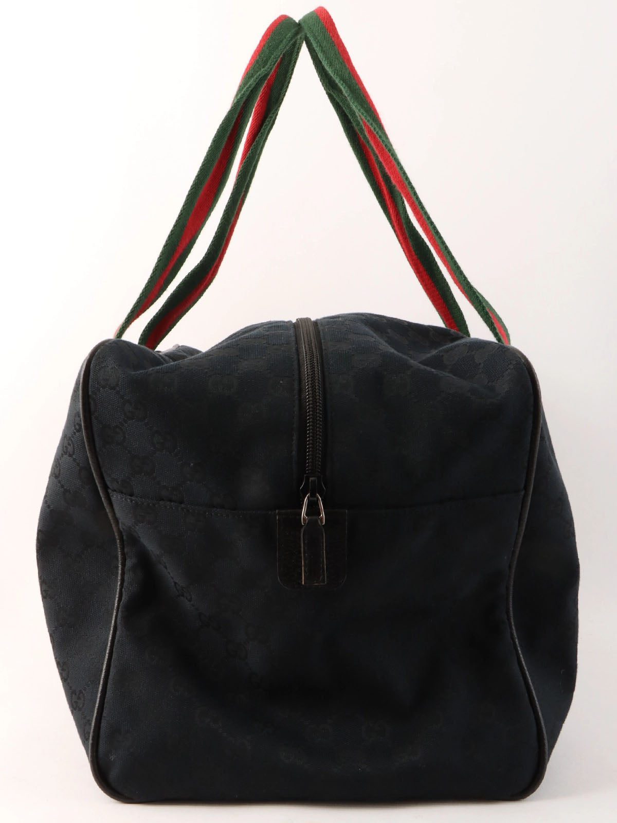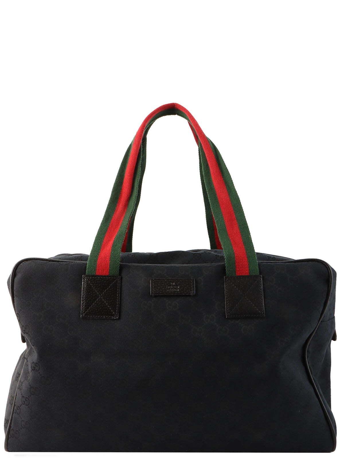 キャンバスGGパターンシェリーラインボストンバッグ ブラック/グリーン/レッド