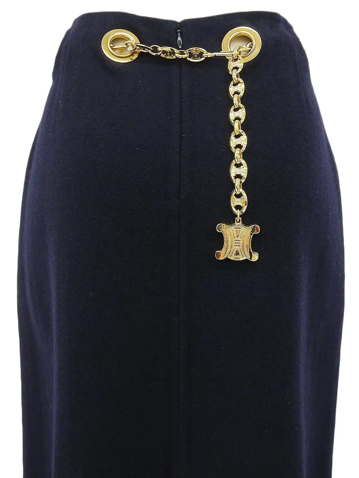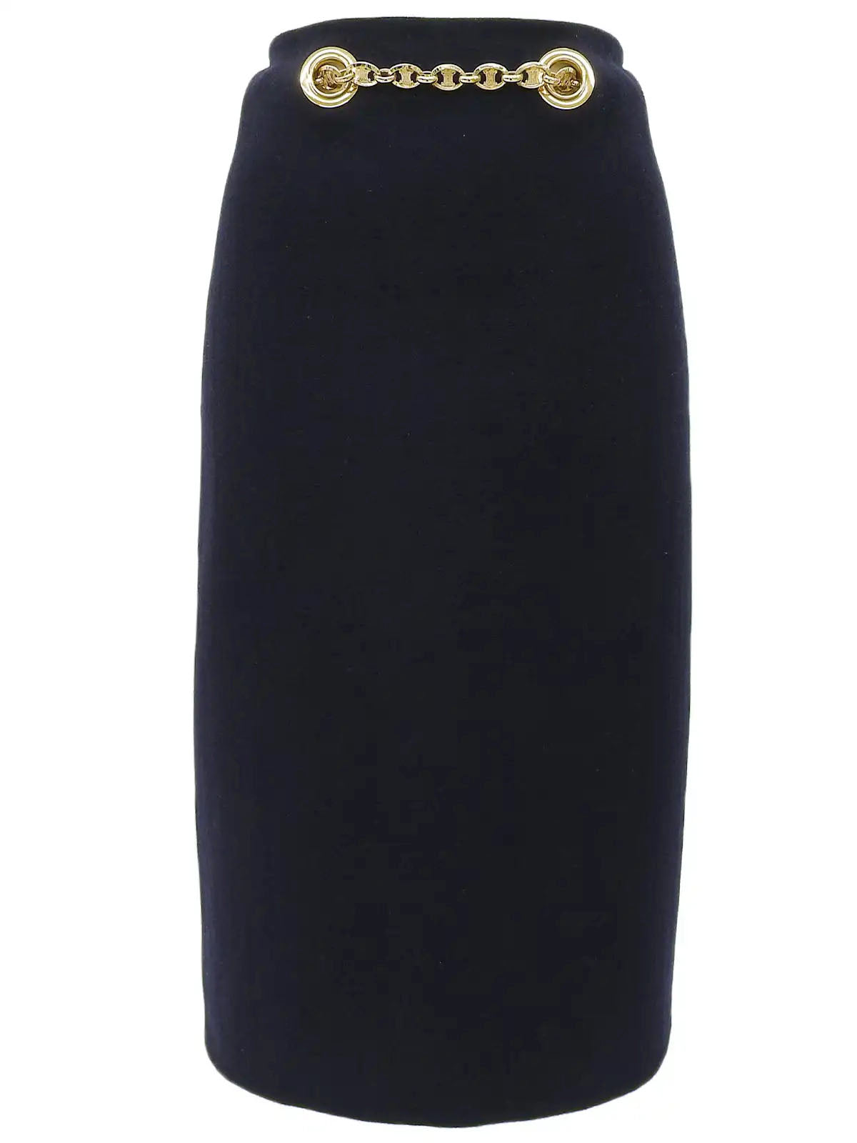 ウールマカダムチェーンベルトタイトスカート ネイビー