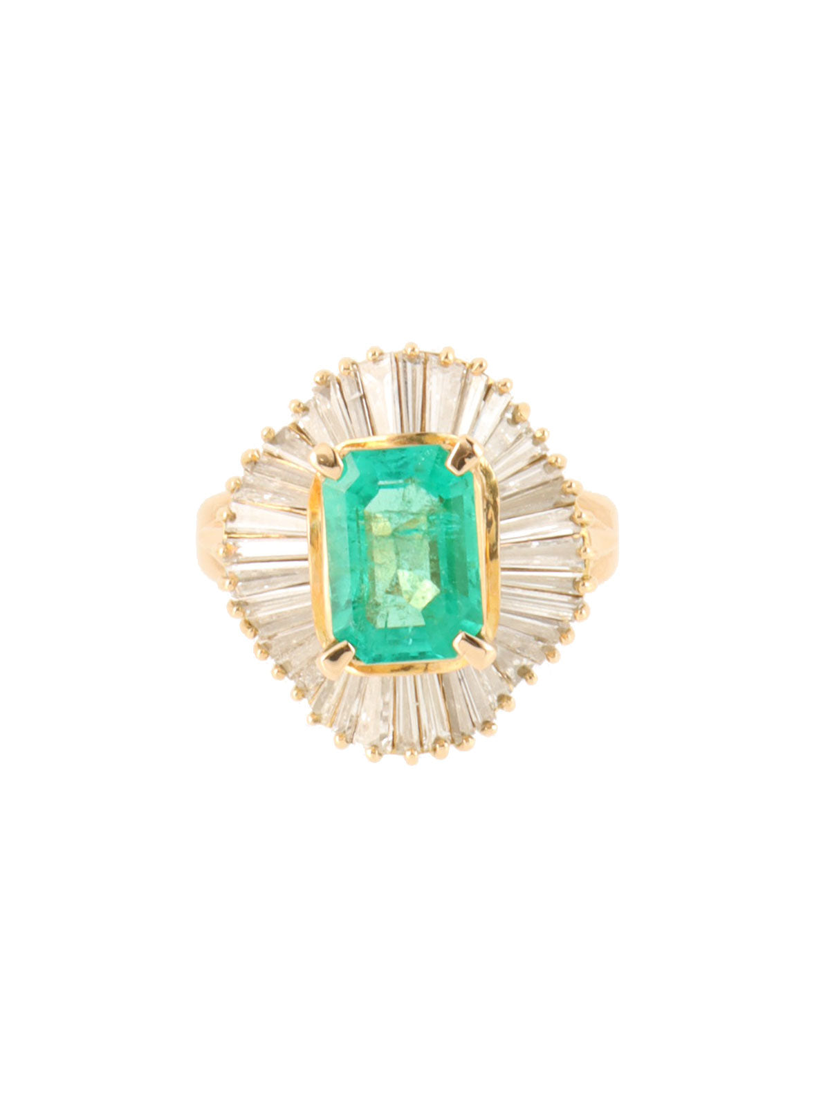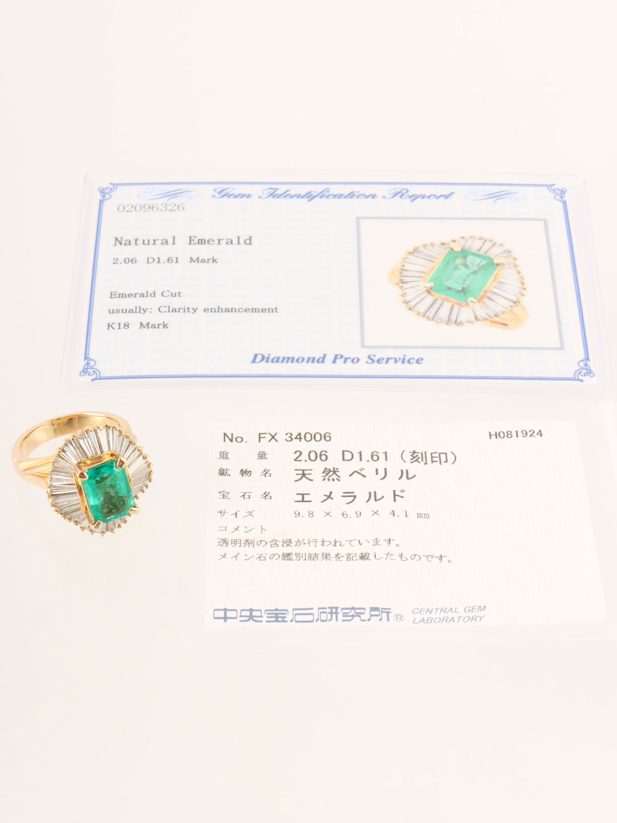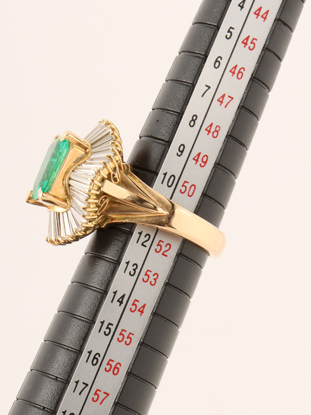 18Kエメラルドダイヤモンドデザインリング ゴールド/グリーン